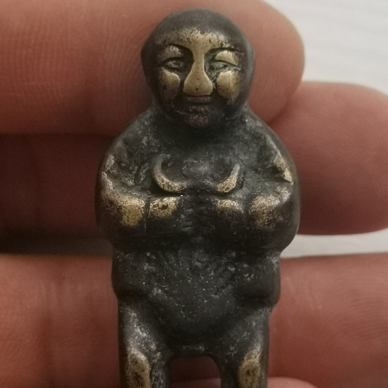 招财童子供养人护身符小童人,高45.5mm,22.8mm,重约50g。黑漆古包浆,精美大气,开脸喜庆清晰。采用百年老铜翻砂铸造而成,具有趋吉避凶、挡煞气,聚财纳福的作用。喜欢的泉友不要错过,图片用手机实物拍摄,由于光线原因颜色可能偏差。