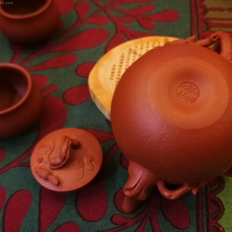 3. 竞拍详细 - 紫砂花器--松鼠葡萄壶全手工10年老朱泥