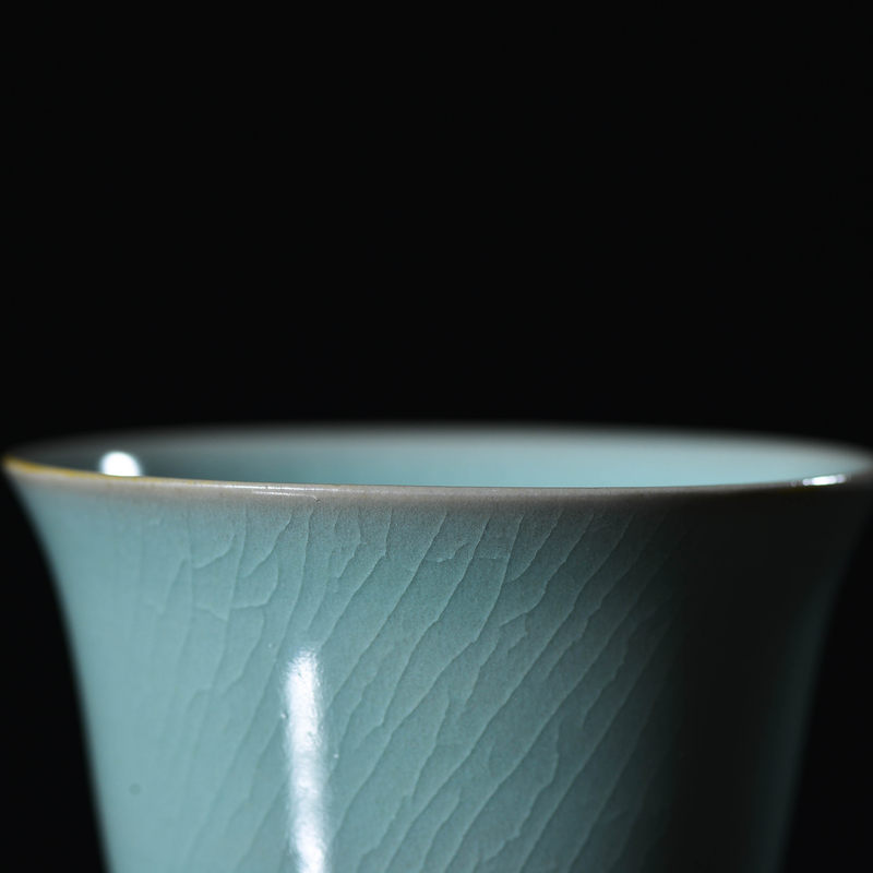 汝瓷 天青釉 手工主人杯 直径8厘米 高6.5厘米 采用汝州本地天然原料,精工制作,釉面温润。神态憨态可掬,器表开片呈蝉翼纹,器型大方,实用收藏盘玩佳品。 汝瓷—中国五大名瓷之一,创烧于北宋晚期,为宫廷御用瓷器。金灭北宋后,汝瓷也随之消亡。其开窑时间前后只有二十年,由于烧造时间短暂,传世亦不多,在南宋时,汝瓷已经非常稀有。现今存世的汝瓷,一般认为有65件,其中台北故宫博物院23件,北京故宫博物院17件,上海博物馆8件,英国戴维基金会7件,其他散藏私人收藏约10件。所以才有“家财万贯,不如汝瓷一片”。一物一图有余矿物质反应的原因,有的汝瓷会产生黑点,针眼等现象。在1200度的高温烧制,加上冷却时高达17%的收缩釉,天然矿物质中的含铁所制,并非瑕疵品。