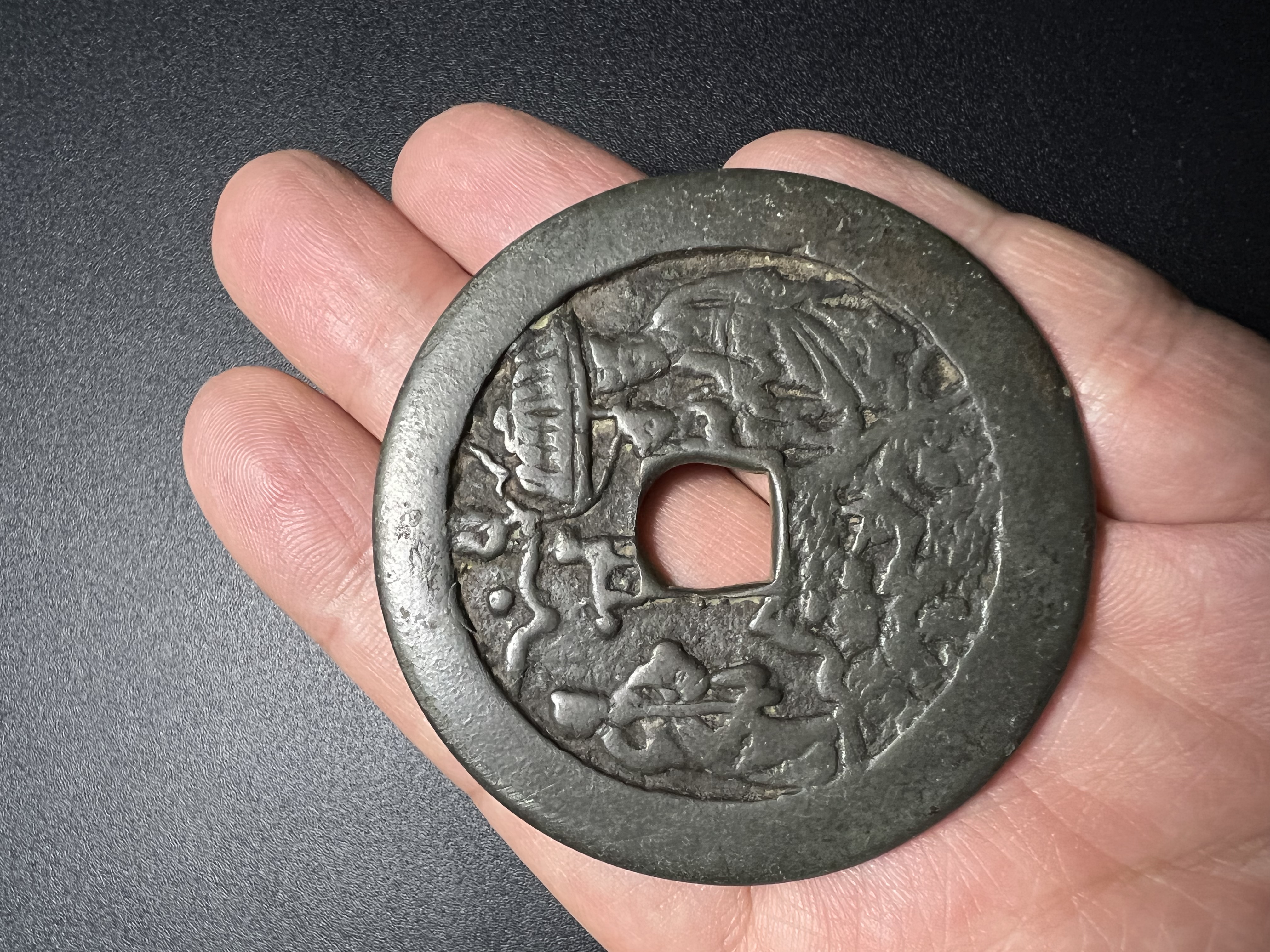 备注:此枚花钱由修养收藏,包浆温润、磨损自然,风格特征明显、承宋之气,品相如图所示,值得收藏;