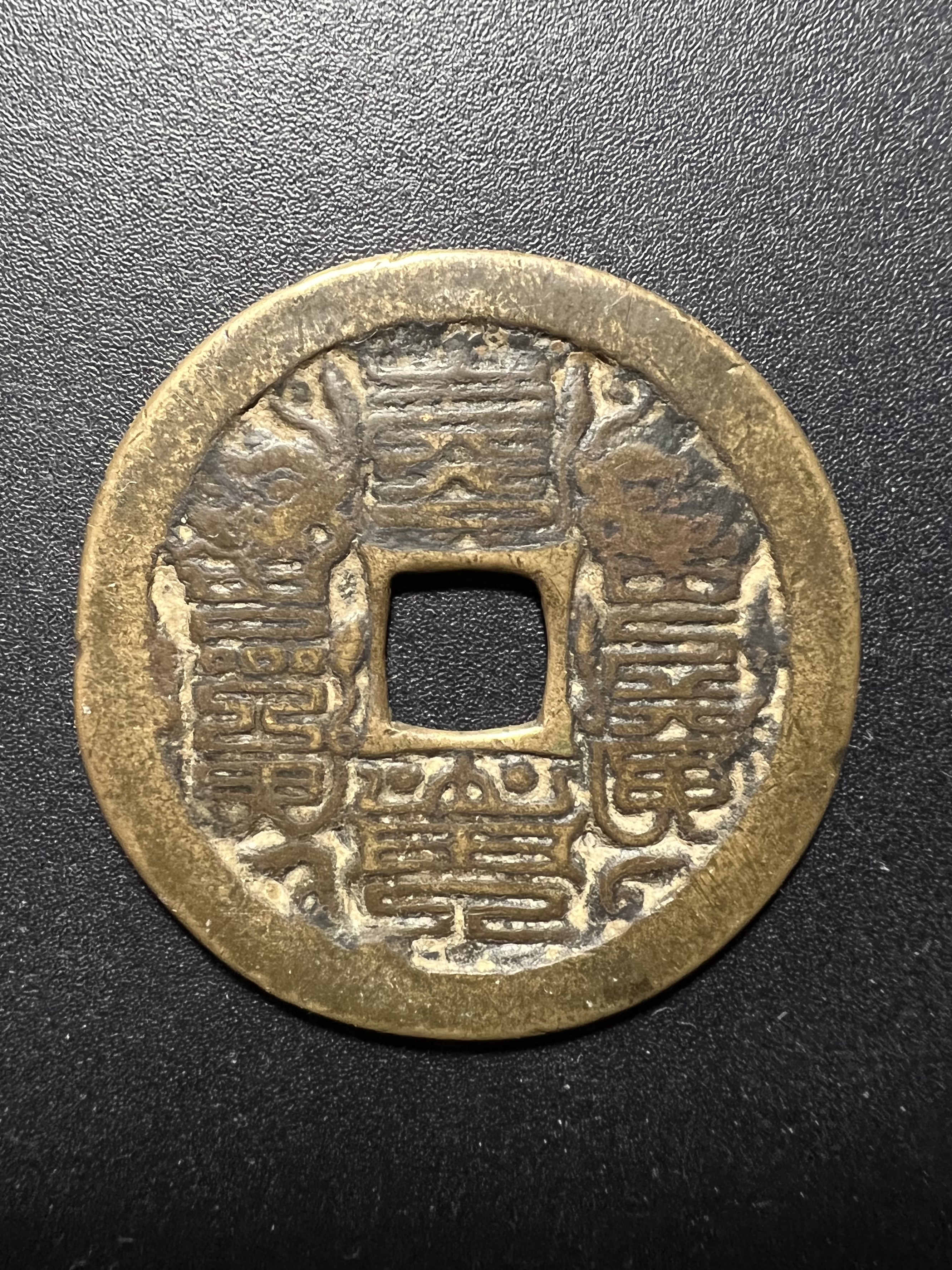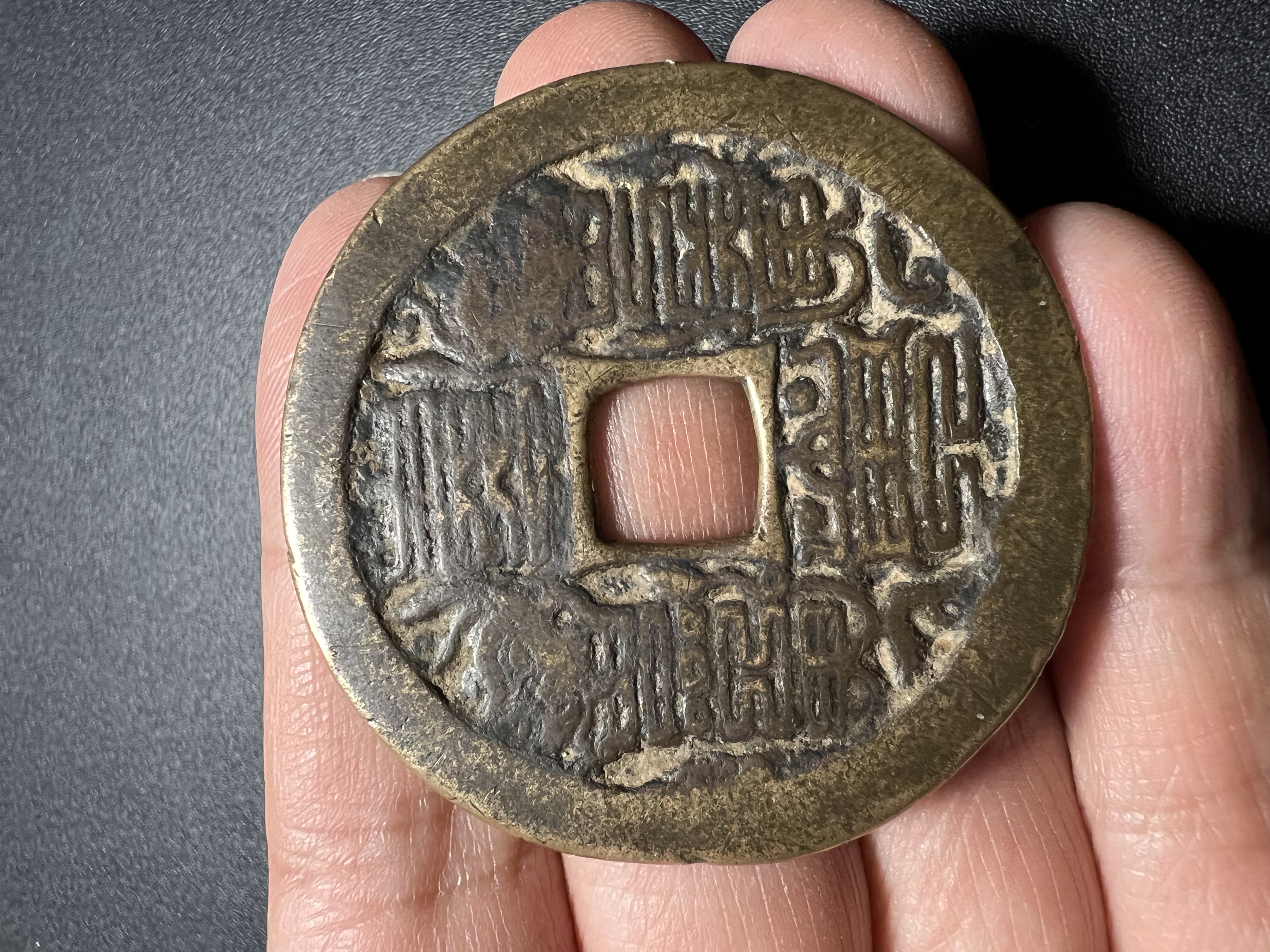 备注:此枚花钱由修养收藏,包浆温润、磨损自然,风格特征明显、承宋之气,品相如图所示,值得收藏;