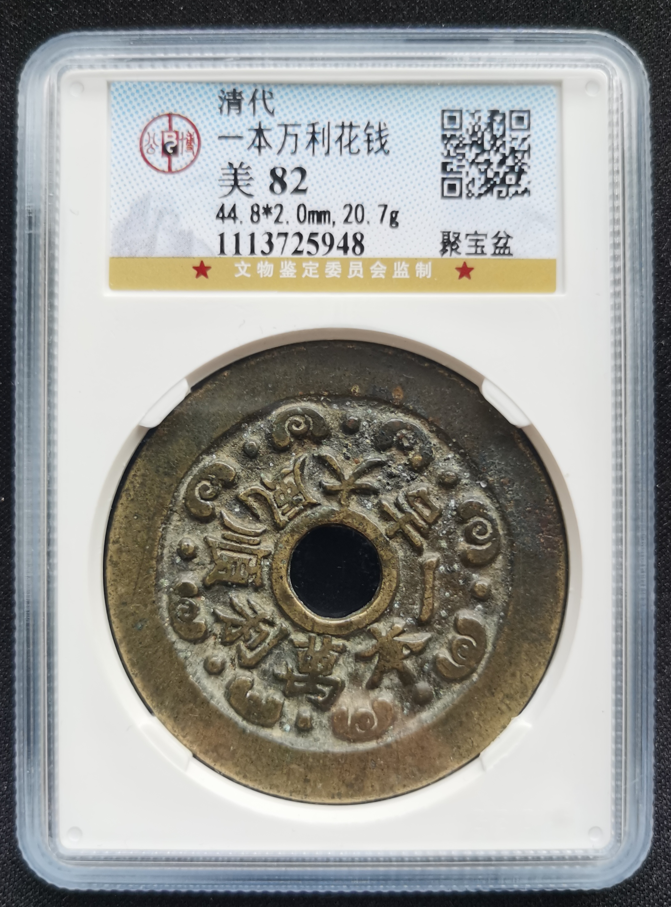此枚钱币已评级入盒,版模品相一流,黑漆古包浆,字口犀利,图案人物清晰完好,是难得的佳品;