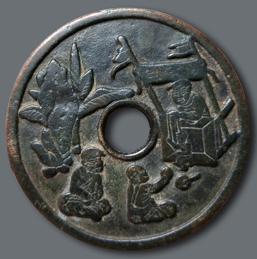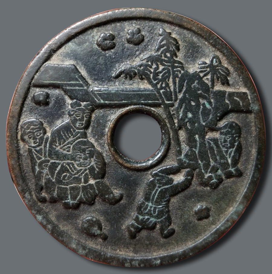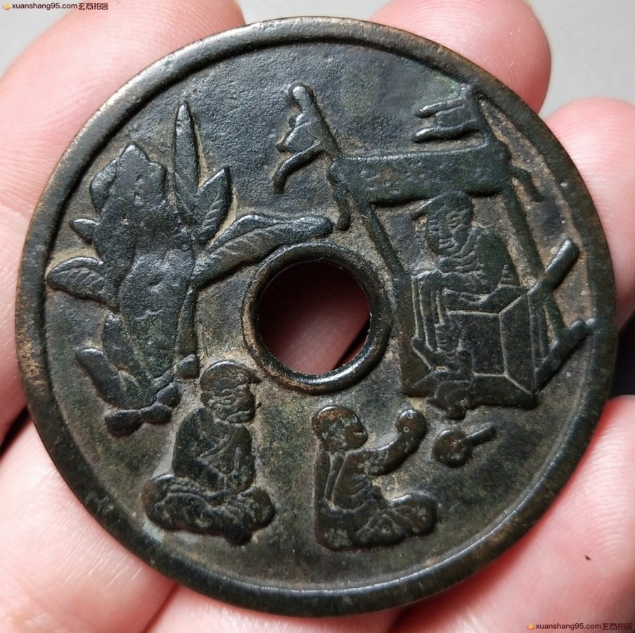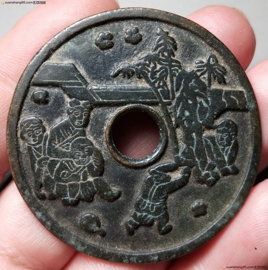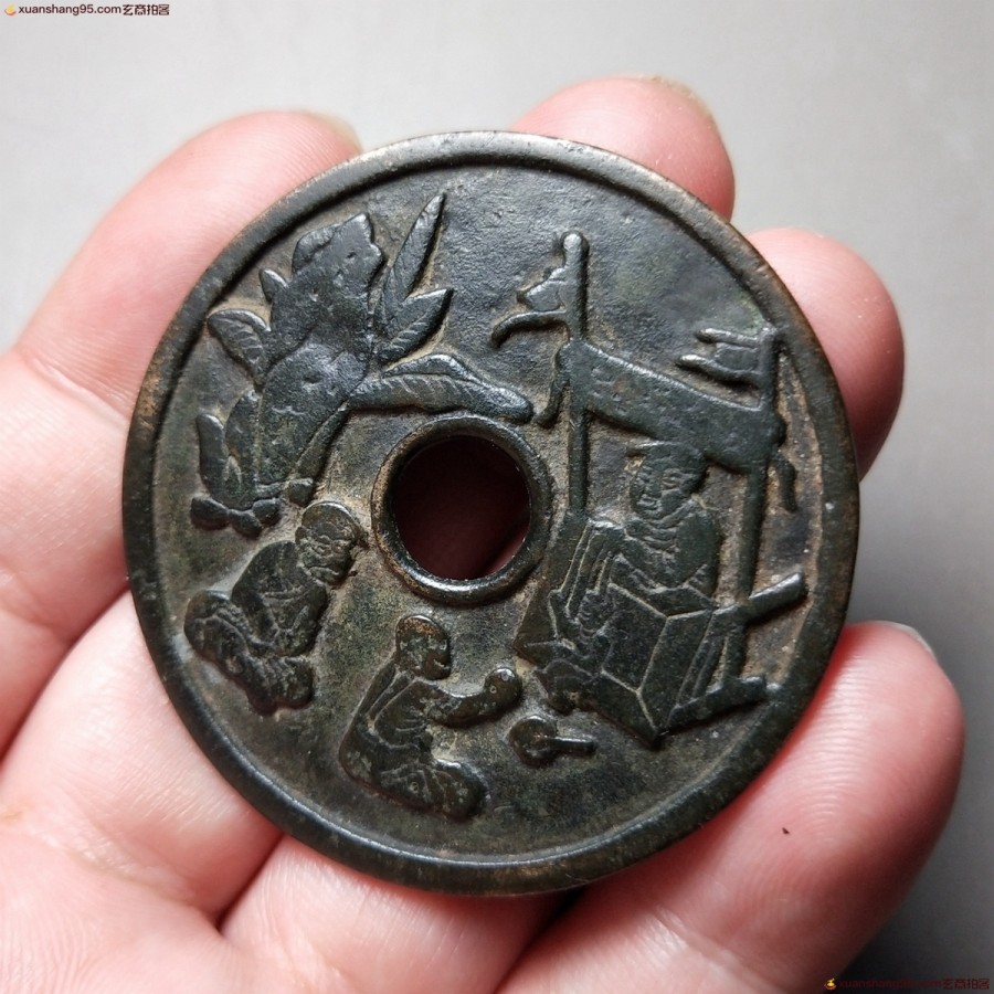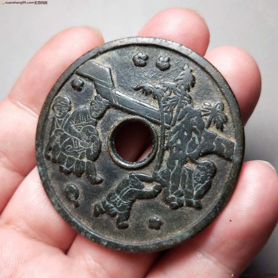 备注:此枚花钱由藏家收藏,包浆自然老辣,风格特征明显、品相如图所示,承宋之气,题材稀缺,值得收藏;