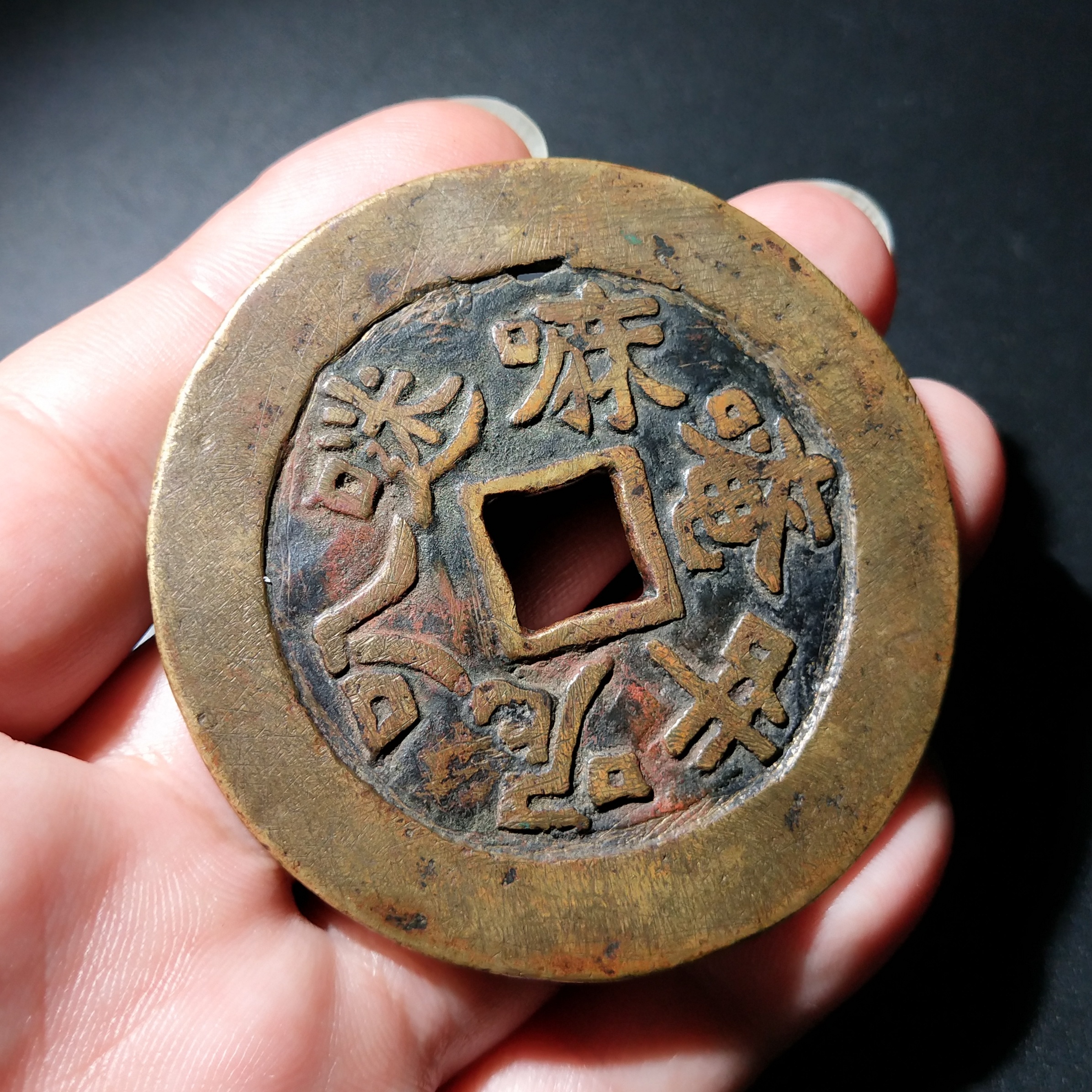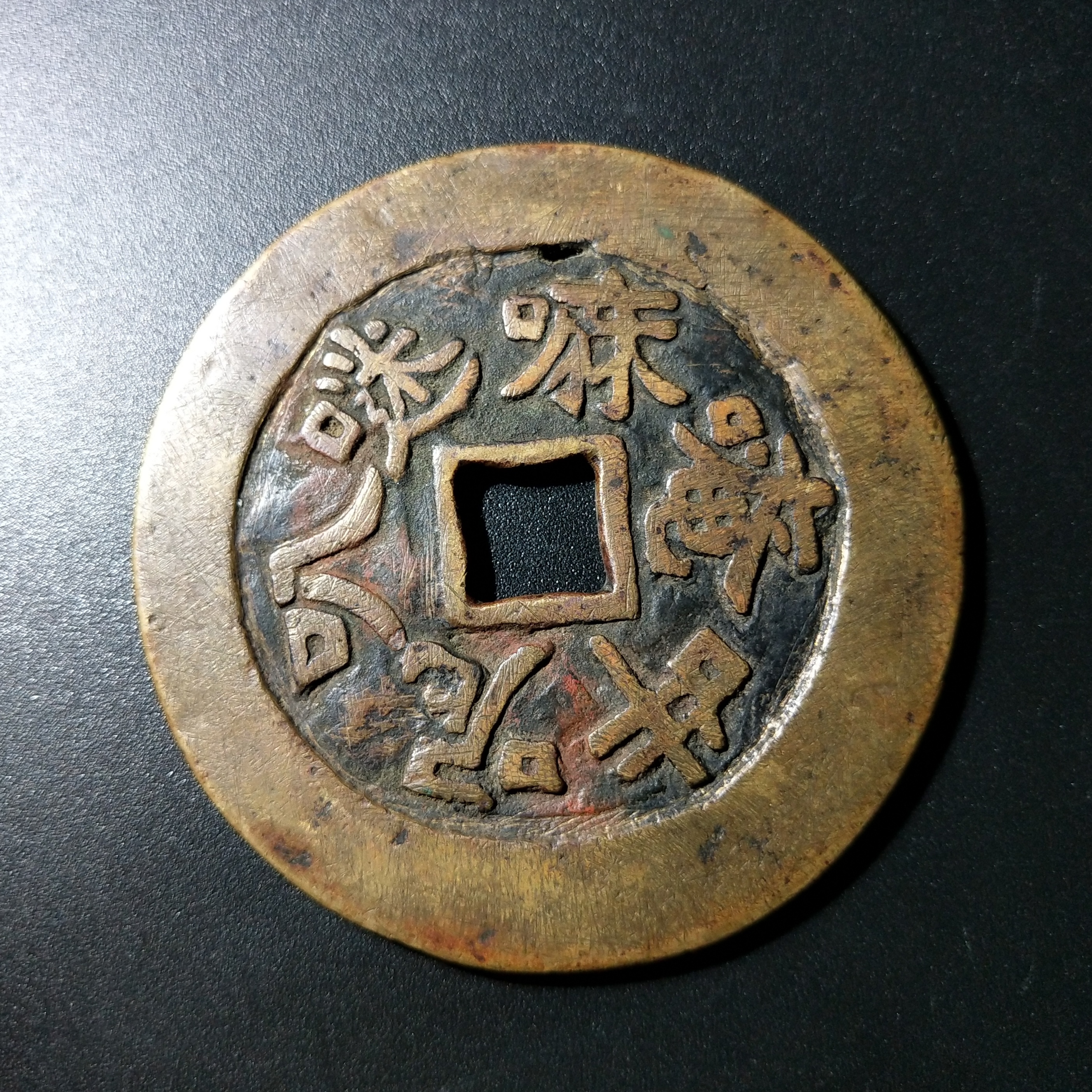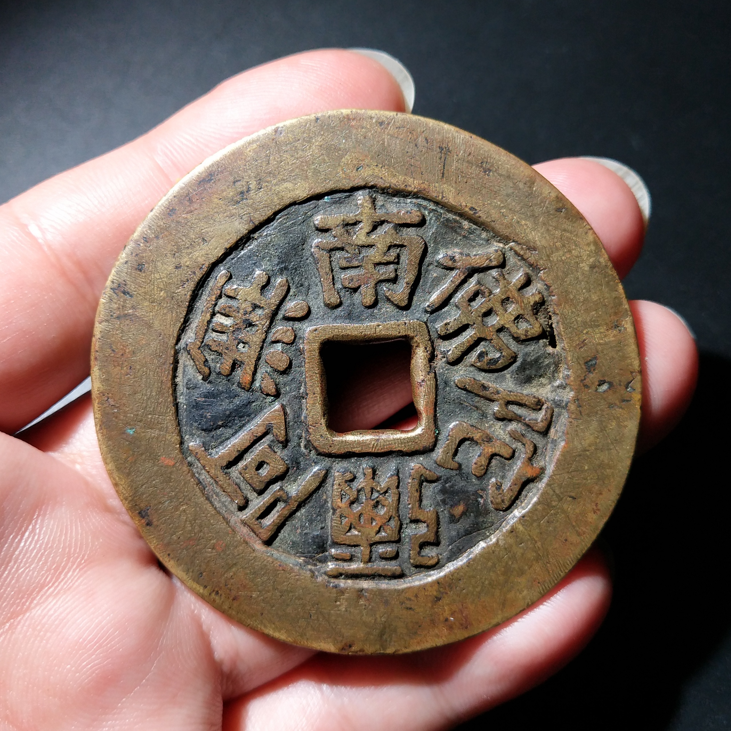 品相说明:如图,钱体佛字旁边因铜水不足有铸造漏洞;