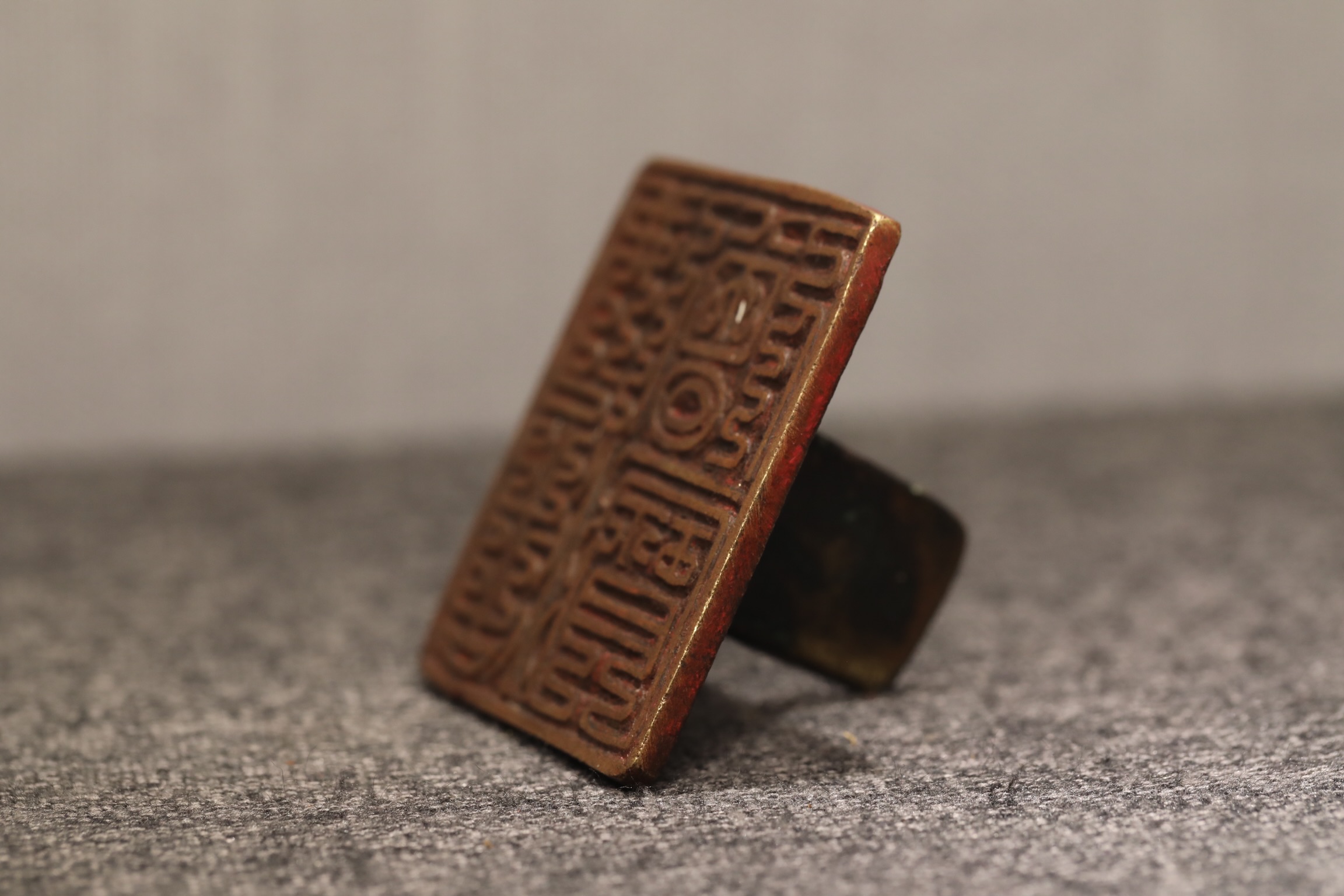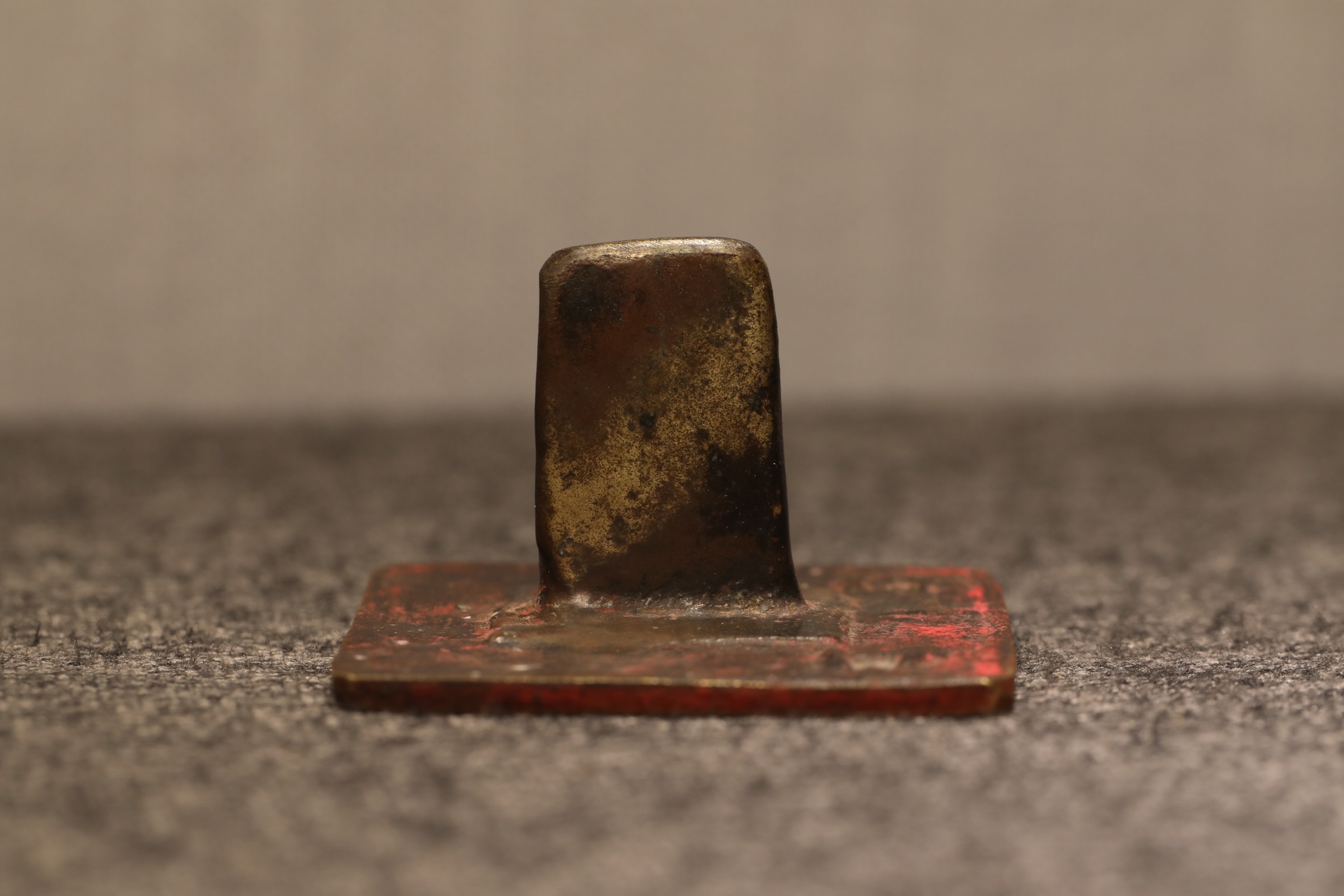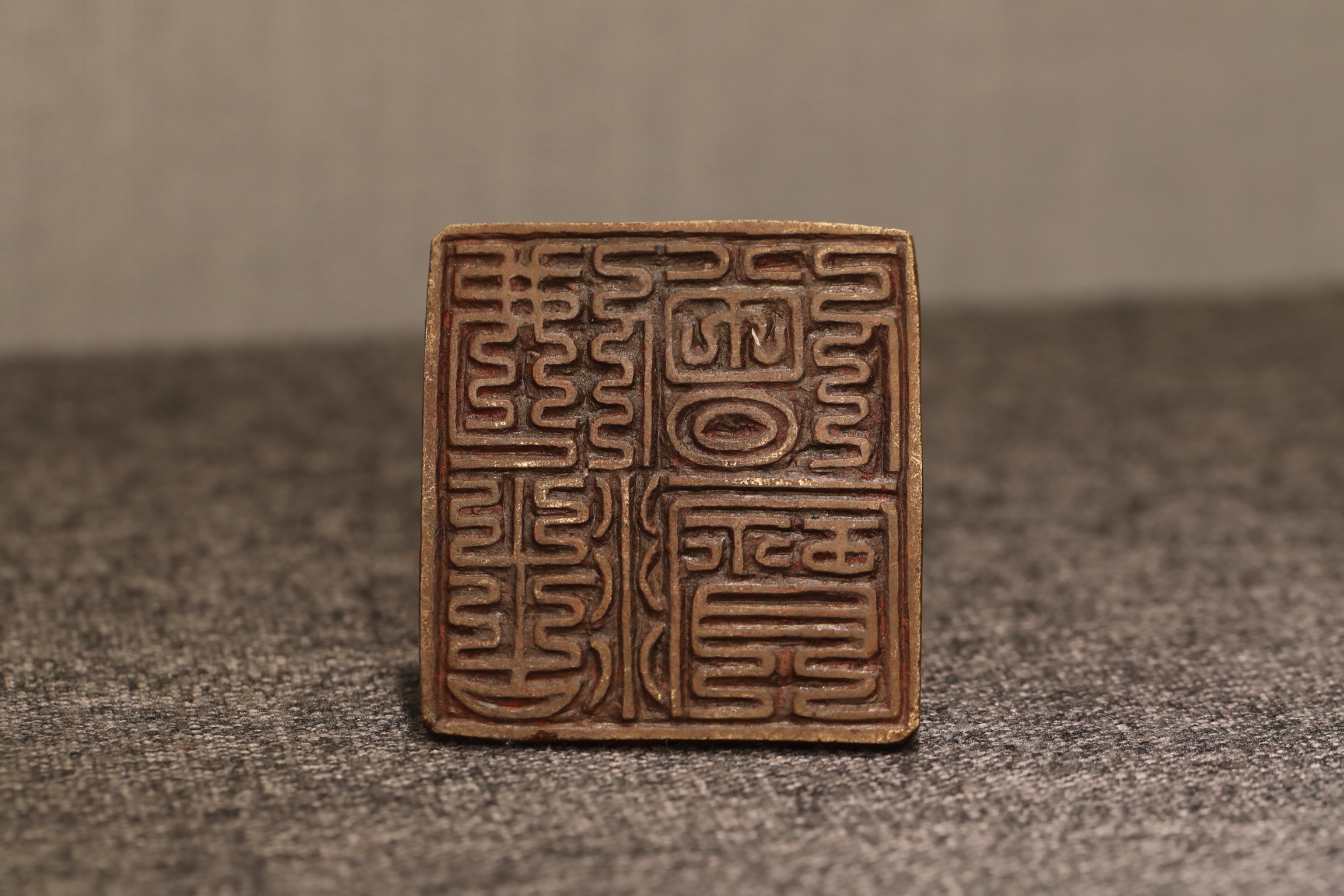 方形,橛钮,印文为“佛法僧宝”,佛教用法印,文字布局匀称,较为少见,精美品。