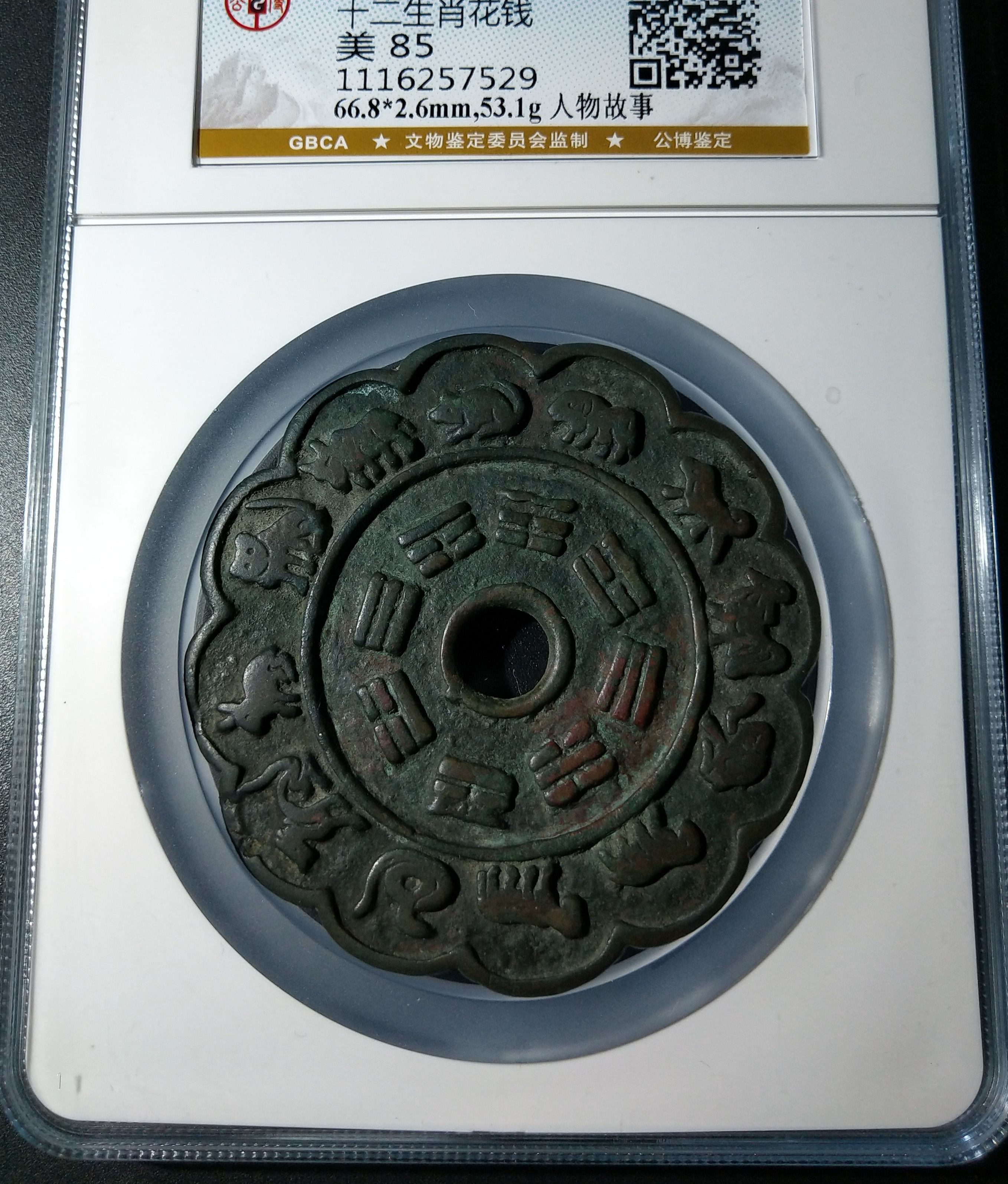备注:此枚花钱由知名大藏家抱一阁收藏,已入盒,包浆自然浑厚,风格特征明显、品相如图所示,承宋之气,推荐收藏;