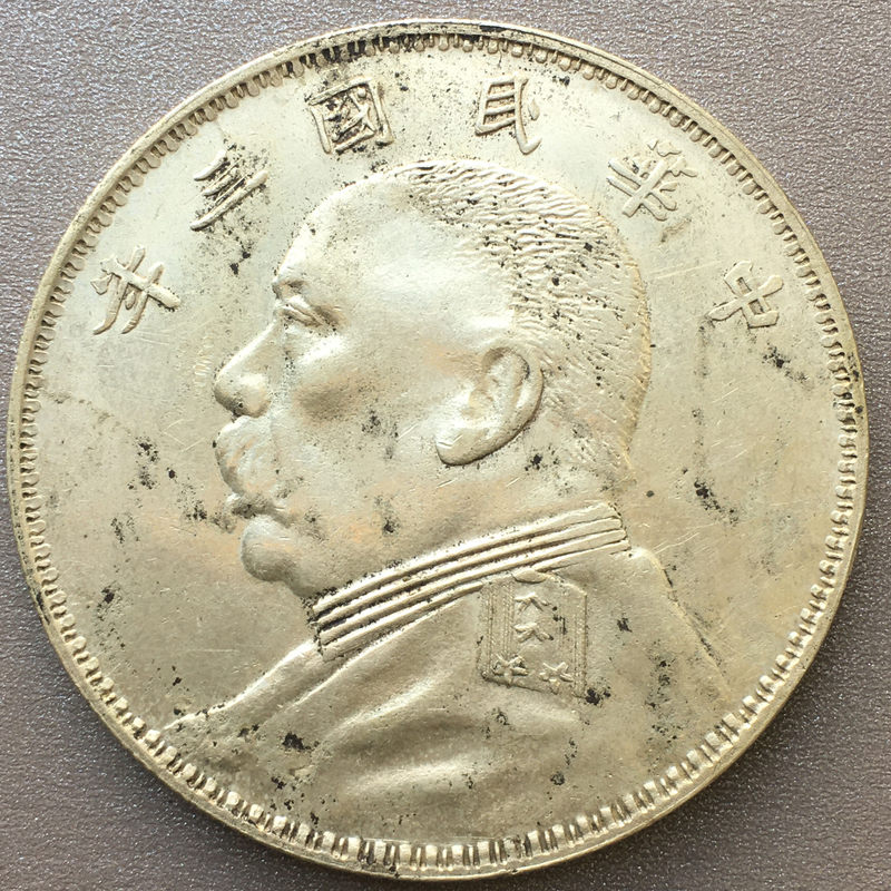 图录号016 民国三年袁世凯O版壹圆银币 质地:银 质量:26.8g 尺寸:39.3x39.3x2.4mm 民国三年袁世凯O版银币,存世数量稀少,是大头银元中的名誉品。此币银色纯正,压力足,细节清晰,传世极美品,值得收藏。