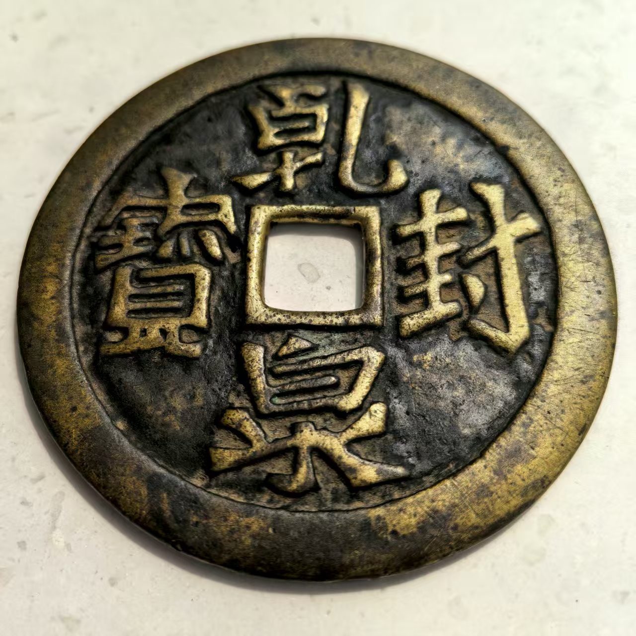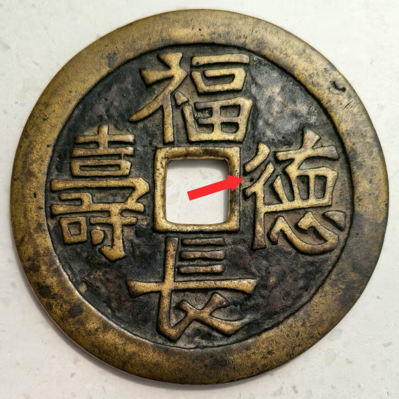 品相说明:德字左上地章有一小砂眼(箭头指处),铜性好,声音好。