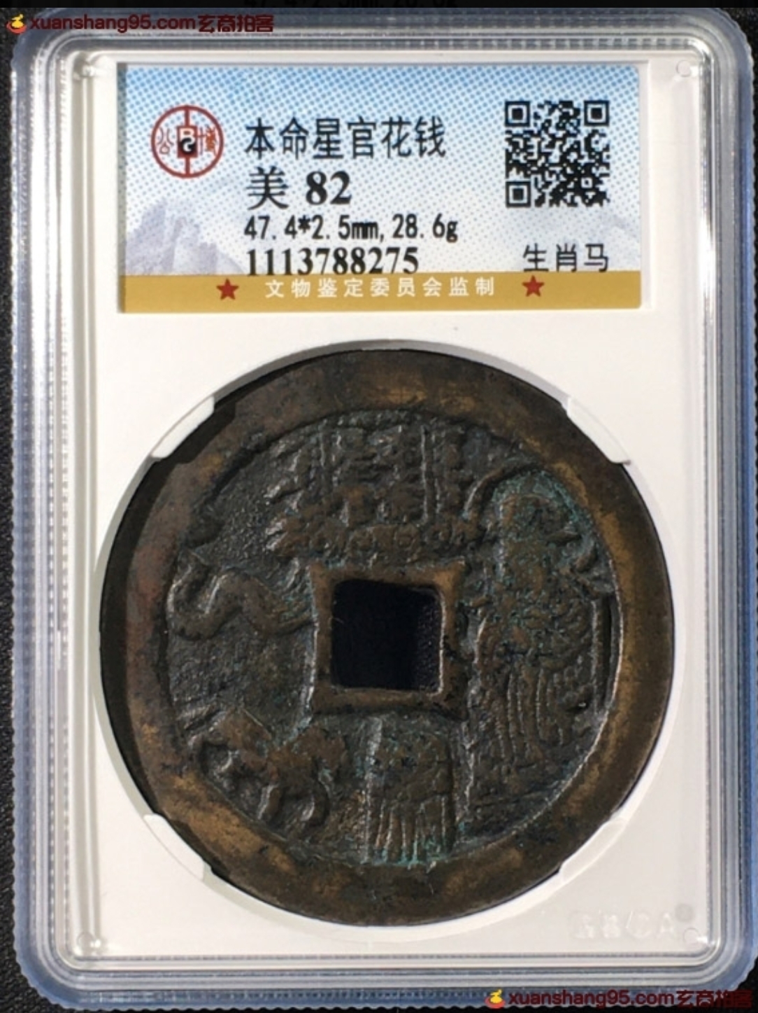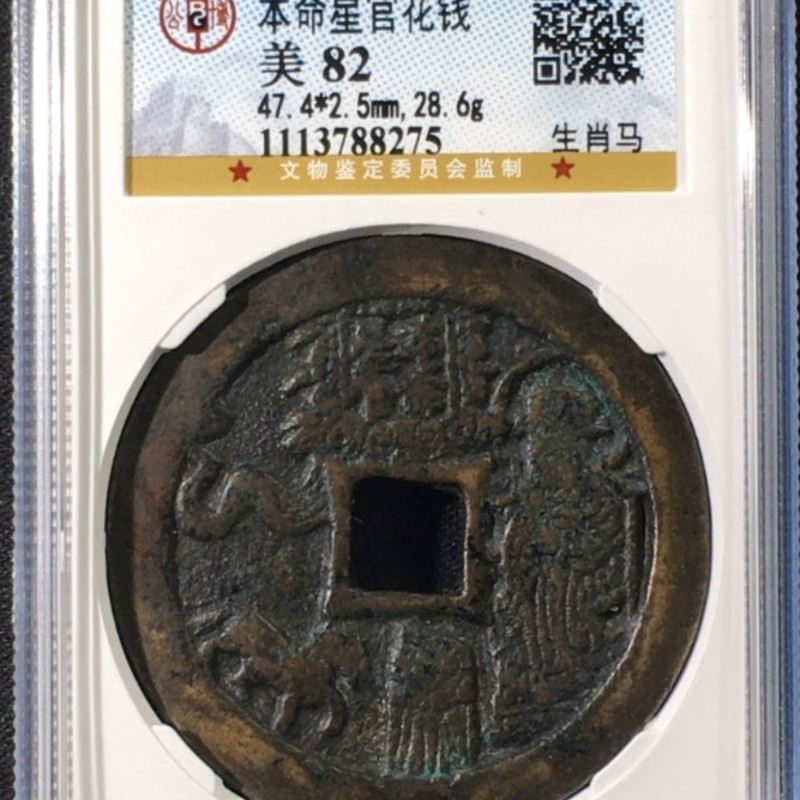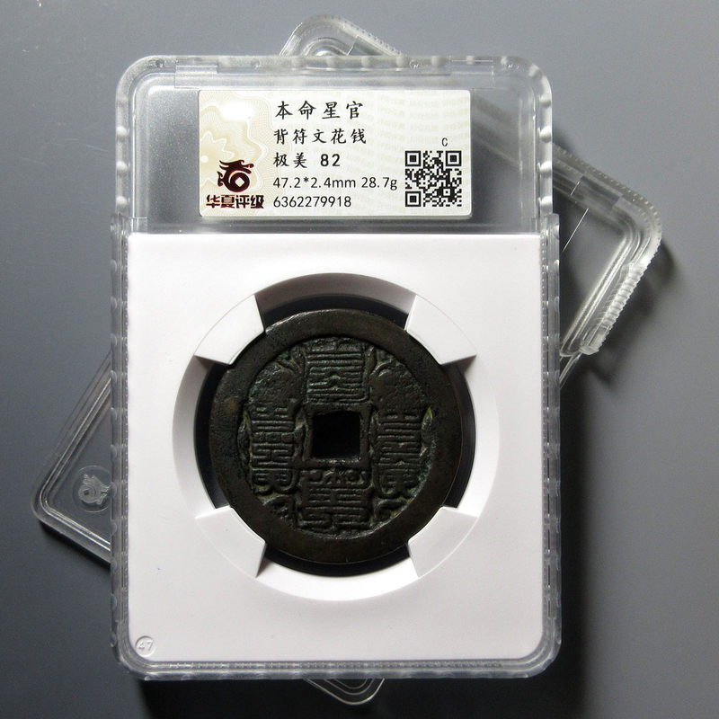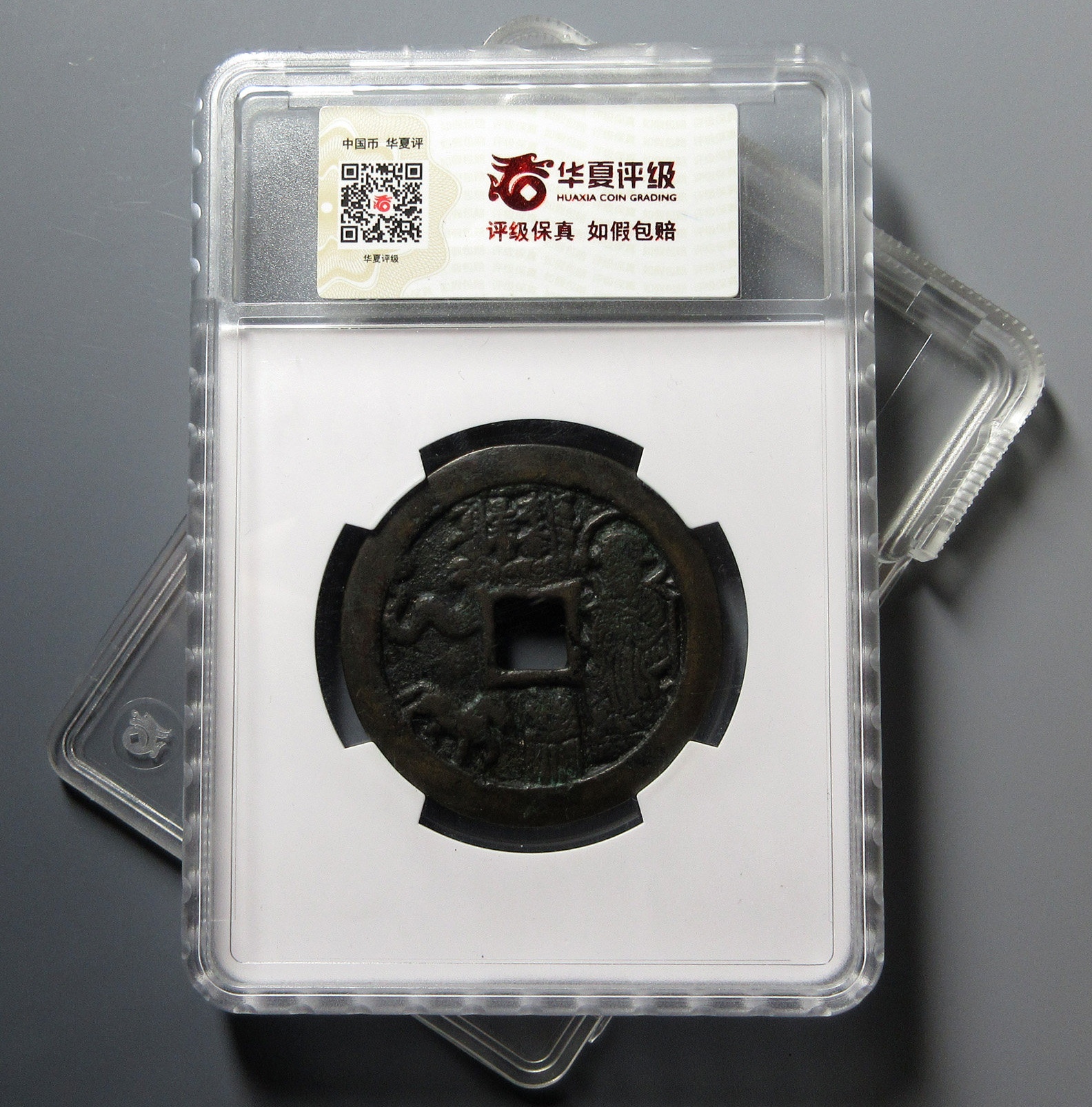 品相说明:钱体清理; 备注:此枚花钱由藏家收藏,华夏、公博双评级入盒(原公博盒已开),包浆自然老辣,风格特征明显、品相如图所示,承宋之气,值得收藏;