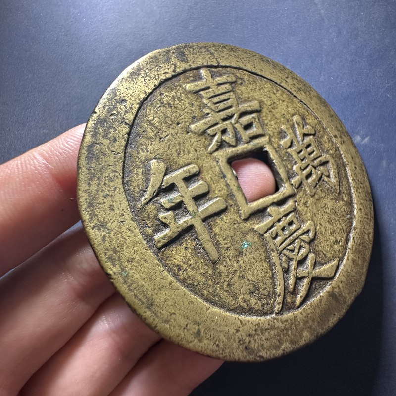 品相说明:嘉字旁有一细小铸纹(不是裂),云炉常见现象;