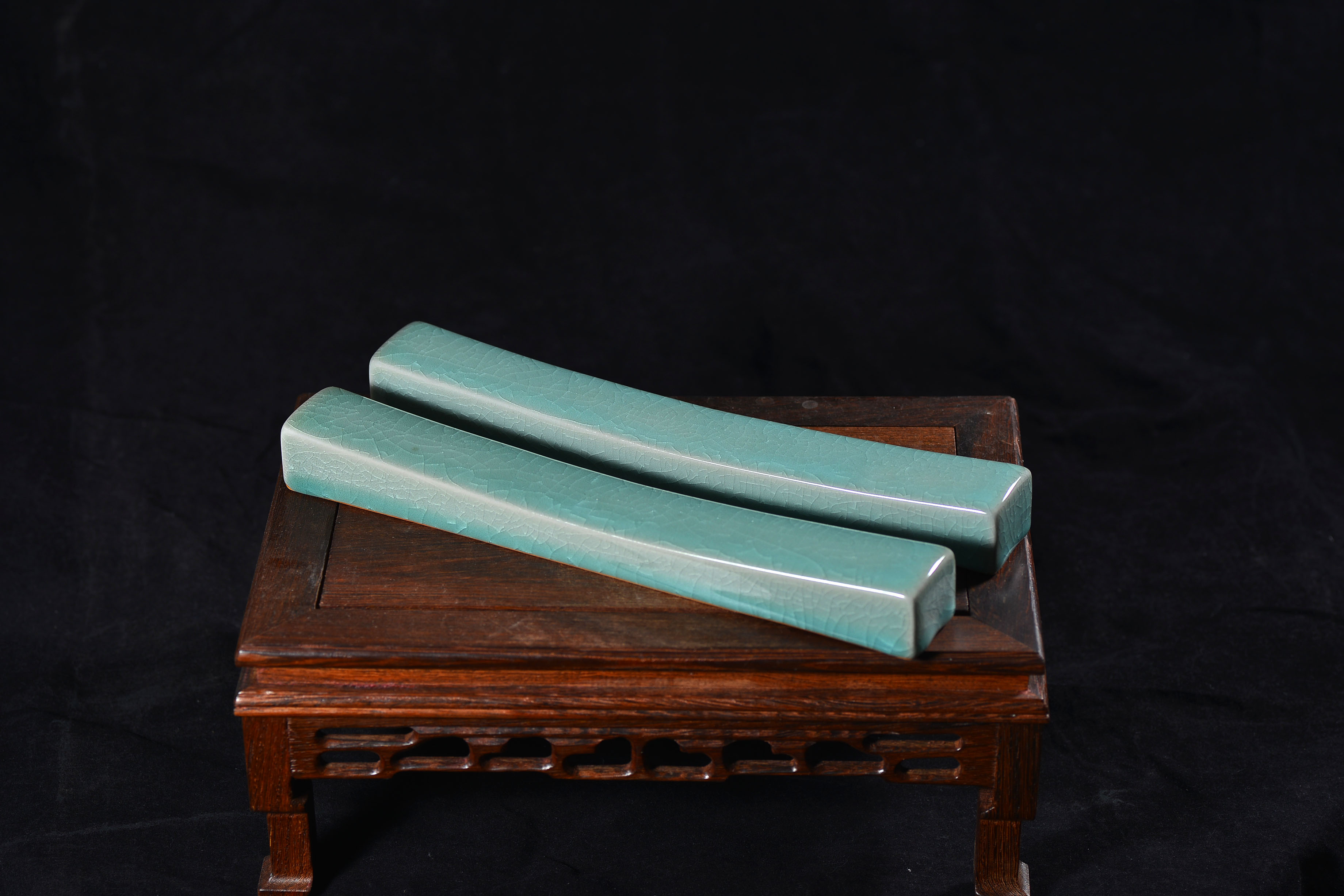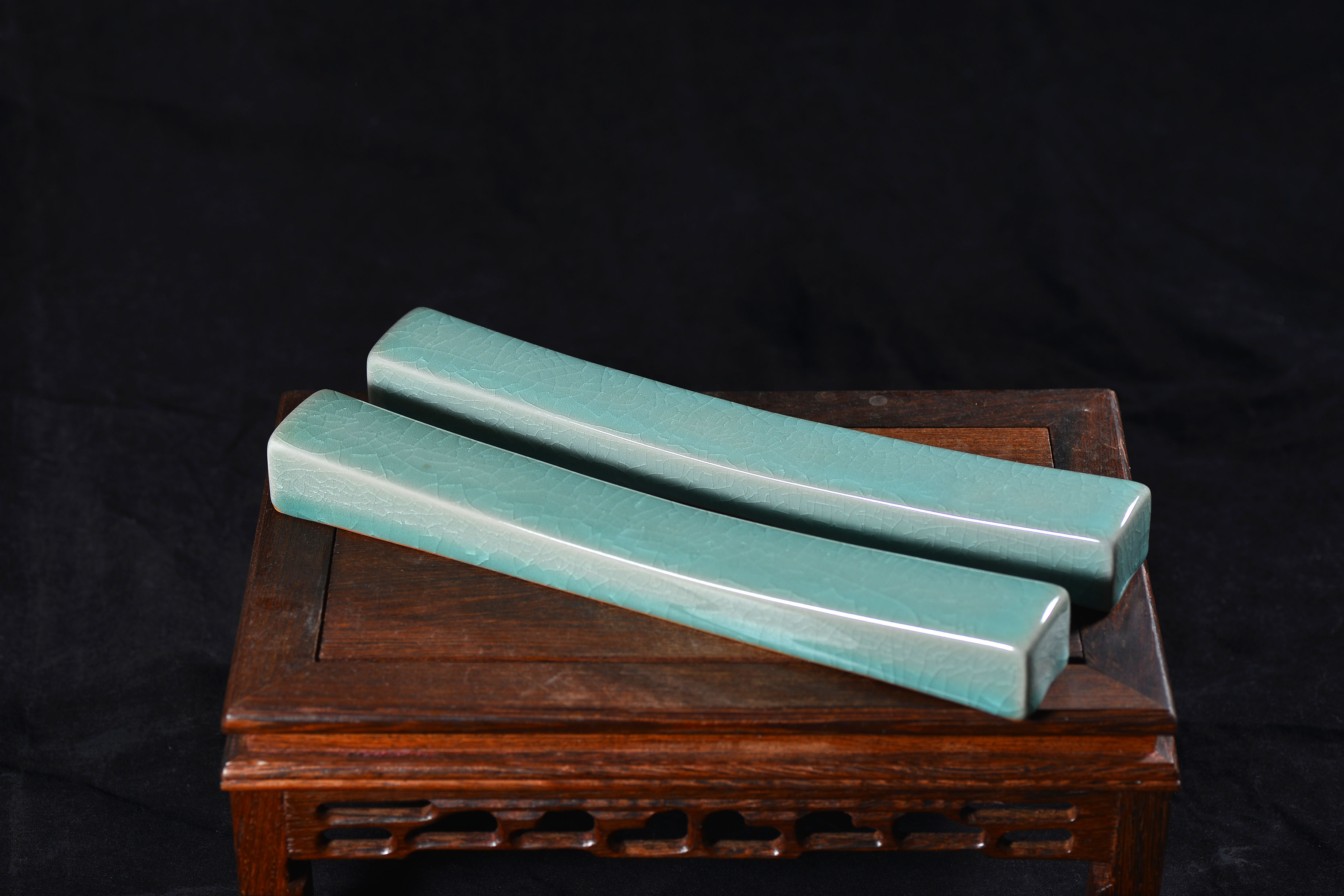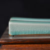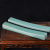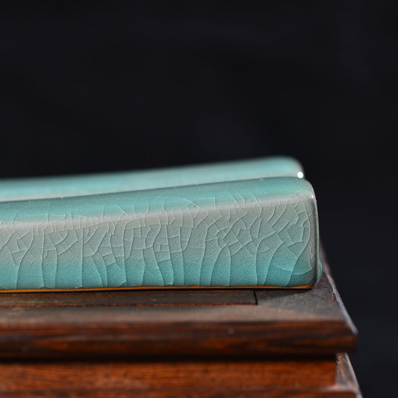 清凉寺仿古釉天青色 镇尺一对 长25.5里面 宽3.5厘米 高3厘米。全品无瑕疵 收藏使用佳品。 收藏使用佳品。清凉寺汝瓷是中国北宋时期的主要代表瓷之一,属于五大名窑之一。清凉寺汝瓷的历史可以追溯到北宋时期,当时的宋王朝为了满足宫廷的特殊需要,设立了汝官窑。这个窑场生产的汝瓷以其独特的美学风格和高*的制作工艺而闻名,被视为青瓷之典范。清凉寺汝官窑遗址是在上世纪被发现的,这一发现揭开了汝官窑消失的千古之谜。自1987年以来,河南省文物考古研究所对清凉寺汝窑遗址进行了多次发掘,发现了大量重要的烧造设施和汝窑瓷器标本。清凉寺汝瓷的艺术特色体现在其独特的制作工艺和美学风格上。它以其工艺精湛、造型秀美、釉面蕴润、高雅素净的丰韵而独具风采。汝瓷的制作工艺包括使用名贵玛瑙为釉,釉色独特,随光变幻,呈现出“雨过天晴云破处”“千峰碧波翠色来”的美妙效果。此外,汝瓷的胎体厚重,釉厚而声如磬。汝瓷的形状古朴大方,器表呈蝉翼纹细小开片,具有“梨皮、蟹爪、芝麻花”的特点。这些装饰手法使得汝瓷不仅美观而且富有变化,被世人称为“似玉、非玉、而胜玉”。