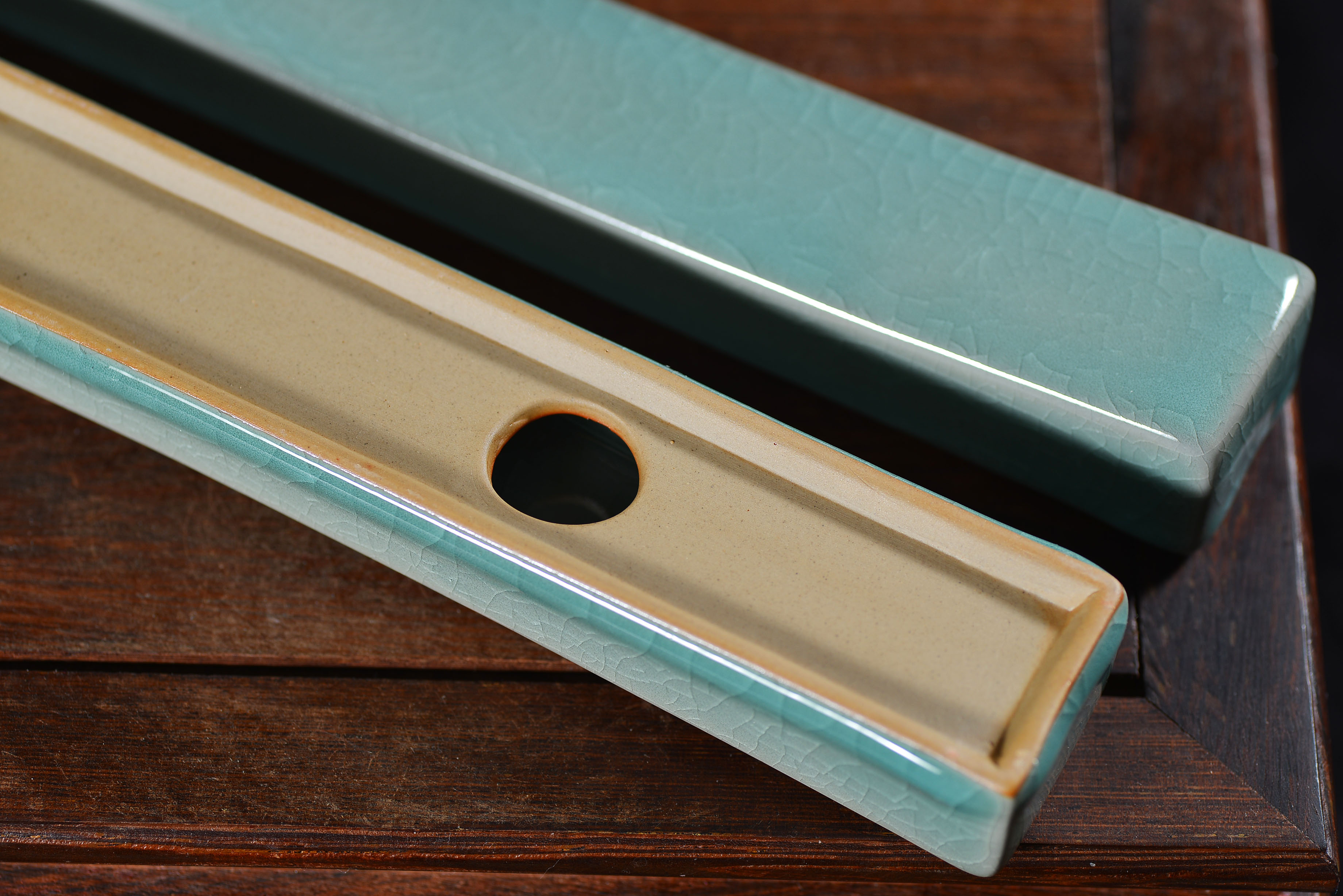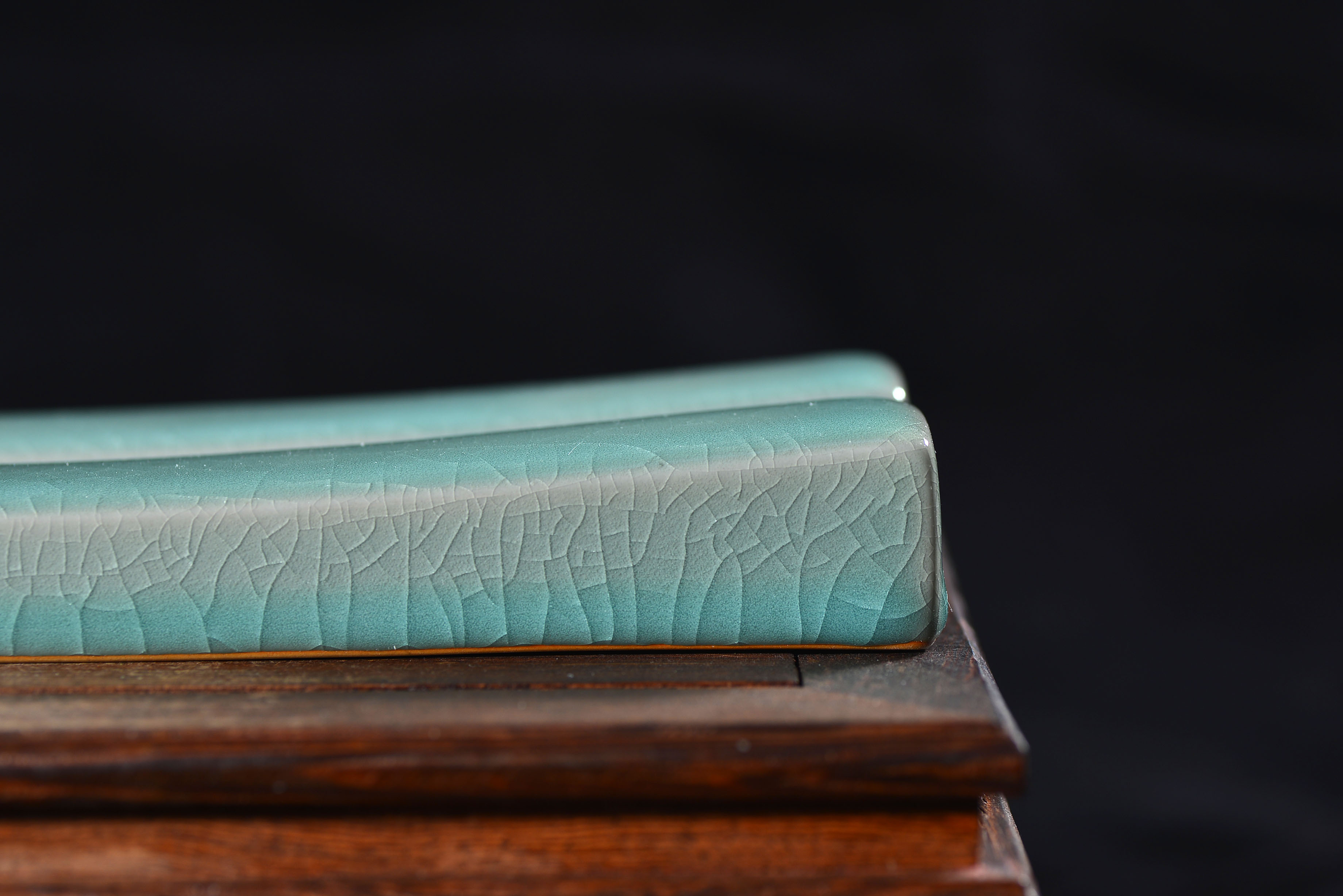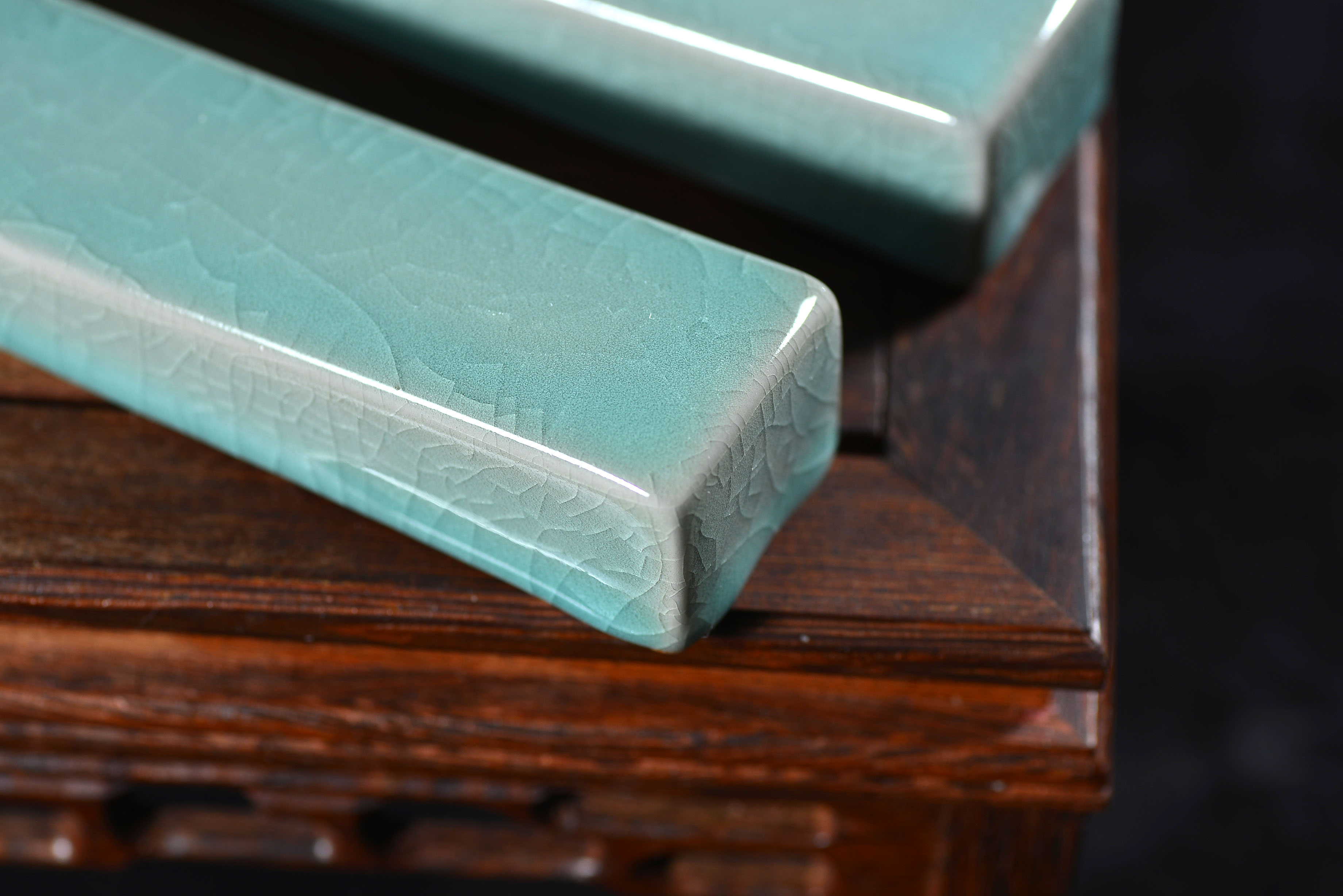 清凉寺仿古釉天青色 镇尺一对 长25.5里面 宽3.5厘米 高3厘米。全品无瑕疵 收藏使用佳品。 收藏使用佳品。清凉寺汝瓷是中国北宋时期的主要代表瓷之一,属于五大名窑之一。清凉寺汝瓷的历史可以追溯到北宋时期,当时的宋王朝为了满足宫廷的特殊需要,设立了汝官窑。这个窑场生产的汝瓷以其独特的美学风格和高*的制作工艺而闻名,被视为青瓷之典范。清凉寺汝官窑遗址是在上世纪被发现的,这一发现揭开了汝官窑消失的千古之谜。自1987年以来,河南省文物考古研究所对清凉寺汝窑遗址进行了多次发掘,发现了大量重要的烧造设施和汝窑瓷器标本。清凉寺汝瓷的艺术特色体现在其独特的制作工艺和美学风格上。它以其工艺精湛、造型秀美、釉面蕴润、高雅素净的丰韵而独具风采。汝瓷的制作工艺包括使用名贵玛瑙为釉,釉色独特,随光变幻,呈现出“雨过天晴云破处”“千峰碧波翠色来”的美妙效果。此外,汝瓷的胎体厚重,釉厚而声如磬。汝瓷的形状古朴大方,器表呈蝉翼纹细小开片,具有“梨皮、蟹爪、芝麻花”的特点。这些装饰手法使得汝瓷不仅美观而且富有变化,被世人称为“似玉、非玉、而胜玉”。