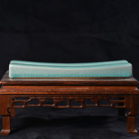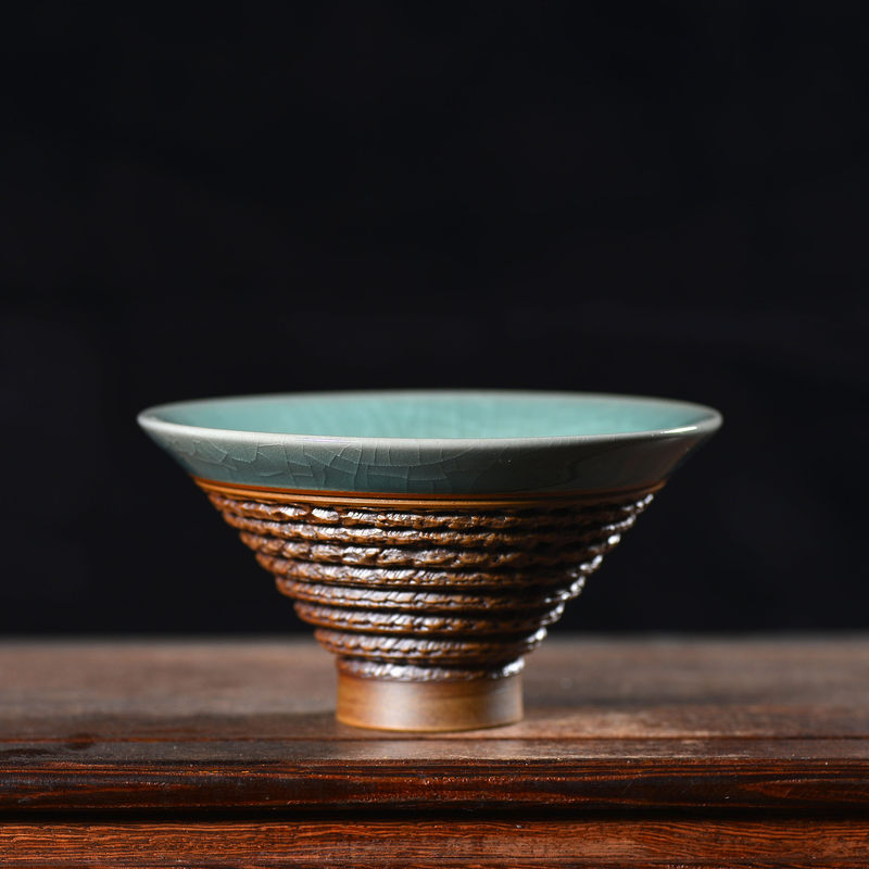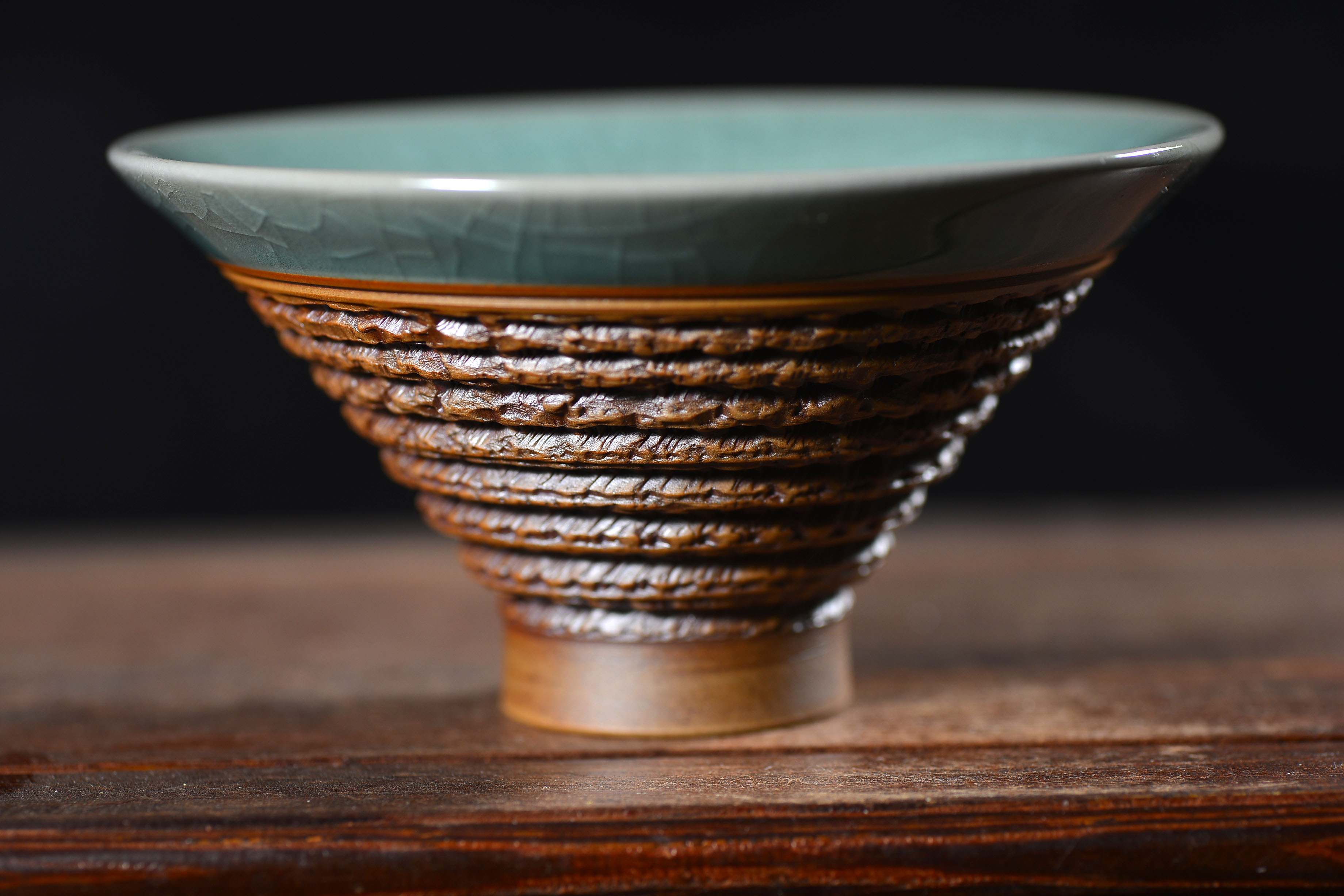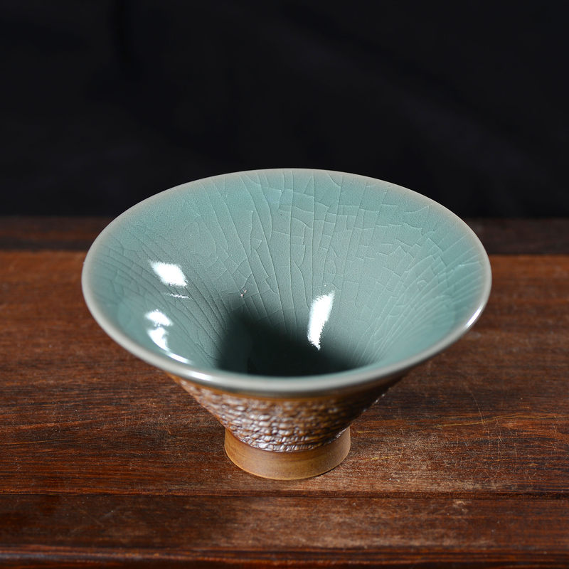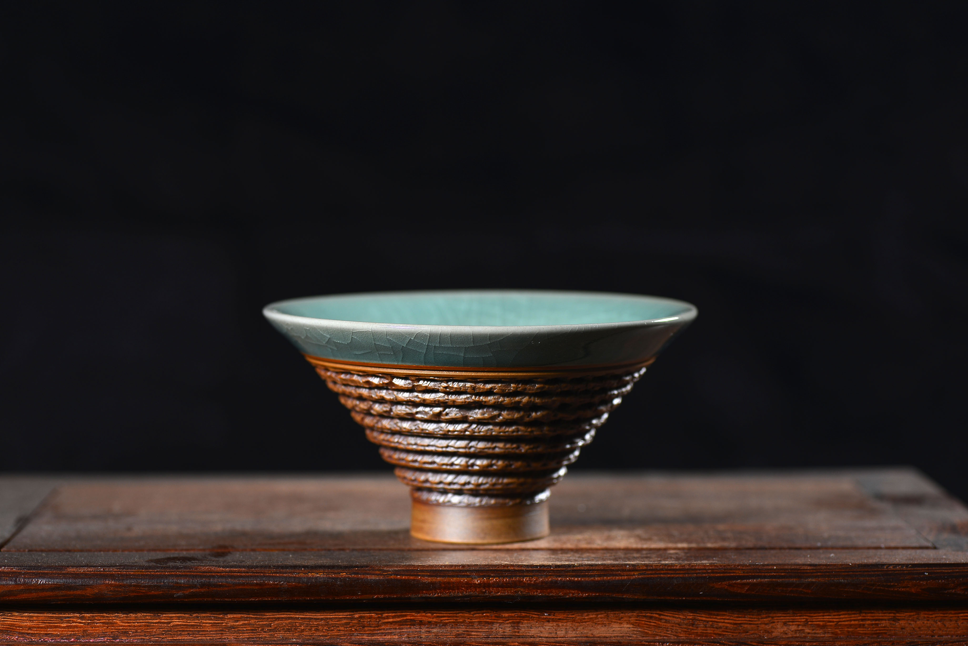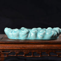 清凉寺仿古釉天青色 手工跳刀斗笠杯 直径10厘米 高5.5厘米 容量130毫升。全品无瑕疵 收藏使用佳品。 收藏使用佳品。清凉寺汝瓷是中国北宋时期的主要代表瓷之一,属于五大名窑之一。清凉寺汝瓷的历史可以追溯到北宋时期,当时的宋王朝为了满足宫廷的特殊需要,设立了汝官窑。这个窑场生产的汝瓷以其独特的美学风格和高*的制作工艺而闻名,被视为青瓷之典范。清凉寺汝官窑遗址是在上世纪被发现的,这一发现揭开了汝官窑消失的千古之谜。自1987年以来,河南省文物考古研究所对清凉寺汝窑遗址进行了多次发掘,发现了大量重要的烧造设施和汝窑瓷器标本。清凉寺汝瓷的艺术特色体现在其独特的制作工艺和美学风格上。它以其工艺精湛、造型秀美、釉面蕴润、高雅素净的丰韵而独具风采。汝瓷的制作工艺包括使用名贵玛瑙为釉,釉色独特,随光变幻,呈现出“雨过天晴云破处”“千峰碧波翠色来”的美妙效果。此外,汝瓷的胎体厚重,釉厚而声如磬。汝瓷的形状古朴大方,器表呈蝉翼纹细小开片,具有“梨皮、蟹爪、芝麻花”的特点。这些装饰手法使得汝瓷不仅美观而且富有变化,被世人称为“似玉、非玉、而胜玉”。