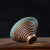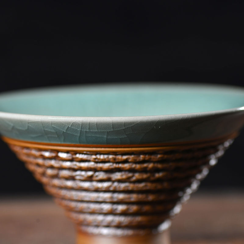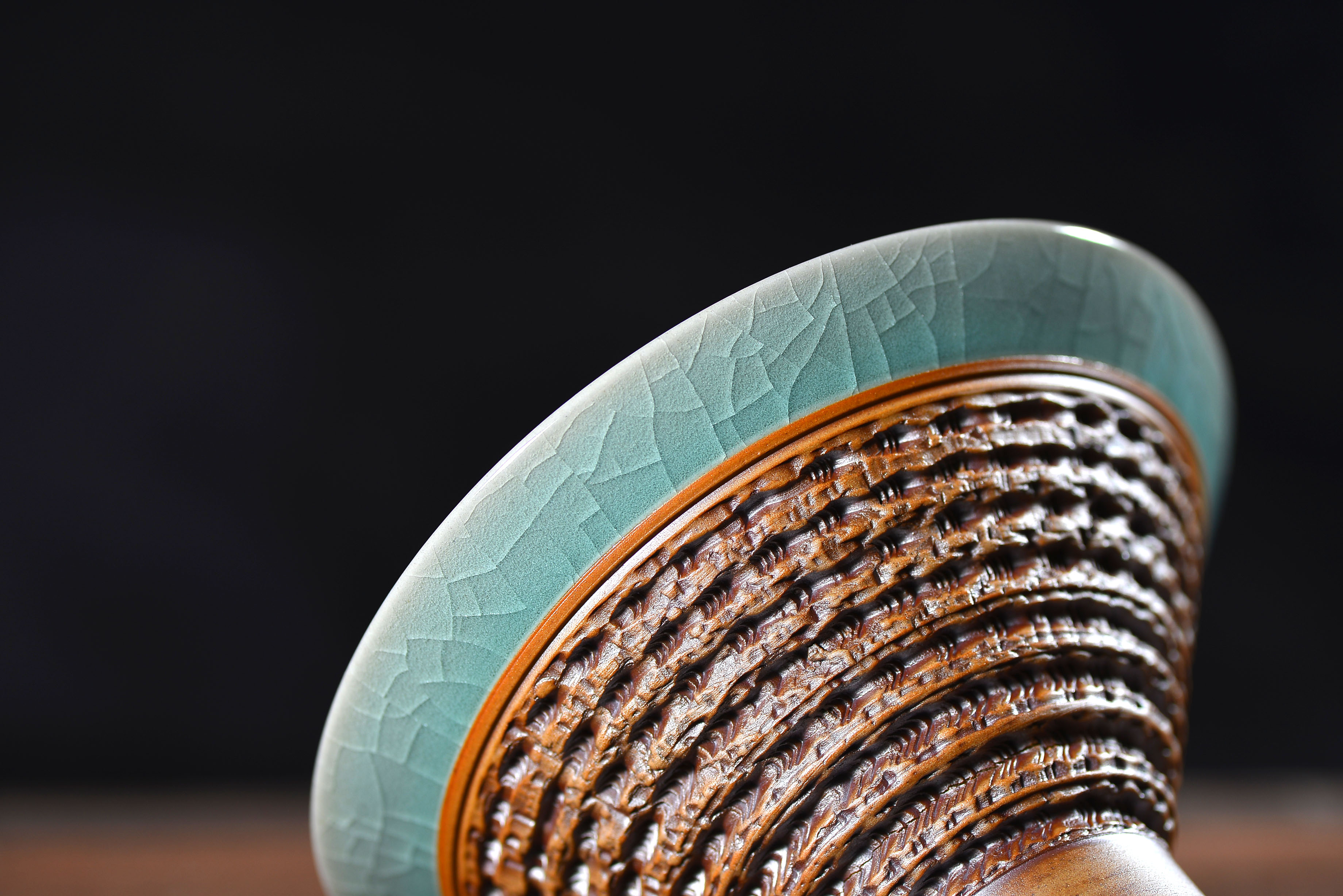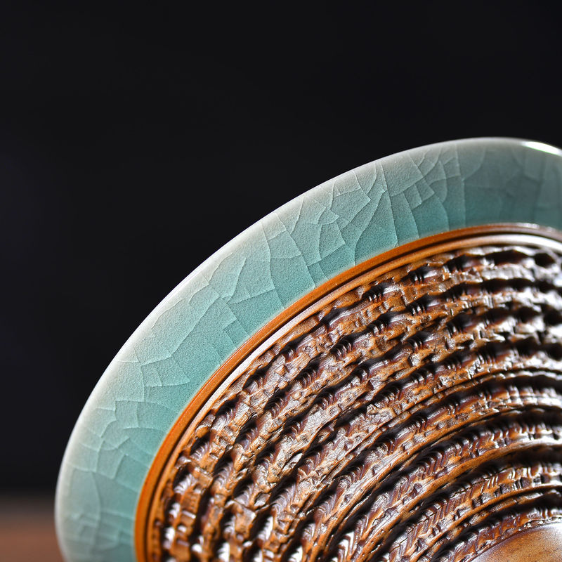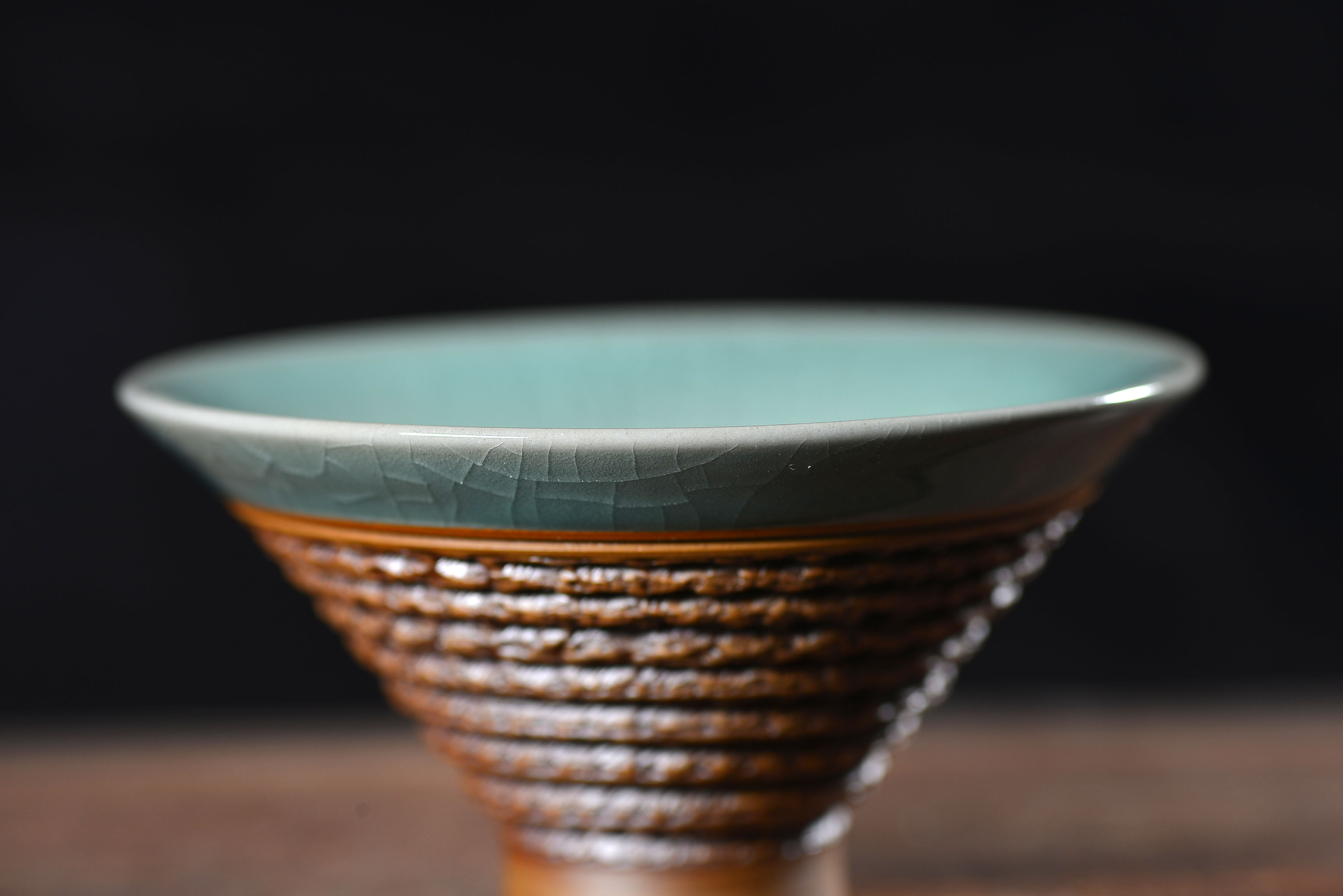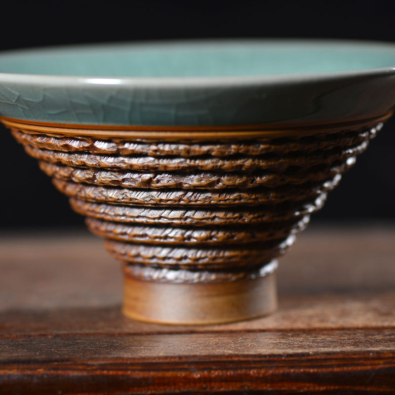 清凉寺仿古釉天青色 手工跳刀斗笠杯 直径10厘米 高5.5厘米 容量130毫升。全品无瑕疵 收藏使用佳品。 收藏使用佳品。清凉寺汝瓷是中国北宋时期的主要代表瓷之一,属于五大名窑之一。清凉寺汝瓷的历史可以追溯到北宋时期,当时的宋王朝为了满足宫廷的特殊需要,设立了汝官窑。这个窑场生产的汝瓷以其独特的美学风格和高*的制作工艺而闻名,被视为青瓷之典范。清凉寺汝官窑遗址是在上世纪被发现的,这一发现揭开了汝官窑消失的千古之谜。自1987年以来,河南省文物考古研究所对清凉寺汝窑遗址进行了多次发掘,发现了大量重要的烧造设施和汝窑瓷器标本。清凉寺汝瓷的艺术特色体现在其独特的制作工艺和美学风格上。它以其工艺精湛、造型秀美、釉面蕴润、高雅素净的丰韵而独具风采。汝瓷的制作工艺包括使用名贵玛瑙为釉,釉色独特,随光变幻,呈现出“雨过天晴云破处”“千峰碧波翠色来”的美妙效果。此外,汝瓷的胎体厚重,釉厚而声如磬。汝瓷的形状古朴大方,器表呈蝉翼纹细小开片,具有“梨皮、蟹爪、芝麻花”的特点。这些装饰手法使得汝瓷不仅美观而且富有变化,被世人称为“似玉、非玉、而胜玉”。