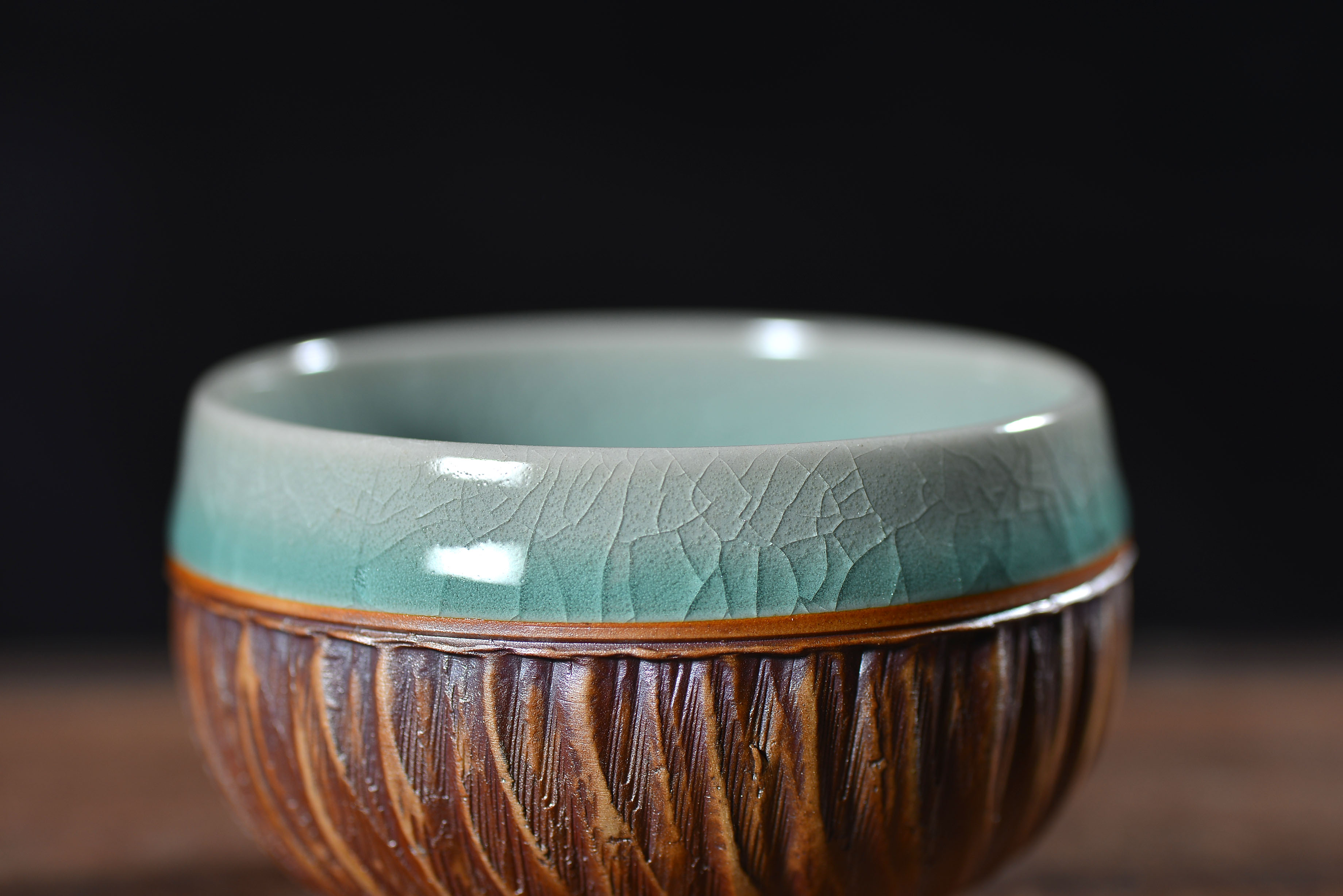 清凉寺仿古釉天青色 手工跳刀罗汉杯 直径8.2厘米 高5厘米 容量150毫升,全品无瑕疵 收藏使用佳品。 收藏使用佳品。清凉寺汝瓷是中国北宋时期的主要代表瓷之一,属于五大名窑之一。清凉寺汝瓷的历史可以追溯到北宋时期,当时的宋王朝为了满足宫廷的特殊需要,设立了汝官窑。这个窑场生产的汝瓷以其独特的美学风格和高*的制作工艺而闻名,被视为青瓷之典范。清凉寺汝官窑遗址是在上世纪被发现的,这一发现揭开了汝官窑消失的千古之谜。自1987年以来,河南省文物考古研究所对清凉寺汝窑遗址进行了多次发掘,发现了大量重要的烧造设施和汝窑瓷器标本。清凉寺汝瓷的艺术特色体现在其独特的制作工艺和美学风格上。它以其工艺精湛、造型秀美、釉面蕴润、高雅素净的丰韵而独具风采。汝瓷的制作工艺包括使用名贵玛瑙为釉,釉色独特,随光变幻,呈现出“雨过天晴云破处”“千峰碧波翠色来”的美妙效果。此外,汝瓷的胎体厚重,釉厚而声如磬。汝瓷的形状古朴大方,器表呈蝉翼纹细小开片,具有“梨皮、蟹爪、芝麻花”的特点。这些装饰手法使得汝瓷不仅美观而且富有变化,被世人称为“似玉、非玉、而胜玉”。