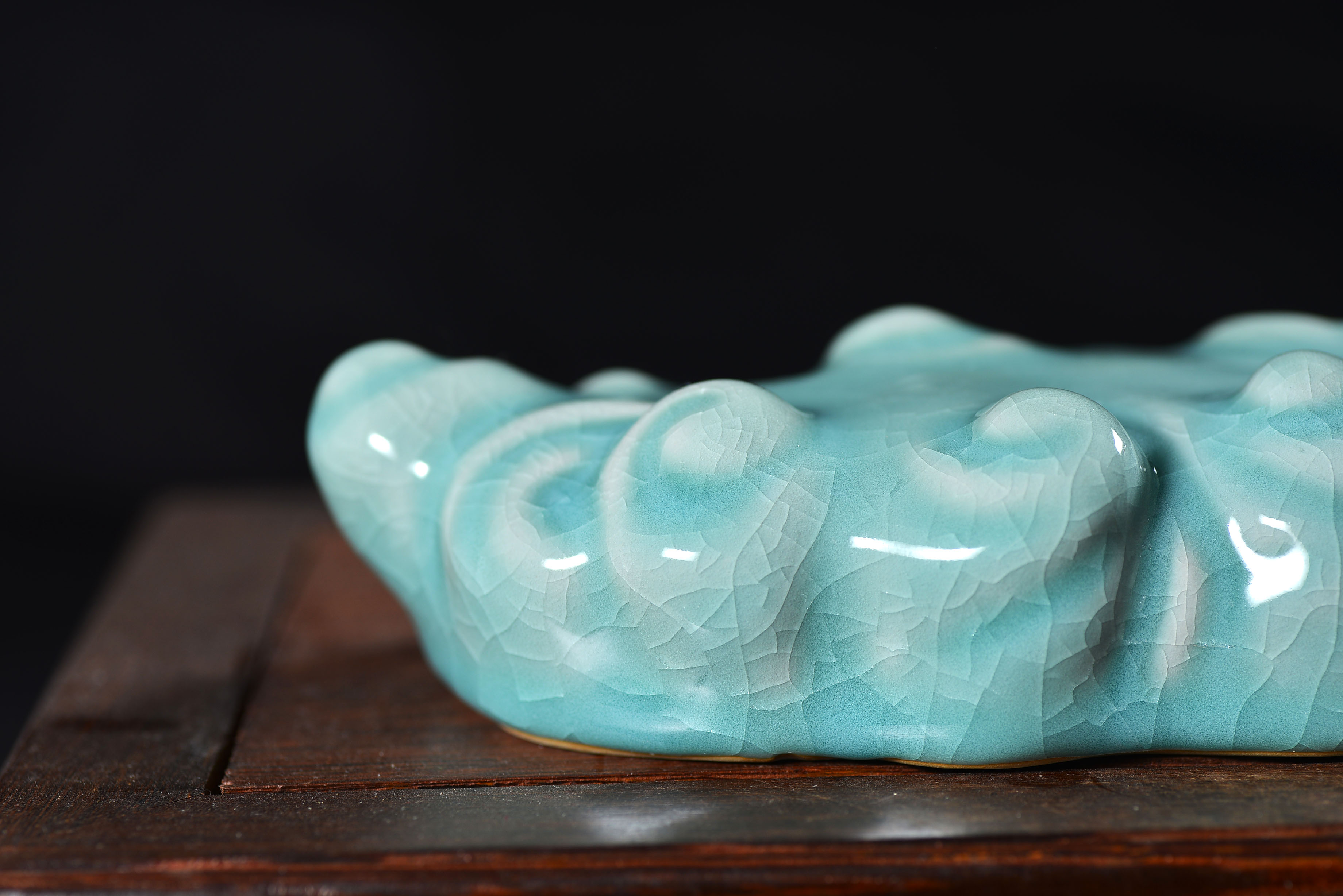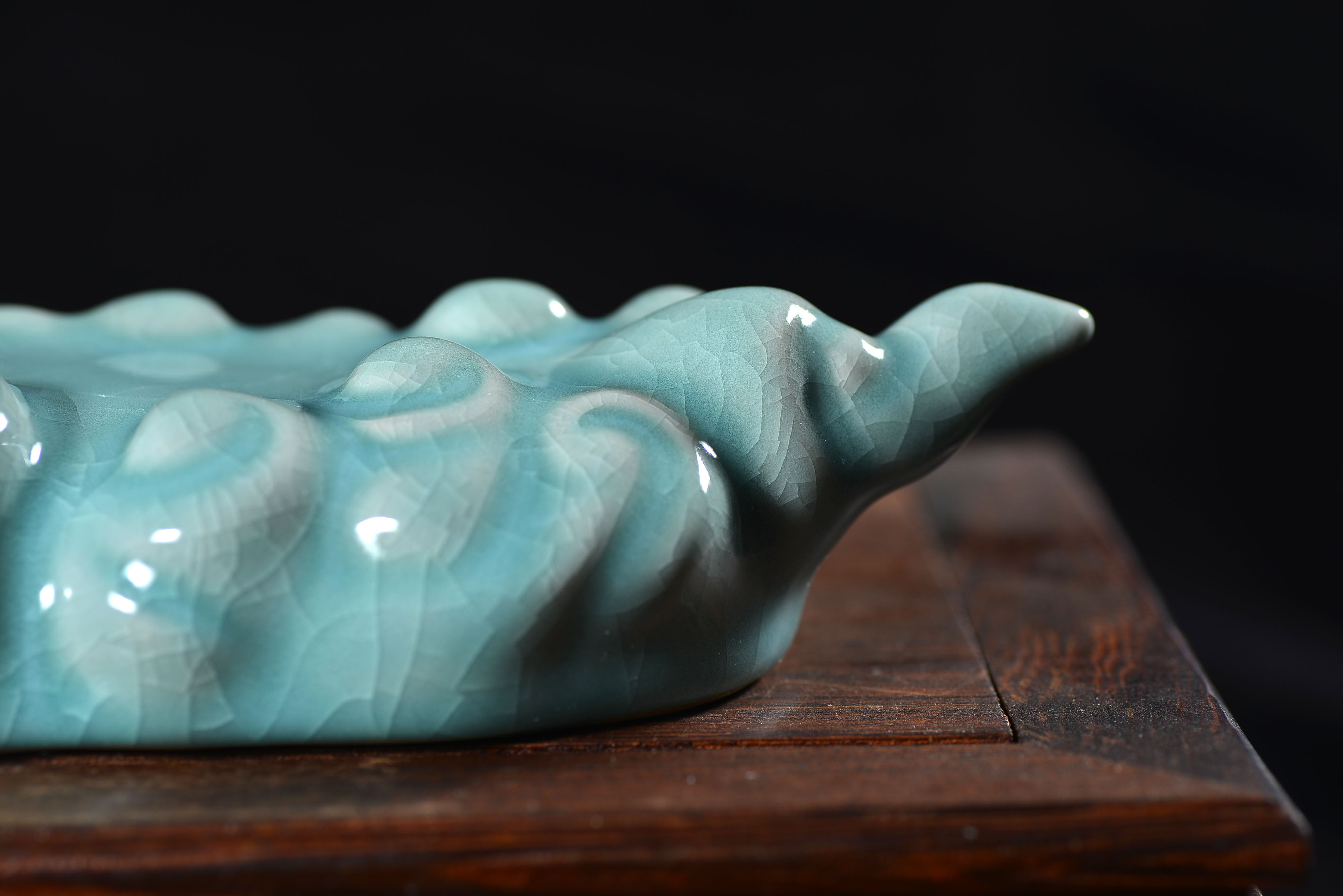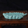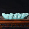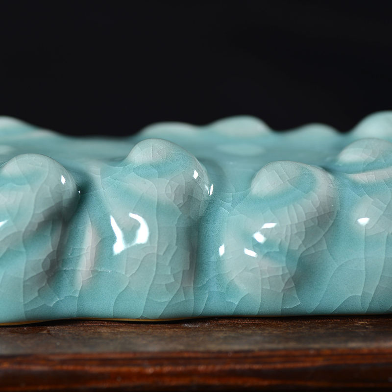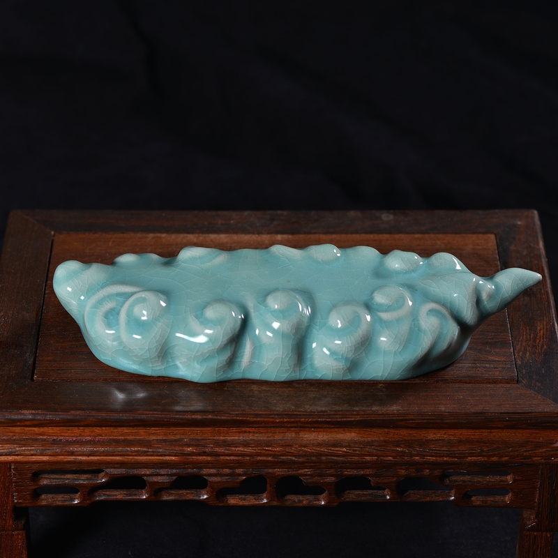清凉寺仿古釉天青色 笔架 长23里面 宽7.5厘米 高4厘米。表面有轻微黑点,瑕疵品。全品无瑕疵 收藏使用佳品。 收藏使用佳品。清凉寺汝瓷是中国北宋时期的主要代表瓷之一,属于五大名窑之一。清凉寺汝瓷的历史可以追溯到北宋时期,当时的宋王朝为了满足宫廷的特殊需要,设立了汝官窑。这个窑场生产的汝瓷以其独特的美学风格和高*的制作工艺而闻名,被视为青瓷之典范。清凉寺汝官窑遗址是在上世纪被发现的,这一发现揭开了汝官窑消失的千古之谜。自1987年以来,河南省文物考古研究所对清凉寺汝窑遗址进行了多次发掘,发现了大量重要的烧造设施和汝窑瓷器标本。清凉寺汝瓷的艺术特色体现在其独特的制作工艺和美学风格上。它以其工艺精湛、造型秀美、釉面蕴润、高雅素净的丰韵而独具风采。汝瓷的制作工艺包括使用名贵玛瑙为釉,釉色独特,随光变幻,呈现出“雨过天晴云破处”“千峰碧波翠色来”的美妙效果。此外,汝瓷的胎体厚重,釉厚而声如磬。汝瓷的形状古朴大方,器表呈蝉翼纹细小开片,具有“梨皮、蟹爪、芝麻花”的特点。这些装饰手法使得汝瓷不仅美观而且富有变化,被世人称为“似玉、非玉、而胜玉”。