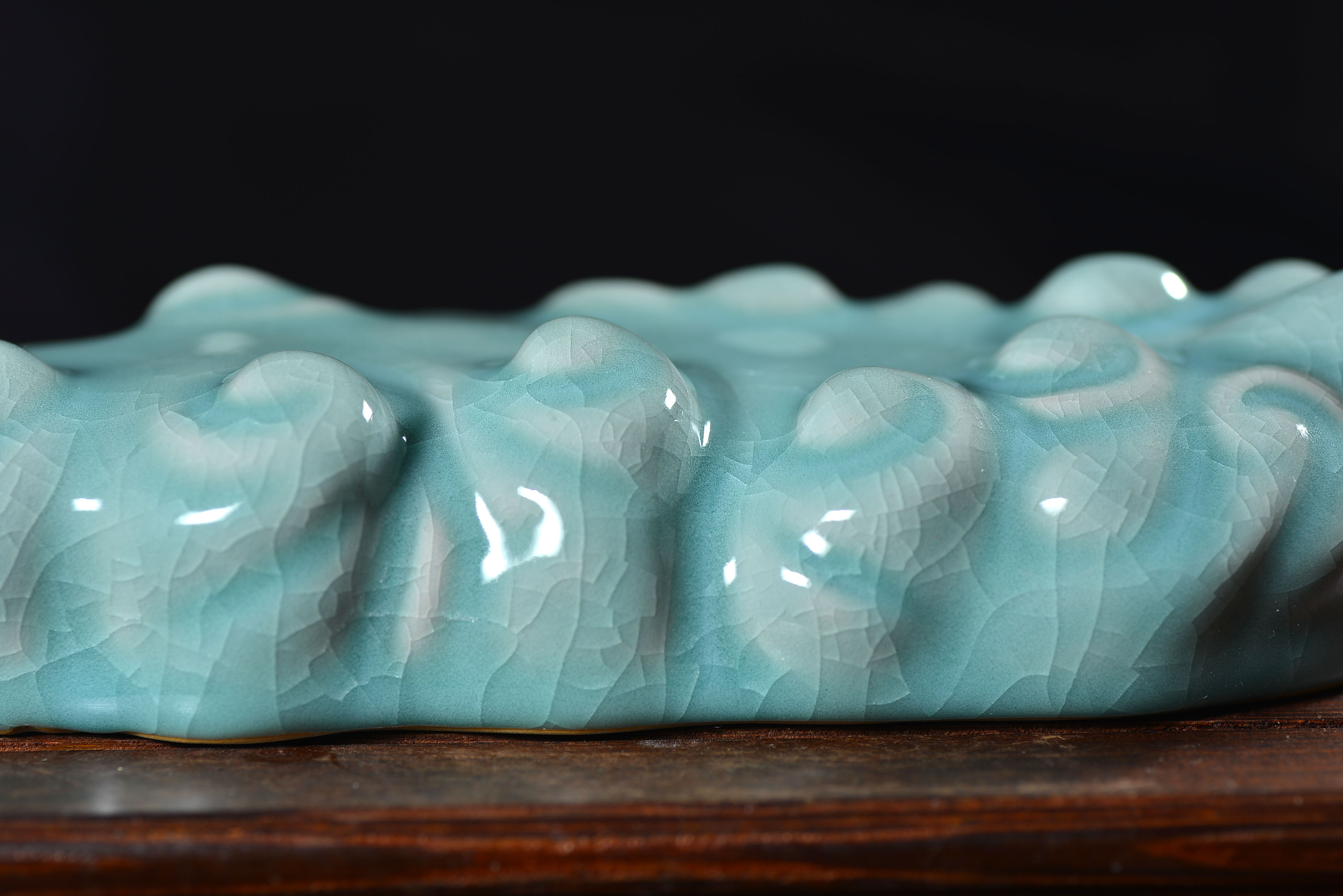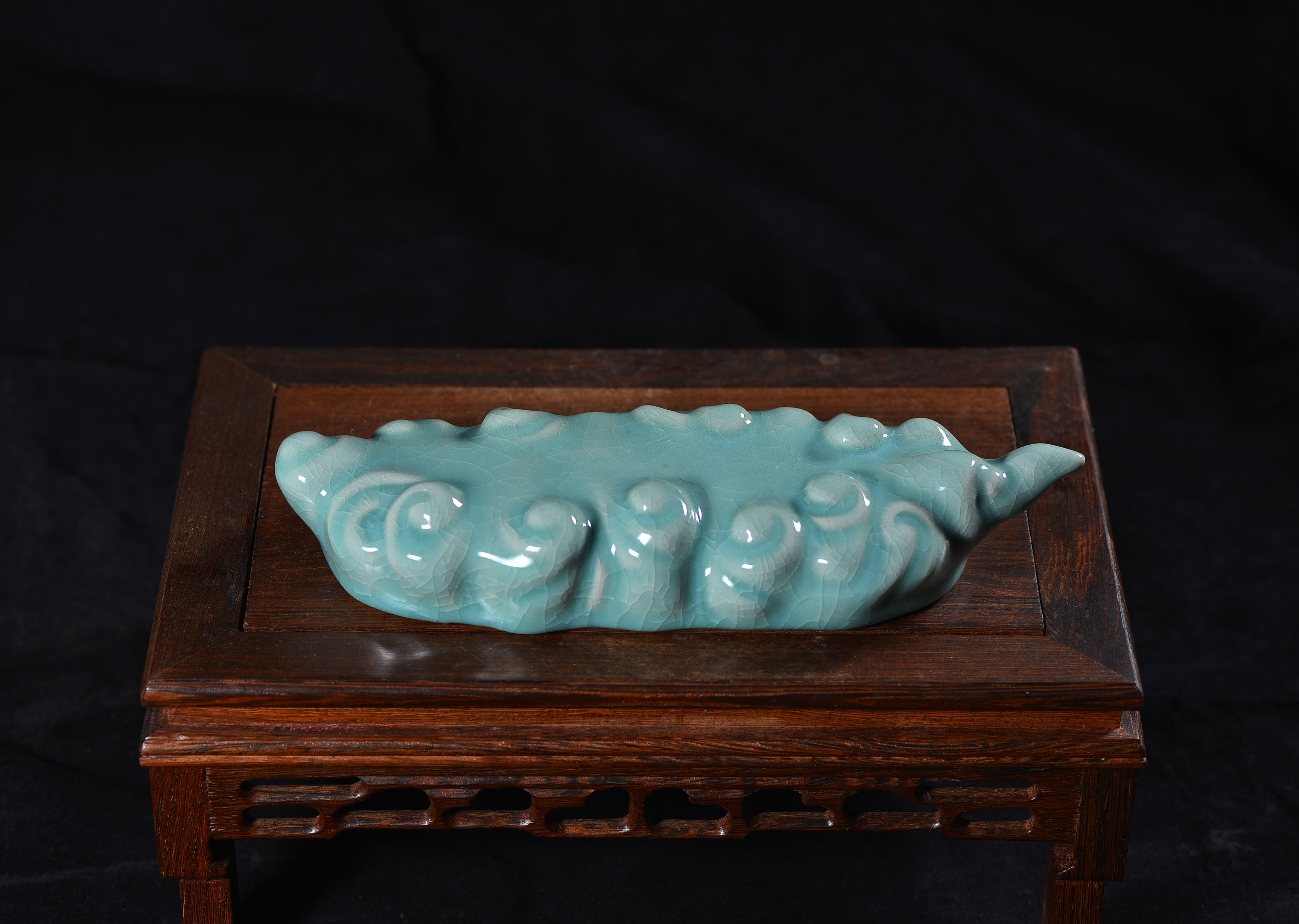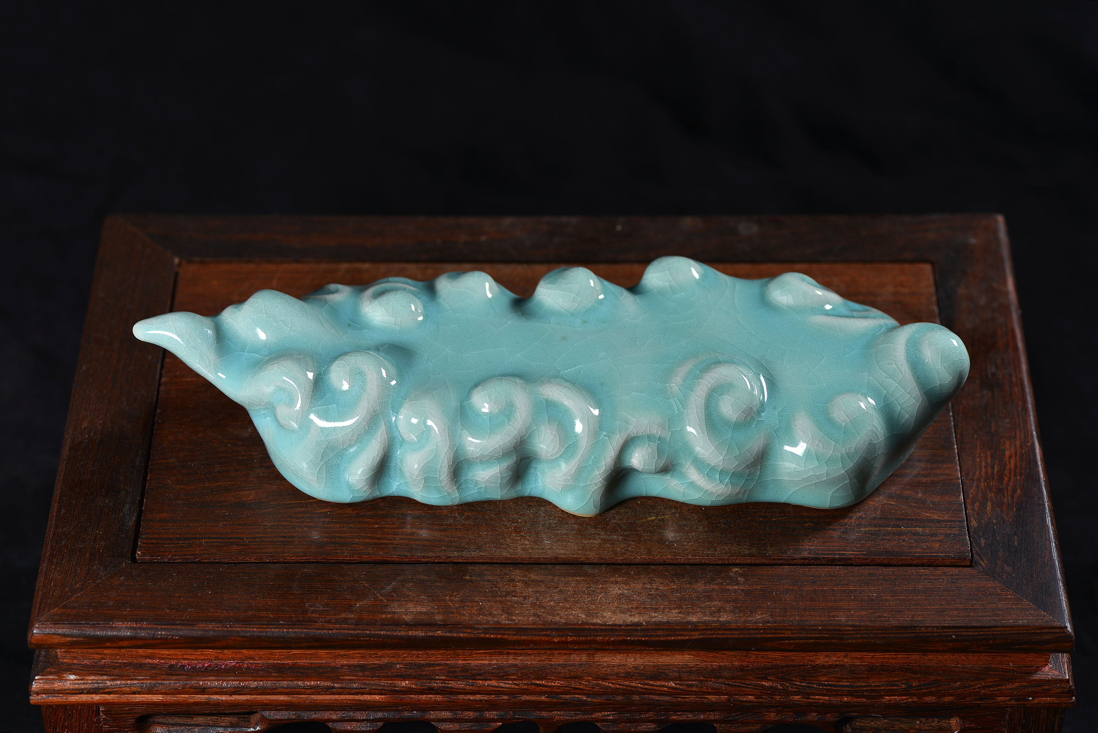 清凉寺仿古釉天青色 笔架 长23里面 宽7.5厘米 高4厘米。表面有轻微黑点,瑕疵品。全品无瑕疵 收藏使用佳品。 收藏使用佳品。清凉寺汝瓷是中国北宋时期的主要代表瓷之一,属于五大名窑之一。清凉寺汝瓷的历史可以追溯到北宋时期,当时的宋王朝为了满足宫廷的特殊需要,设立了汝官窑。这个窑场生产的汝瓷以其独特的美学风格和高*的制作工艺而闻名,被视为青瓷之典范。清凉寺汝官窑遗址是在上世纪被发现的,这一发现揭开了汝官窑消失的千古之谜。自1987年以来,河南省文物考古研究所对清凉寺汝窑遗址进行了多次发掘,发现了大量重要的烧造设施和汝窑瓷器标本。清凉寺汝瓷的艺术特色体现在其独特的制作工艺和美学风格上。它以其工艺精湛、造型秀美、釉面蕴润、高雅素净的丰韵而独具风采。汝瓷的制作工艺包括使用名贵玛瑙为釉,釉色独特,随光变幻,呈现出“雨过天晴云破处”“千峰碧波翠色来”的美妙效果。此外,汝瓷的胎体厚重,釉厚而声如磬。汝瓷的形状古朴大方,器表呈蝉翼纹细小开片,具有“梨皮、蟹爪、芝麻花”的特点。这些装饰手法使得汝瓷不仅美观而且富有变化,被世人称为“似玉、非玉、而胜玉”。