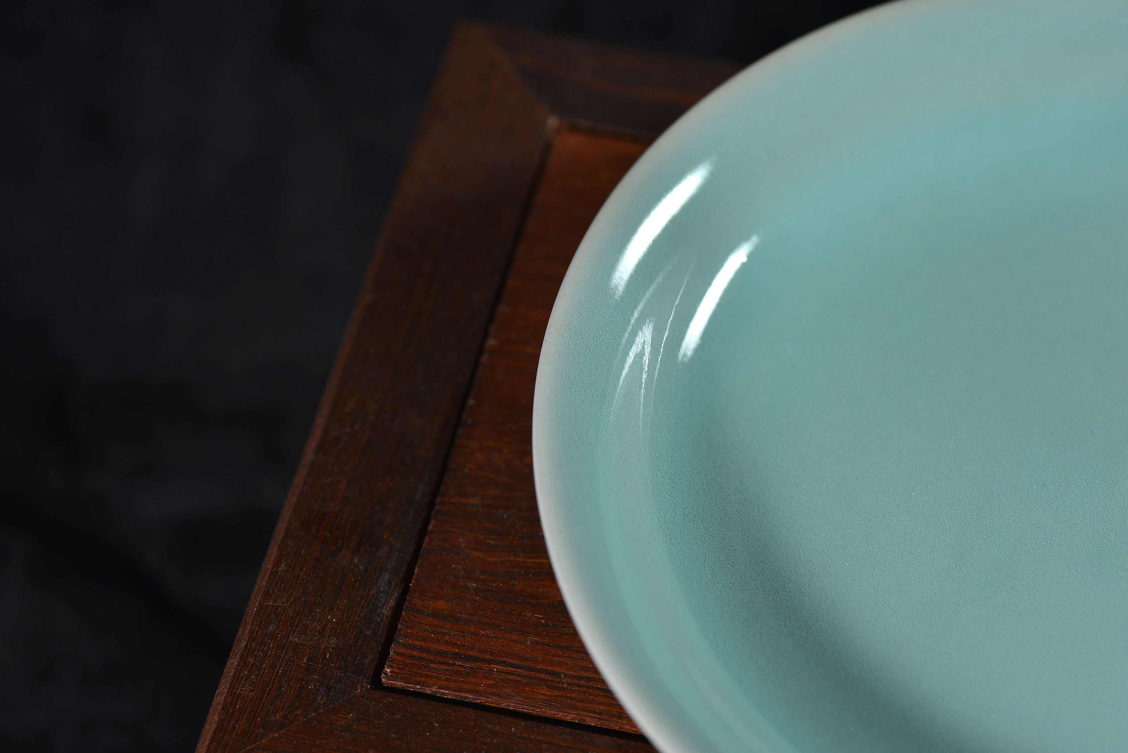 清凉寺仿古釉天青色 不开片餐盘 直径20厘米 高3.5厘米 全品无瑕疵 收藏使用佳品。 收藏使用佳品。清凉寺汝瓷是中国北宋时期的主要代表瓷之一,属于五大名窑之一。清凉寺汝瓷的历史可以追溯到北宋时期,当时的宋王朝为了满足宫廷的特殊需要,设立了汝官窑。这个窑场生产的汝瓷以其独特的美学风格和高*的制作工艺而闻名,被视为青瓷之典范。清凉寺汝官窑遗址是在上世纪被发现的,这一发现揭开了汝官窑消失的千古之谜。自1987年以来,河南省文物考古研究所对清凉寺汝窑遗址进行了多次发掘,发现了大量重要的烧造设施和汝窑瓷器标本。清凉寺汝瓷的艺术特色体现在其独特的制作工艺和美学风格上。它以其工艺精湛、造型秀美、釉面蕴润、高雅素净的丰韵而独具风采。汝瓷的制作工艺包括使用名贵玛瑙为釉,釉色独特,随光变幻,呈现出“雨过天晴云破处”“千峰碧波翠色来”的美妙效果。此外,汝瓷的胎体厚重,釉厚而声如磬。汝瓷的形状古朴大方,器表呈蝉翼纹细小开片,具有“梨皮、蟹爪、芝麻花”的特点。这些装饰手法使得汝瓷不仅美观而且富有变化,被世人称为“似玉、非玉、而胜玉”。