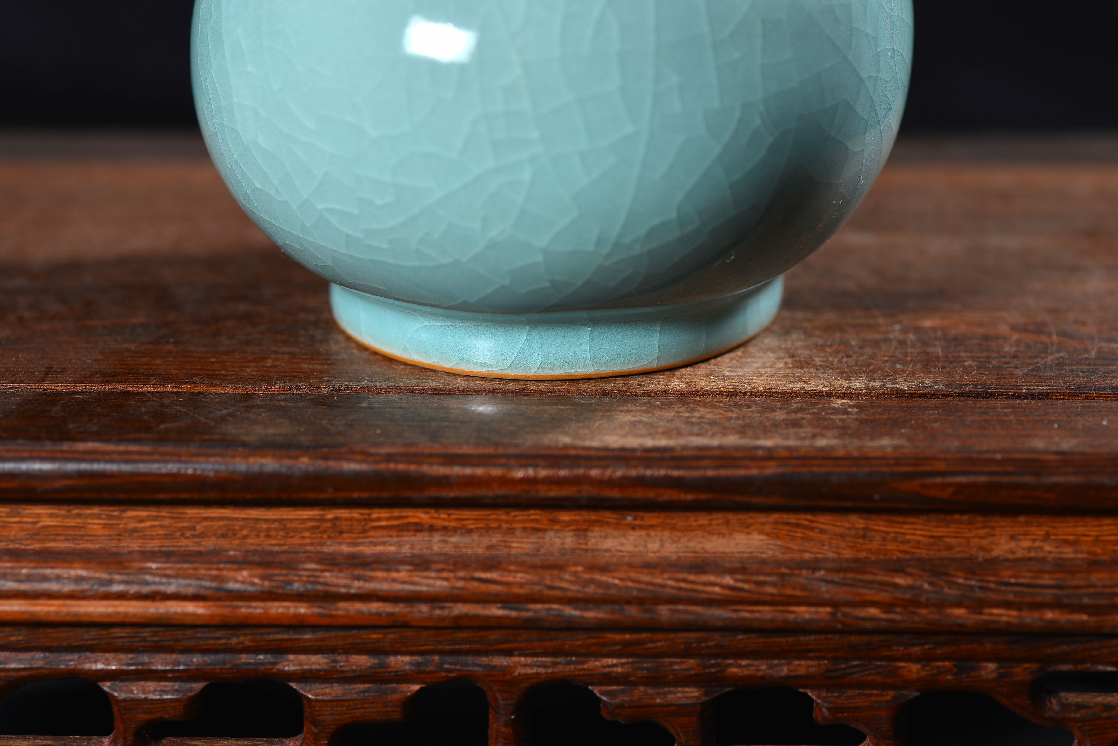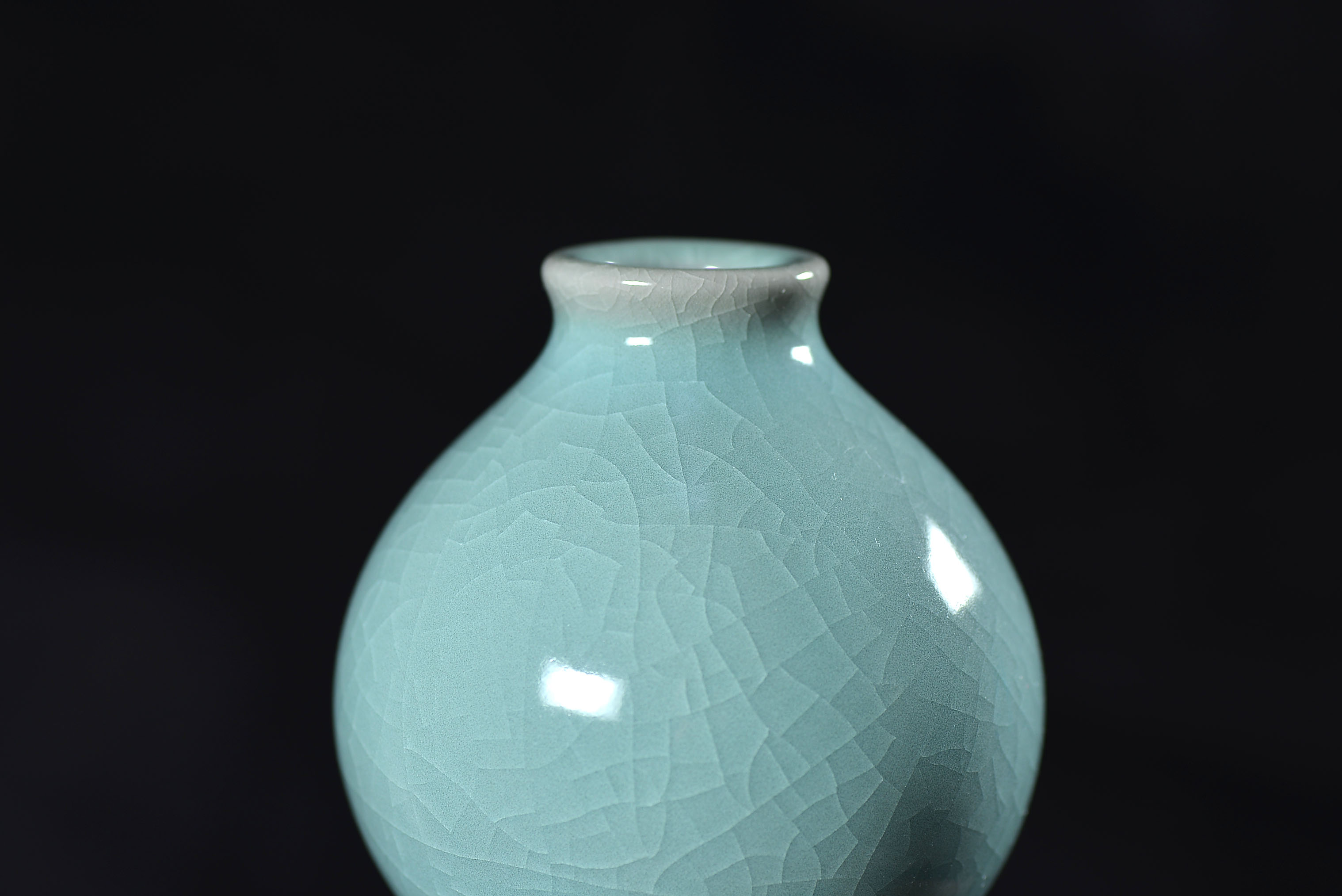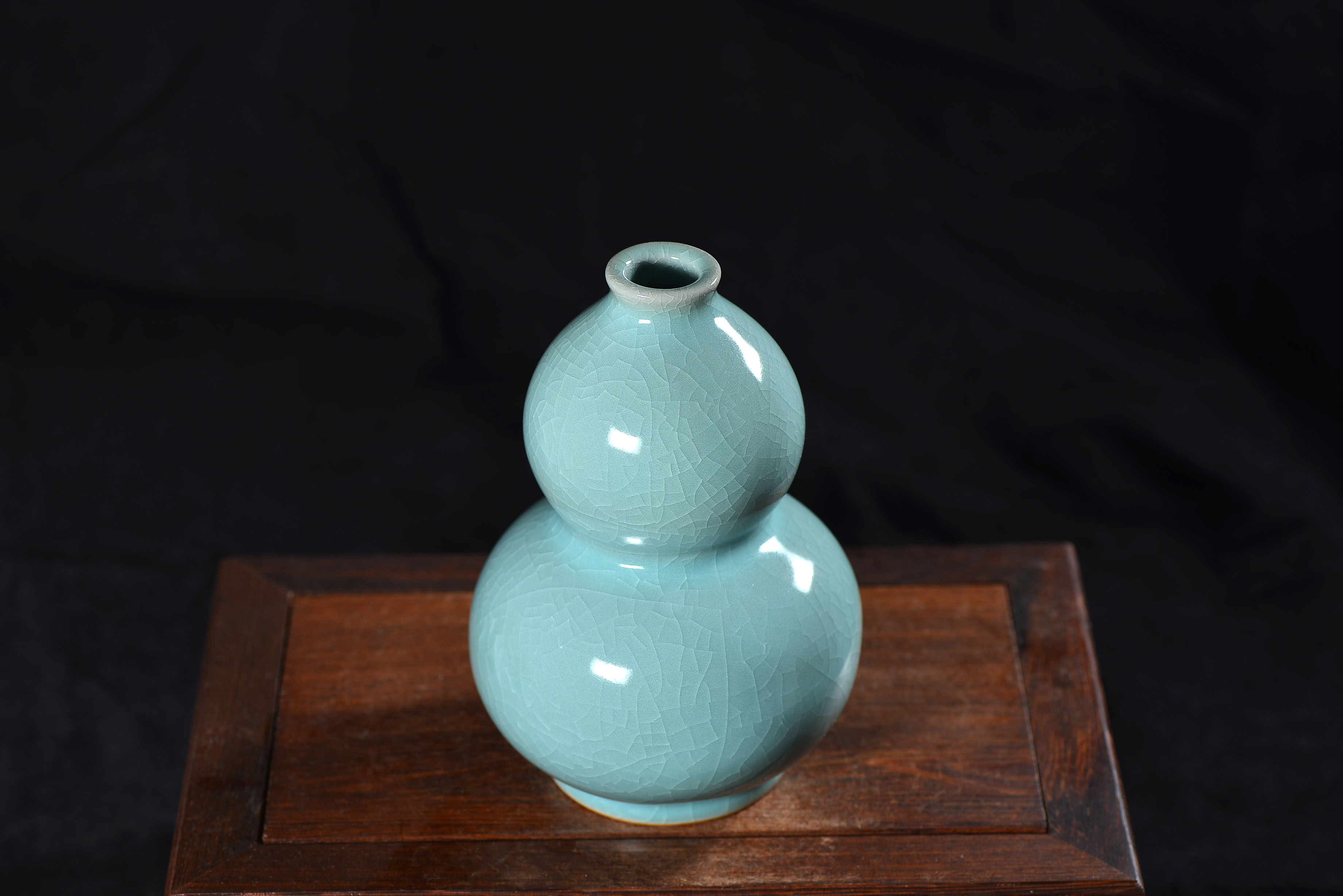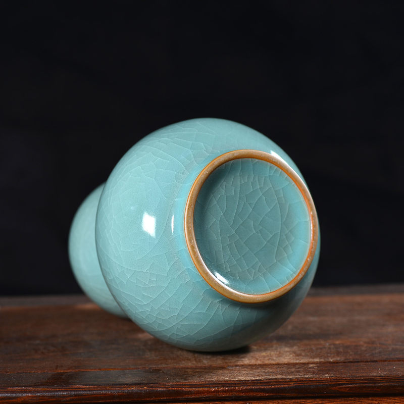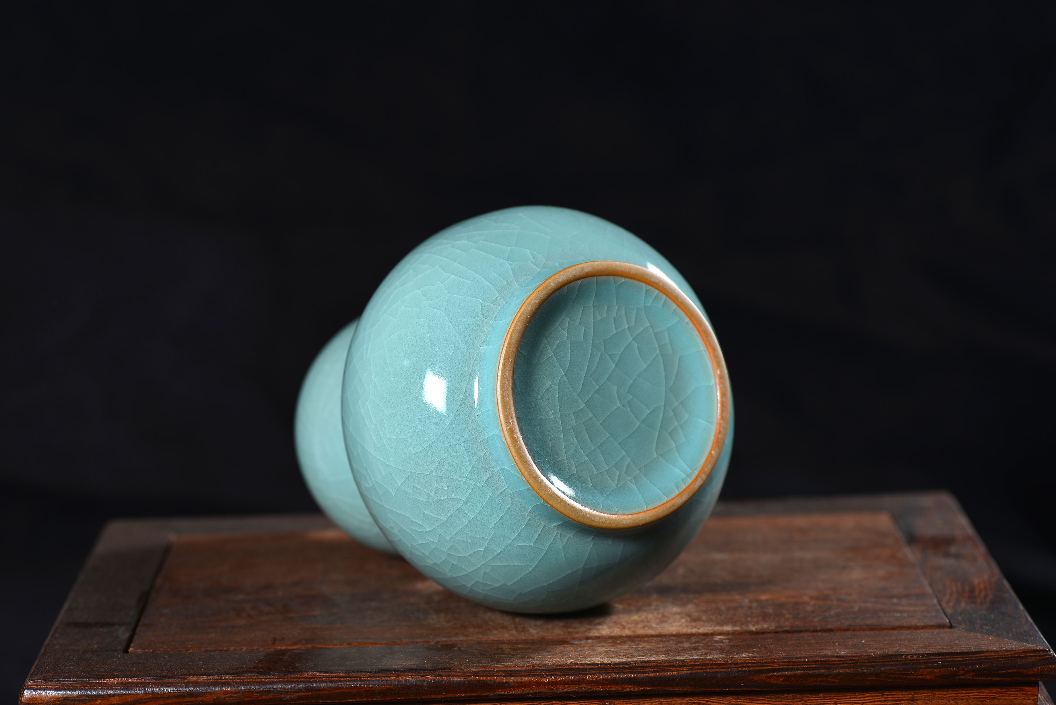 清凉寺仿古釉天青色 葫芦酒瓶 容量620毫升 口径3厘米 高27厘米 全品无瑕疵 收藏使用佳品。 收藏使用佳品。清凉寺汝瓷是中国北宋时期的主要代表瓷之一,属于五大名窑之一。清凉寺汝瓷的历史可以追溯到北宋时期,当时的宋王朝为了满足宫廷的特殊需要,设立了汝官窑。这个窑场生产的汝瓷以其独特的美学风格和高*的制作工艺而闻名,被视为青瓷之典范。清凉寺汝官窑遗址是在上世纪被发现的,这一发现揭开了汝官窑消失的千古之谜。自1987年以来,河南省文物考古研究所对清凉寺汝窑遗址进行了多次发掘,发现了大量重要的烧造设施和汝窑瓷器标本。清凉寺汝瓷的艺术特色体现在其独特的制作工艺和美学风格上。它以其工艺精湛、造型秀美、釉面蕴润、高雅素净的丰韵而独具风采。汝瓷的制作工艺包括使用名贵玛瑙为釉,釉色独特,随光变幻,呈现出“雨过天晴云破处”“千峰碧波翠色来”的美妙效果。此外,汝瓷的胎体厚重,釉厚而声如磬。汝瓷的形状古朴大方,器表呈蝉翼纹细小开片,具有“梨皮、蟹爪、芝麻花”的特点。这些装饰手法使得汝瓷不仅美观而且富有变化,被世人称为“似玉、非玉、而胜玉”。