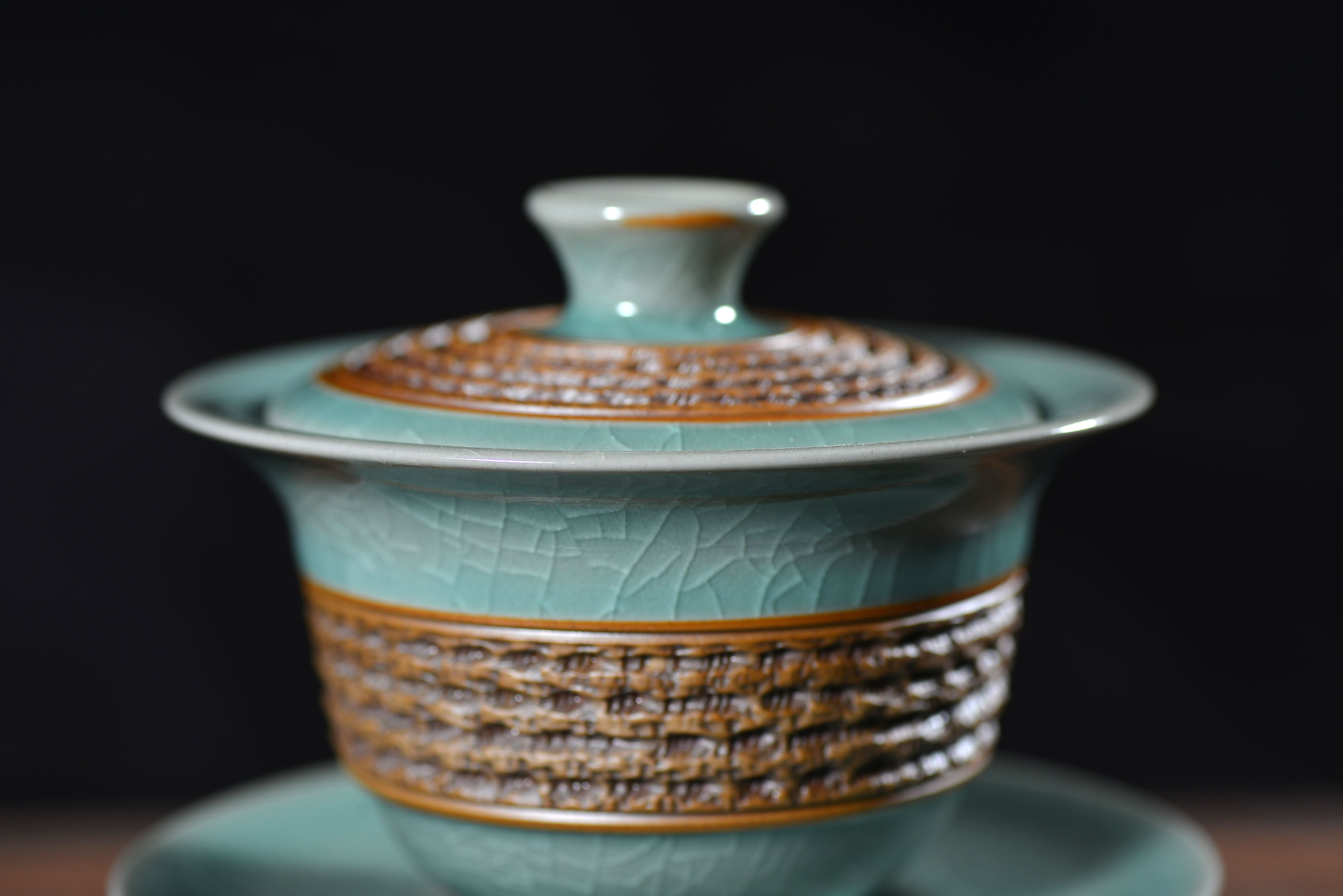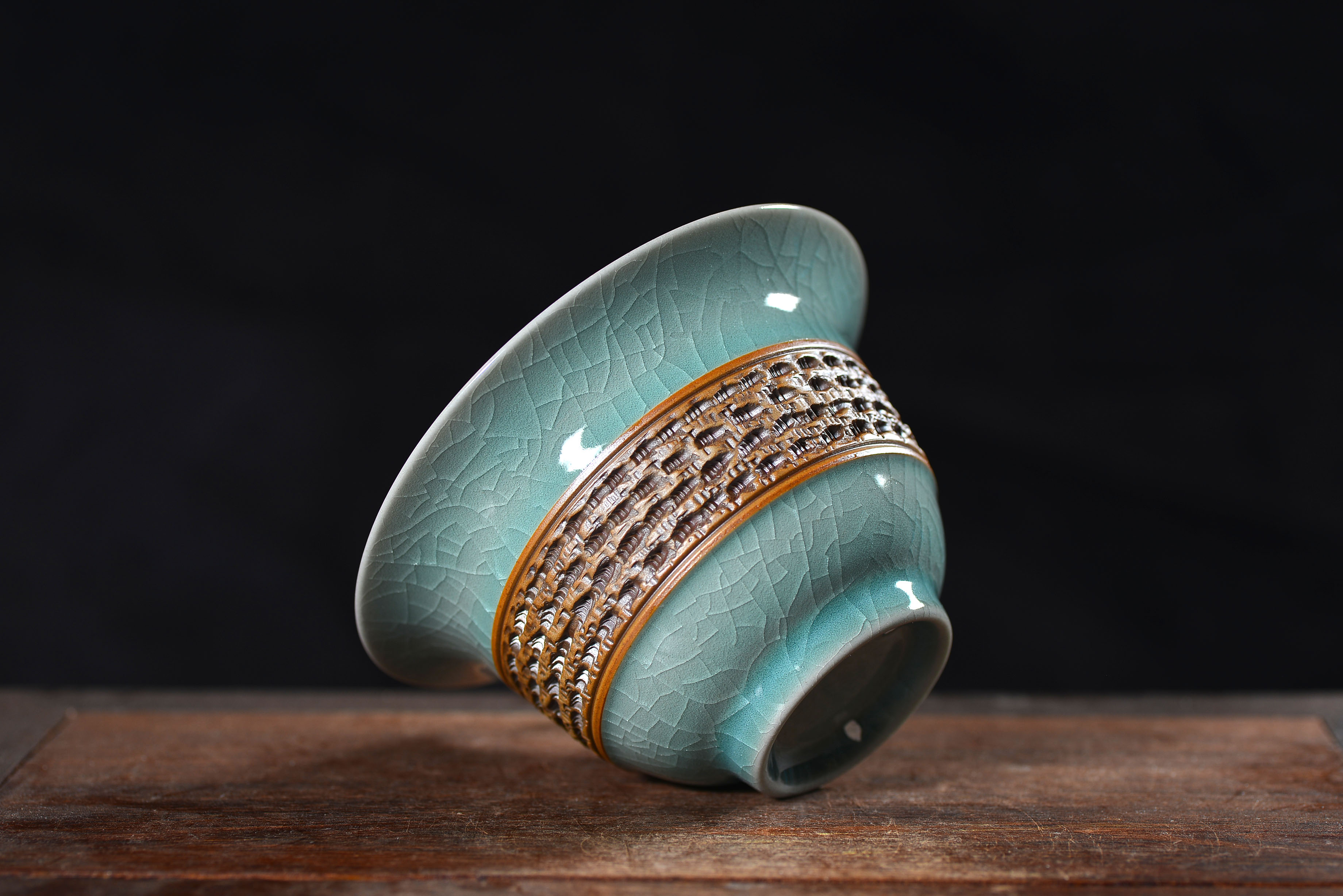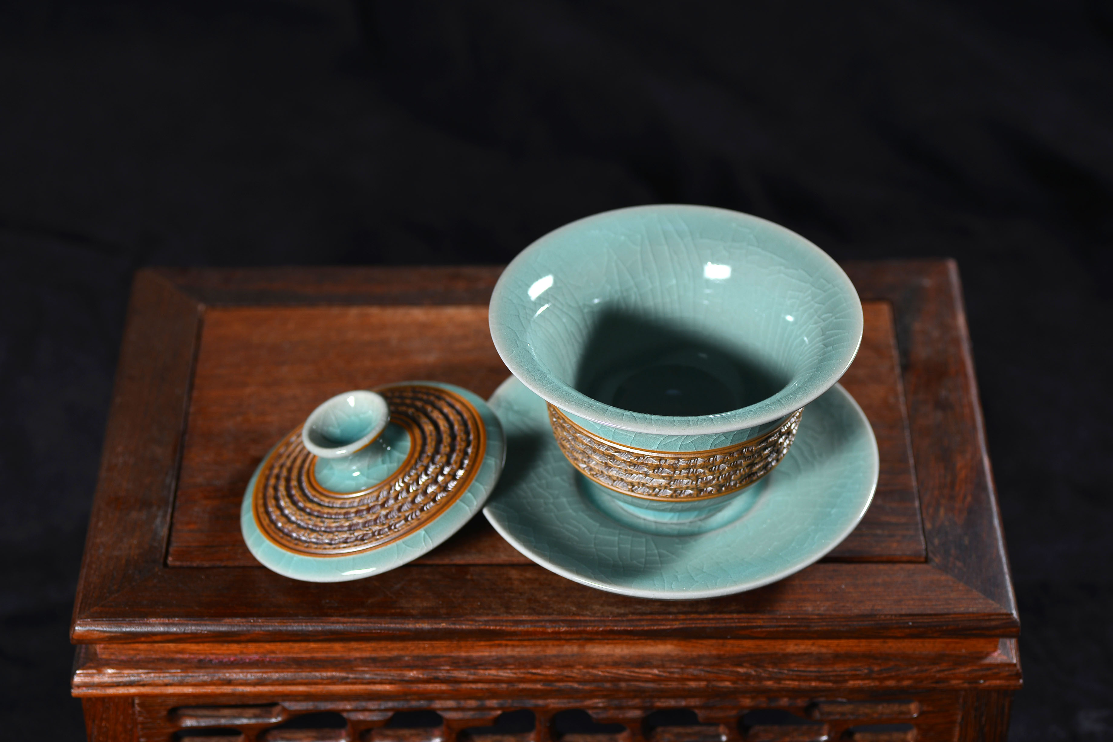 清凉寺仿古釉天青色 手工跳刀三才盖碗 直径12厘米 高10厘米 容量180毫升。采用清凉寺村附近山上的黏土,矿石,等多种天然材质,经过精心烧制而成。清凉寺汝瓷是中国北宋时期的主要代表瓷之一,属于五大名窑之一。清凉寺汝瓷的历史可以追溯到北宋时期,当时的宋王朝为了满足宫廷的特殊需要,设立了汝官窑。这个窑场生产的汝瓷以其独特的美学风格和高*的制作工艺而闻名,被视为青瓷之典范。清凉寺汝官窑遗址是在上世纪被发现的,这一发现揭开了汝官窑消失的千古之谜。自1987年以来,河南省文物考古研究所对清凉寺汝窑遗址进行了多次发掘,发现了大量重要的烧造设施和汝窑瓷器标本。清凉寺汝瓷的艺术特色体现在其独特的制作工艺和美学风格上。它以其工艺精湛、造型秀美、釉面蕴润、高雅素净的丰韵而独具风采。汝瓷的制作工艺包括使用名贵玛瑙为釉,釉色独特,随光变幻,呈现出“雨过天晴云破处”“千峰碧波翠色来”的美妙效果。此外,汝瓷的胎体厚重,釉厚而声如磬。汝瓷的形状古朴大方,器表呈蝉翼纹细小开片,具有“梨皮、蟹爪、芝麻花”的特点。这些装饰手法使得汝瓷不仅美观而且富有变化,被世人称为“似玉、非玉、而胜玉”。