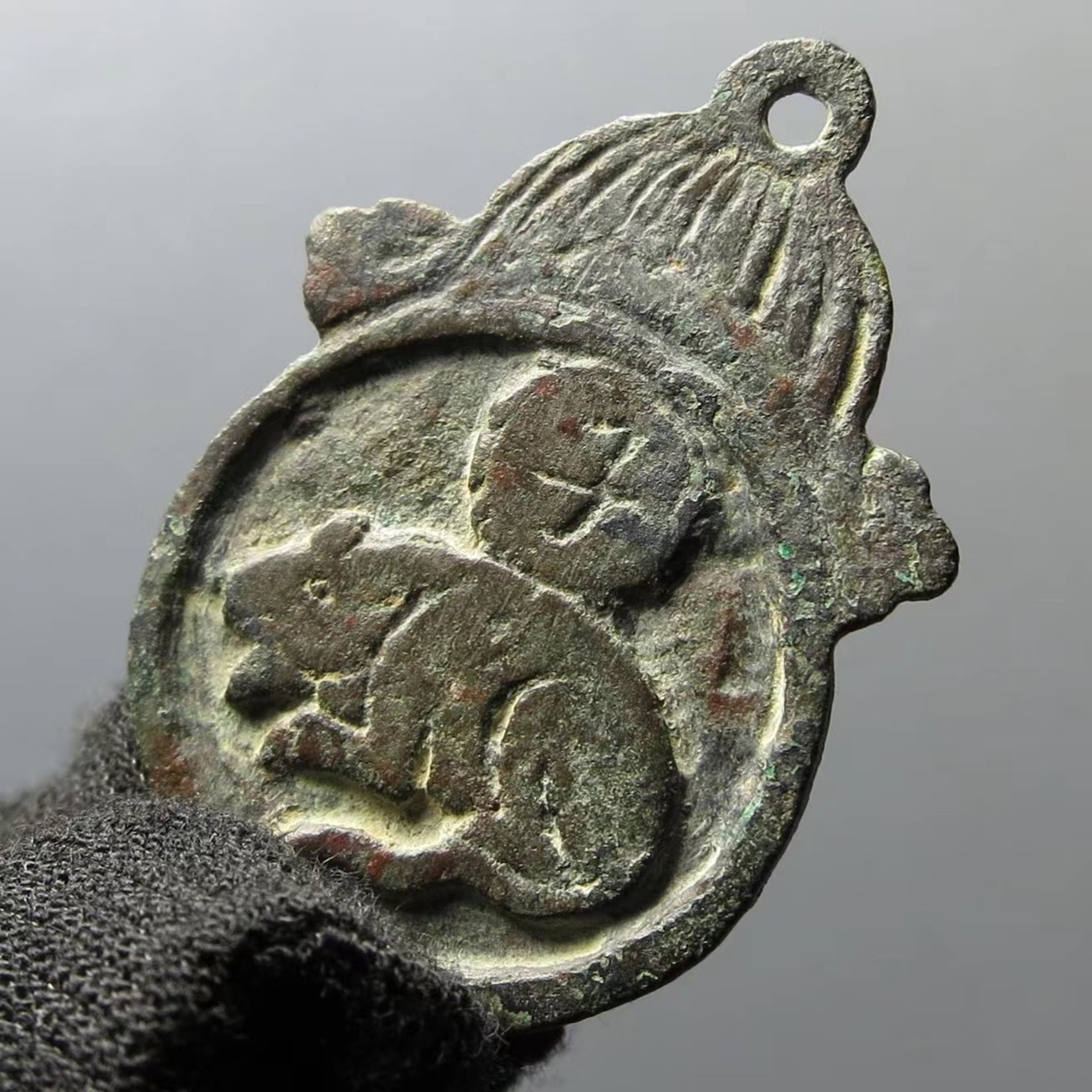 图录号013 子鼠星官花钱 质地:铜 质量:6.2g 尺寸:36.3x36.3x1.7mm 大热门儿星官题材花钱,生肖子鼠星官挂花,此钱传世品相,包浆熟美老辣自然,精美图案,版模力度好,状态好,正面上书“子”代表生肖鼠,下面老鼠体型健硕,背面为本命星官,图案清晰,线条流畅,实属难得。已入盒,题材好,潜力好,值得收藏;