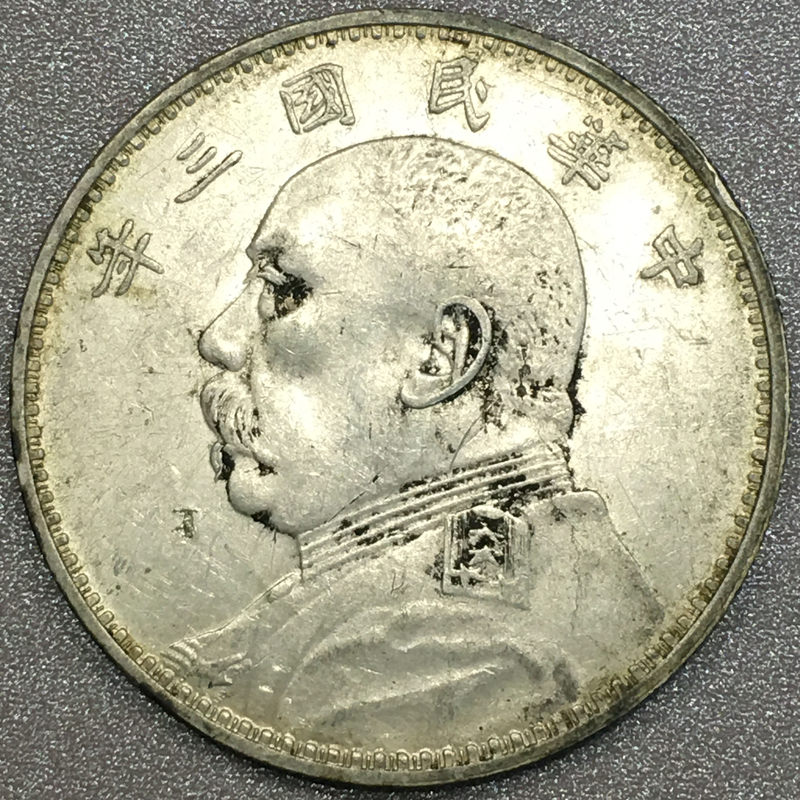 图录号021 民国三年袁世凯壹圆银币 质地:银 质量:27.0g 尺寸:38.9x38.9x2.6mm 此枚民国三年袁世凯壹圆银币,银色纯正,压力足,黄油光极美品,袁世凯银币民间俗称袁大头,是银元代名词,深受大众欢迎,值得收藏。