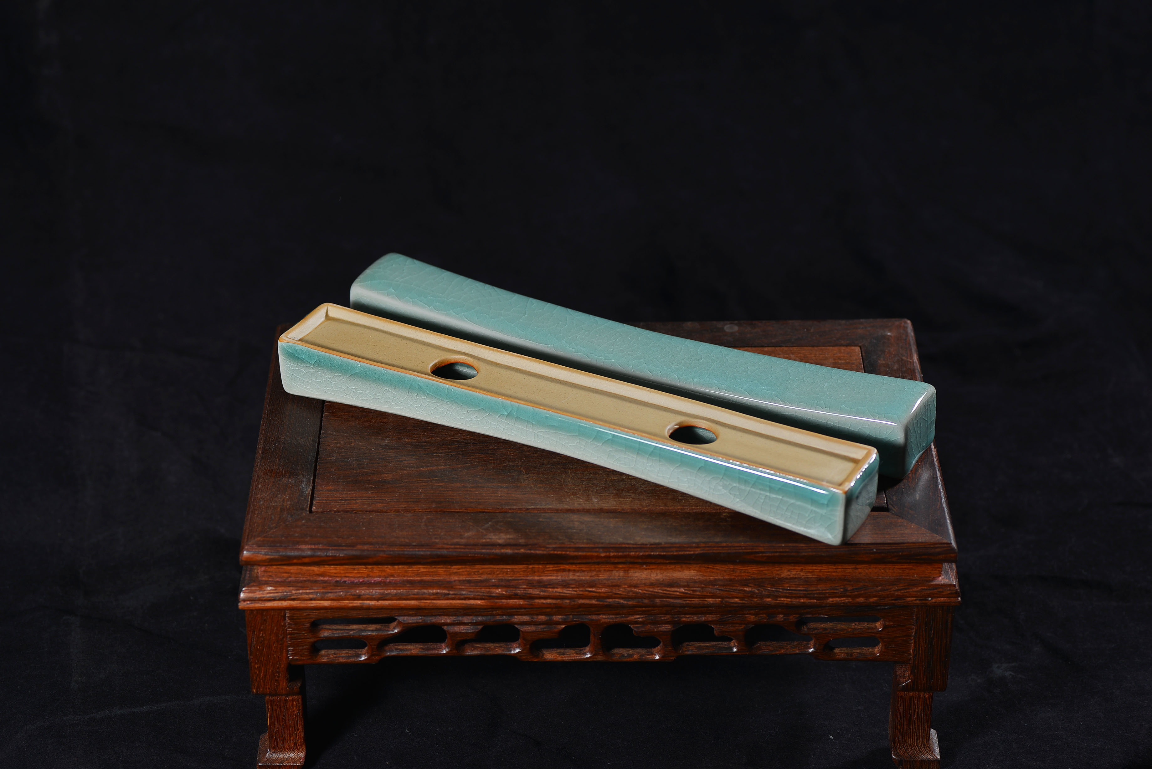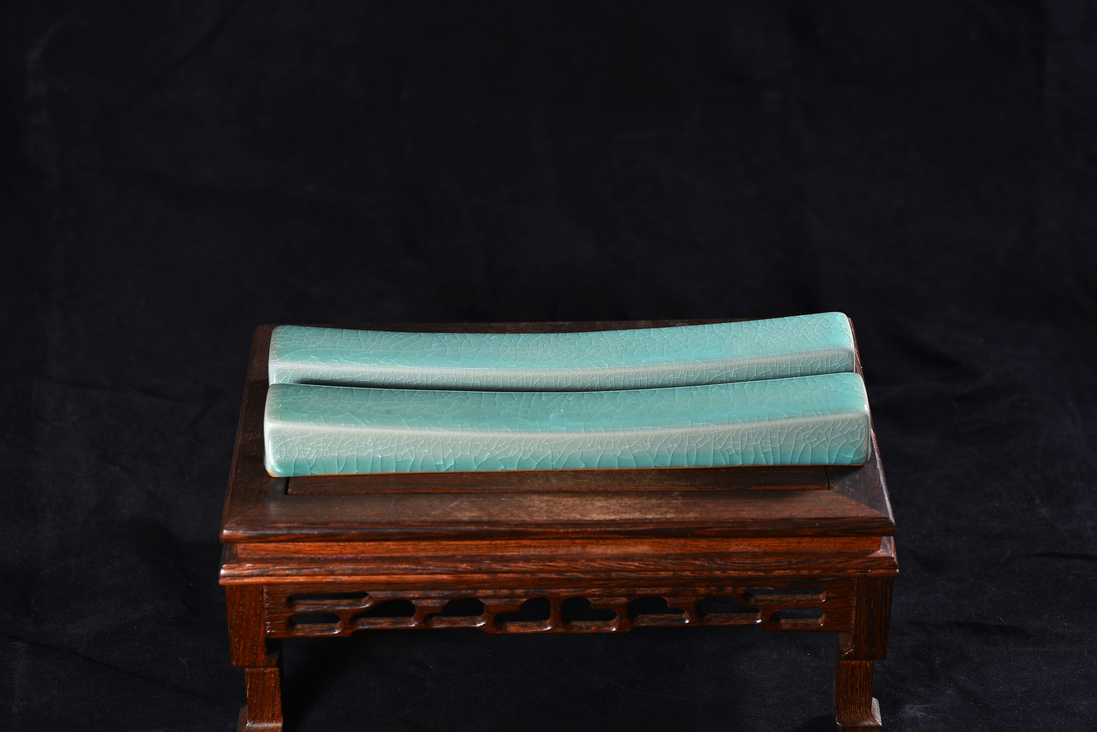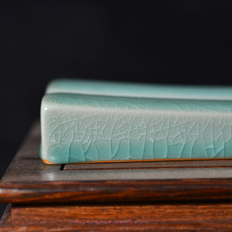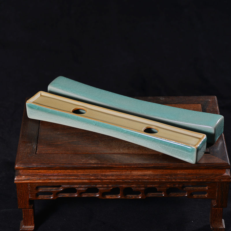 清凉寺仿古釉天青色 镇尺一对 长25.5里面 宽3.5厘米 高3厘米。全品无瑕疵 收藏使用佳品。 收藏使用佳品。清凉寺汝瓷是中国北宋时期的主要代表瓷之一,属于五大名窑之一。清凉寺汝瓷的历史可以追溯到北宋时期,当时的宋王朝为了满足宫廷的特殊需要,设立了汝官窑。这个窑场生产的汝瓷以其独特的美学风格和高*的制作工艺而闻名,被视为青瓷之典范。清凉寺汝官窑遗址是在上世纪被发现的,这一发现揭开了汝官窑消失的千古之谜。自1987年以来,河南省文物考古研究所对清凉寺汝窑遗址进行了多次发掘,发现了大量重要的烧造设施和汝窑瓷器标本。清凉寺汝瓷的艺术特色体现在其独特的制作工艺和美学风格上。它以其工艺精湛、造型秀美、釉面蕴润、高雅素净的丰韵而独具风采。汝瓷的制作工艺包括使用名贵玛瑙为釉,釉色独特,随光变幻,呈现出“雨过天晴云破处”“千峰碧波翠色来”的美妙效果。此外,汝瓷的胎体厚重,釉厚而声如磬。汝瓷的形状古朴大方,器表呈蝉翼纹细小开片,具有“梨皮、蟹爪、芝麻花”的特点。这些装饰手法使得汝瓷不仅美观而且富有变化,被世人称为“似玉、非玉、而胜玉”。