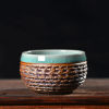 清凉寺仿古釉天青色 手工跳刀罗汉杯 直径8.2厘米 高5厘米 容量150毫升,全品无瑕疵 收藏使用佳品。 收藏使用佳品。清凉寺汝瓷是中国北宋时期的主要代表瓷之一,属于五大名窑之一。清凉寺汝瓷的历史可以追溯到北宋时期,当时的宋王朝为了满足宫廷的特殊需要,设立了汝官窑。这个窑场生产的汝瓷以其独特的美学风格和高*的制作工艺而闻名,被视为青瓷之典范。清凉寺汝官窑遗址是在上世纪被发现的,这一发现揭开了汝官窑消失的千古之谜。自1987年以来,河南省文物考古研究所对清凉寺汝窑遗址进行了多次发掘,发现了大量重要的烧造设施和汝窑瓷器标本。清凉寺汝瓷的艺术特色体现在其独特的制作工艺和美学风格上。它以其工艺精湛、造型秀美、釉面蕴润、高雅素净的丰韵而独具风采。汝瓷的制作工艺包括使用名贵玛瑙为釉,釉色独特,随光变幻,呈现出“雨过天晴云破处”“千峰碧波翠色来”的美妙效果。此外,汝瓷的胎体厚重,釉厚而声如磬。汝瓷的形状古朴大方,器表呈蝉翼纹细小开片,具有“梨皮、蟹爪、芝麻花”的特点。这些装饰手法使得汝瓷不仅美观而且富有变化,被世人称为“似玉、非玉、而胜玉”。