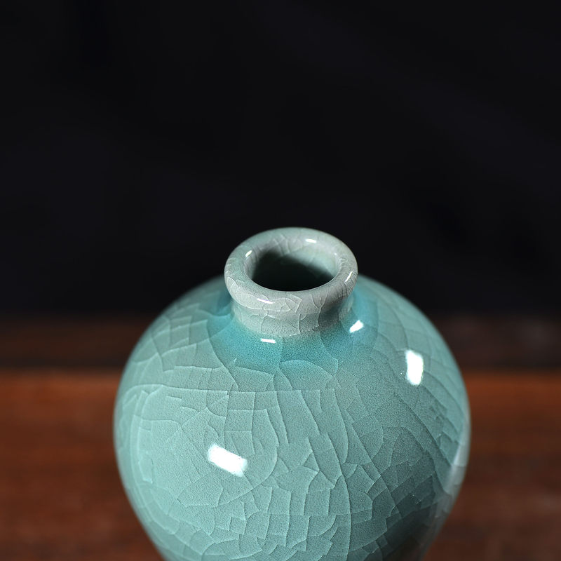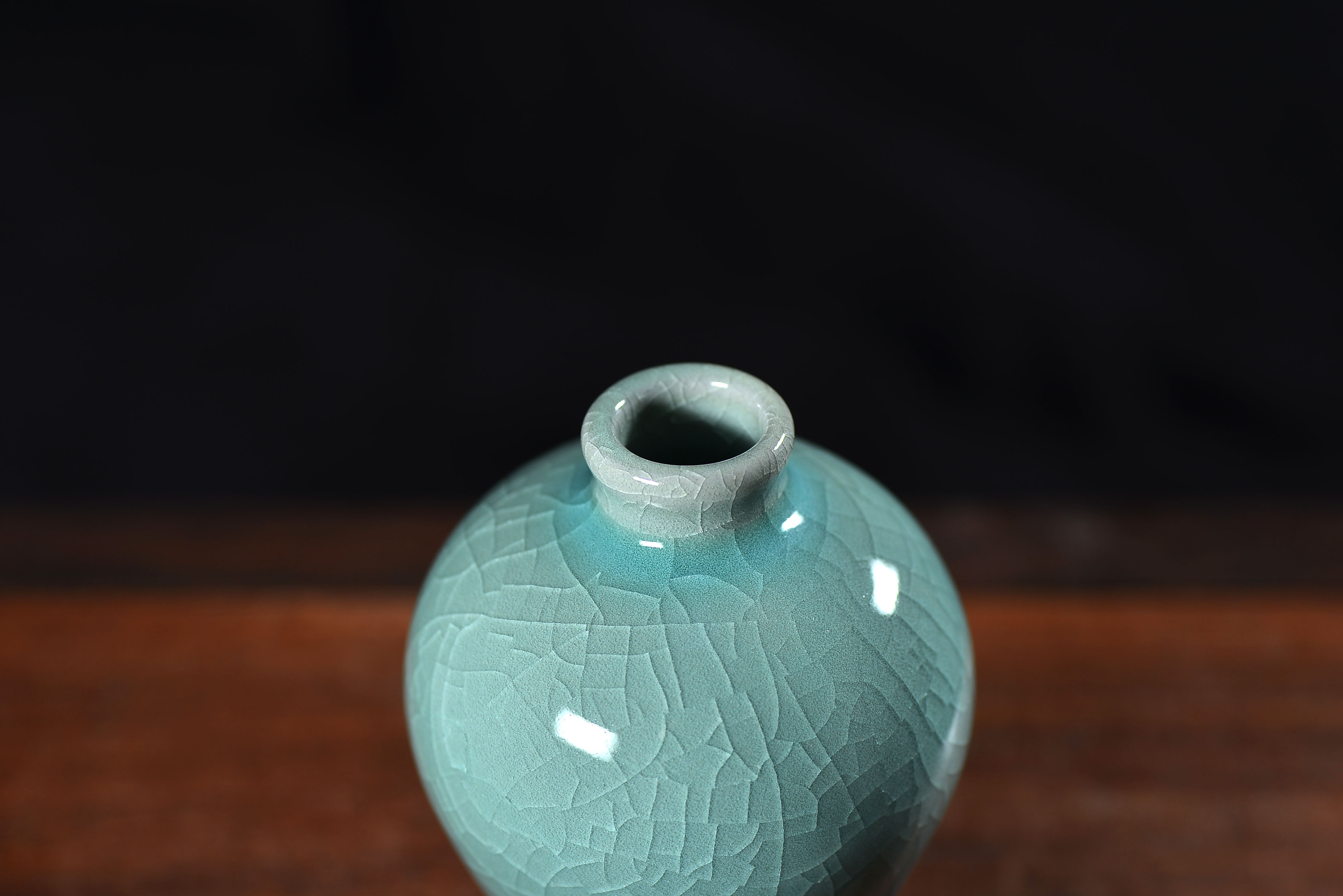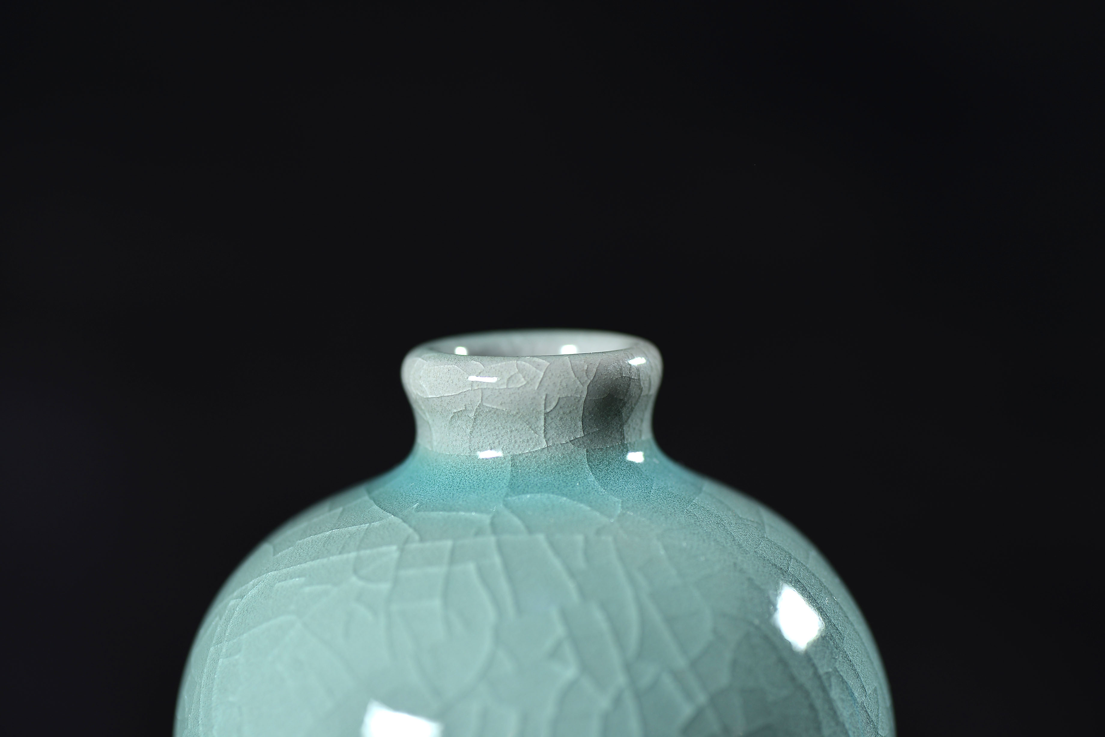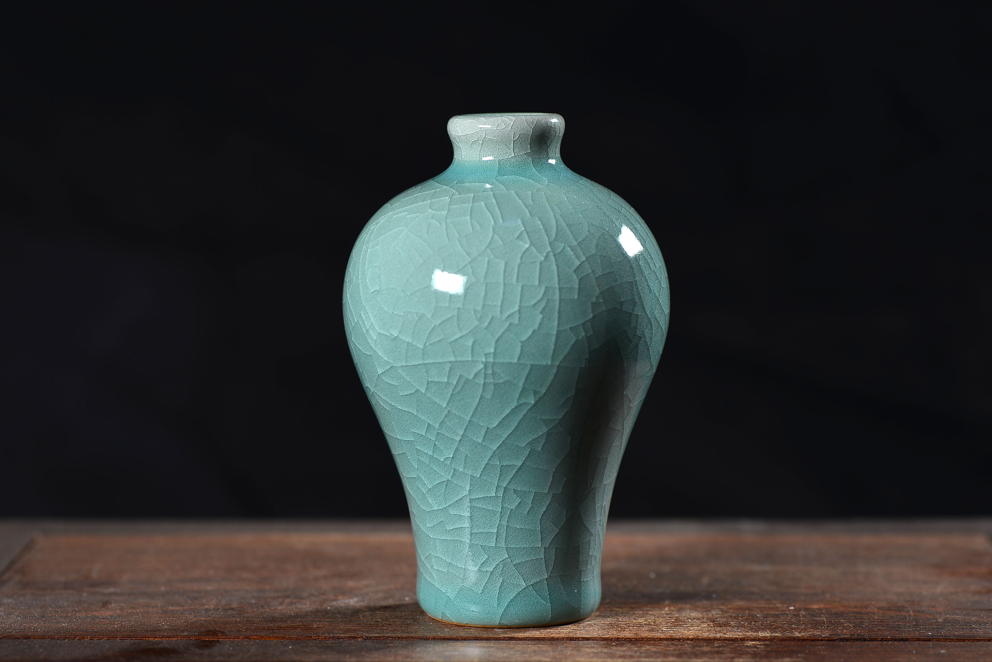 清凉寺仿古釉天青色 梅瓶酒瓶带盖子 容量150毫升,口径2.5厘米 高10.5厘米。全品无瑕疵 收藏使用佳品。 收藏使用佳品。清凉寺汝瓷是中国北宋时期的主要代表瓷之一,属于五大名窑之一。清凉寺汝瓷的历史可以追溯到北宋时期,当时的宋王朝为了满足宫廷的特殊需要,设立了汝官窑。这个窑场生产的汝瓷以其独特的美学风格和高*的制作工艺而闻名,被视为青瓷之典范。清凉寺汝官窑遗址是在上世纪被发现的,这一发现揭开了汝官窑消失的千古之谜。自1987年以来,河南省文物考古研究所对清凉寺汝窑遗址进行了多次发掘,发现了大量重要的烧造设施和汝窑瓷器标本。清凉寺汝瓷的艺术特色体现在其独特的制作工艺和美学风格上。它以其工艺精湛、造型秀美、釉面蕴润、高雅素净的丰韵而独具风采。汝瓷的制作工艺包括使用名贵玛瑙为釉,釉色独特,随光变幻,呈现出“雨过天晴云破处”“千峰碧波翠色来”的美妙效果。此外,汝瓷的胎体厚重,釉厚而声如磬。汝瓷的形状古朴大方,器表呈蝉翼纹细小开片,具有“梨皮、蟹爪、芝麻花”的特点。这些装饰手法使得汝瓷不仅美观而且富有变化,被世人称为“似玉、非玉、而胜玉”。