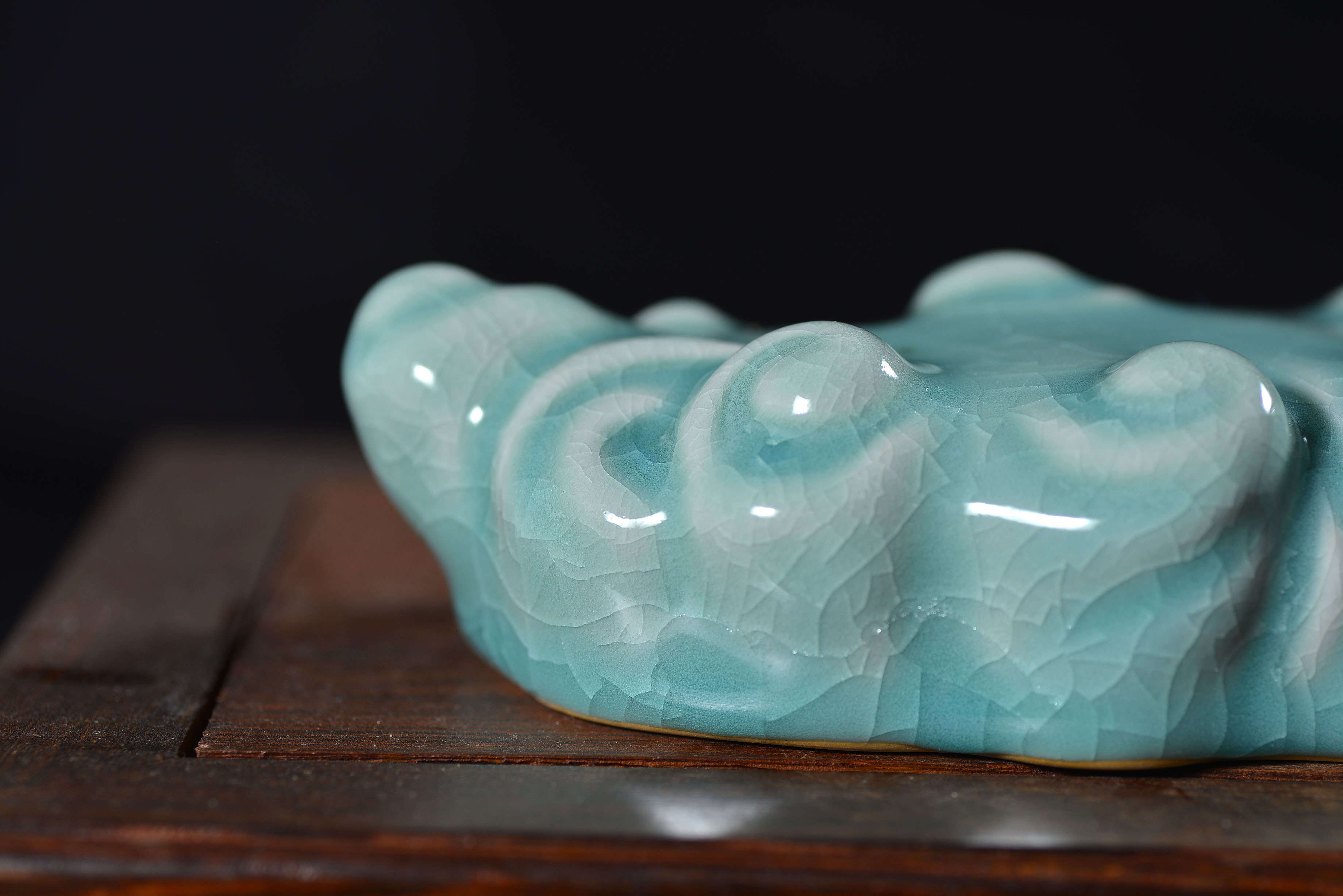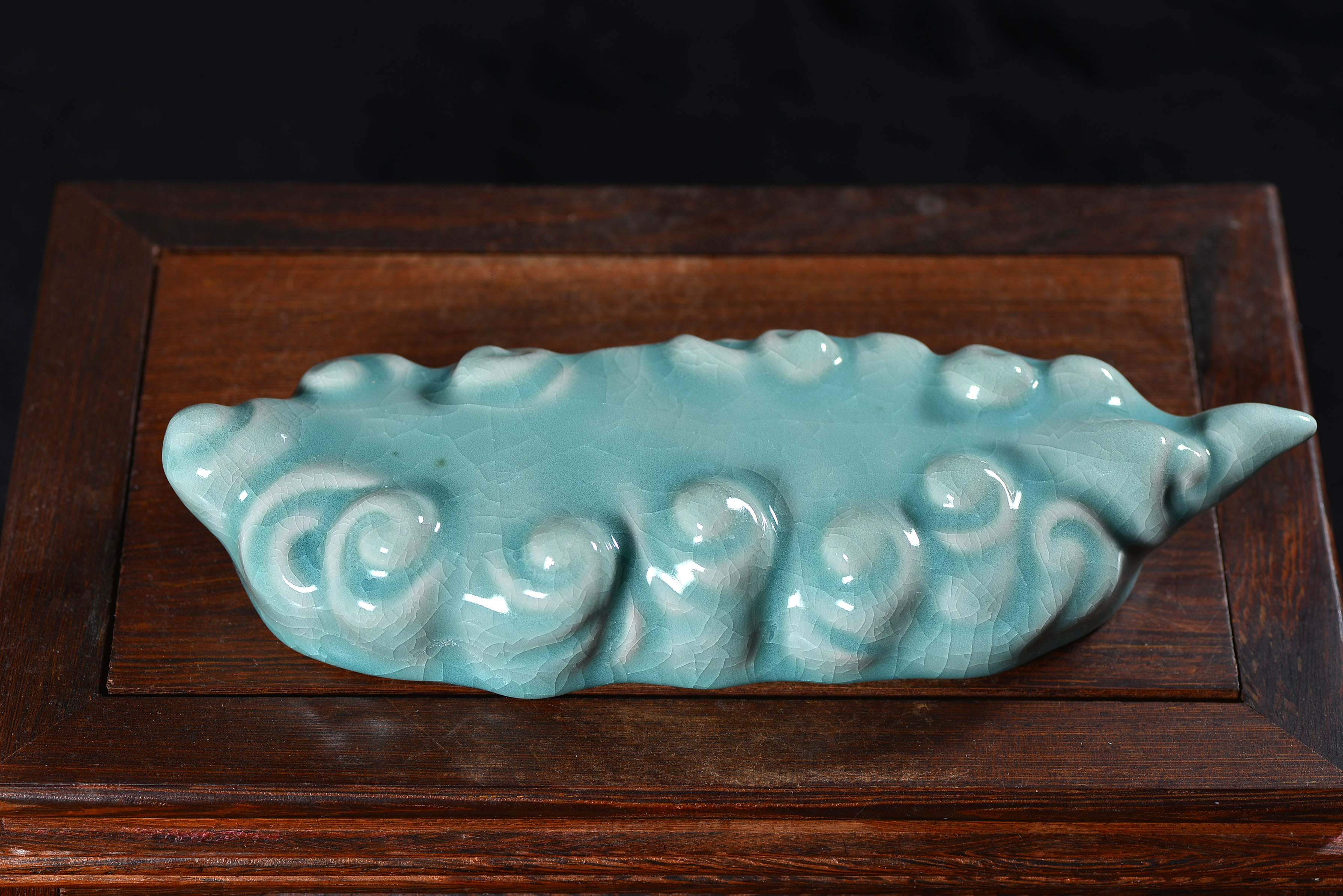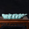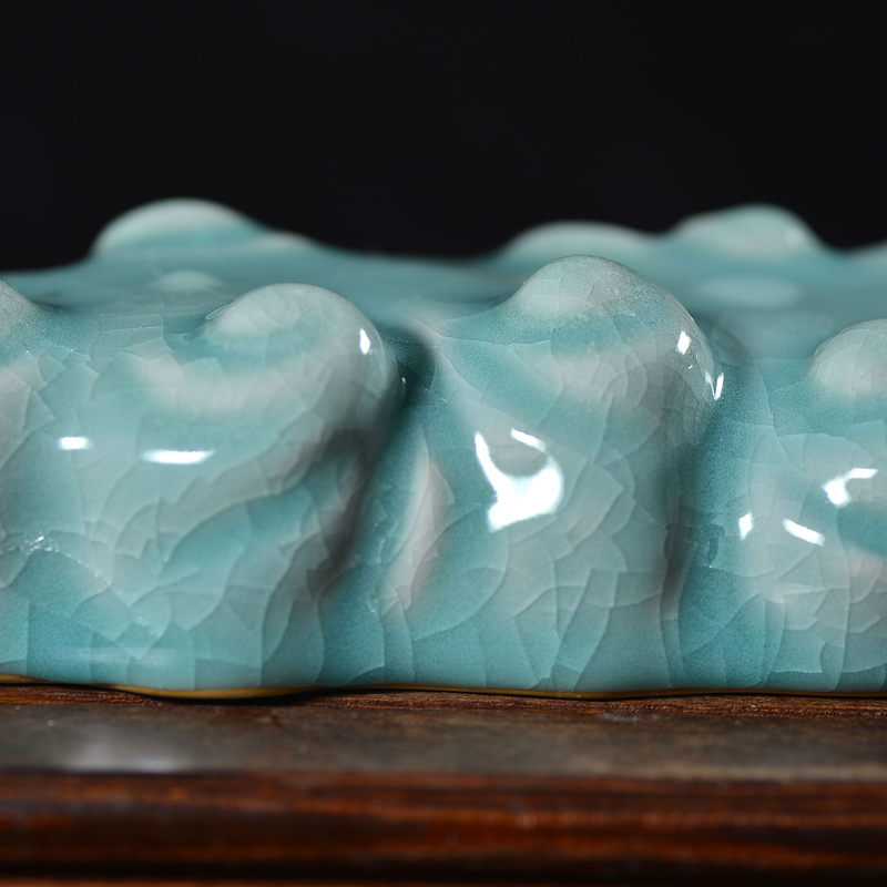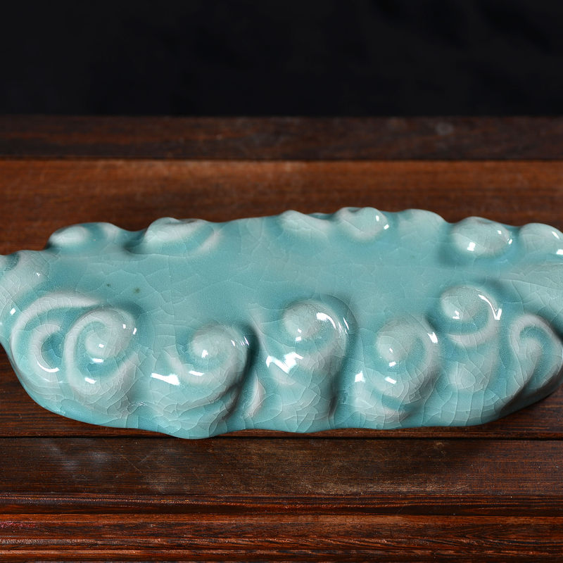 清凉寺仿古釉天青色 笔架 长23里面 宽7.5厘米 高4厘米。表面有轻微黑点,瑕疵品。全品无瑕疵 收藏使用佳品。 收藏使用佳品。清凉寺汝瓷是中国北宋时期的主要代表瓷之一,属于五大名窑之一。清凉寺汝瓷的历史可以追溯到北宋时期,当时的宋王朝为了满足宫廷的特殊需要,设立了汝官窑。这个窑场生产的汝瓷以其独特的美学风格和高*的制作工艺而闻名,被视为青瓷之典范。清凉寺汝官窑遗址是在上世纪被发现的,这一发现揭开了汝官窑消失的千古之谜。自1987年以来,河南省文物考古研究所对清凉寺汝窑遗址进行了多次发掘,发现了大量重要的烧造设施和汝窑瓷器标本。清凉寺汝瓷的艺术特色体现在其独特的制作工艺和美学风格上。它以其工艺精湛、造型秀美、釉面蕴润、高雅素净的丰韵而独具风采。汝瓷的制作工艺包括使用名贵玛瑙为釉,釉色独特,随光变幻,呈现出“雨过天晴云破处”“千峰碧波翠色来”的美妙效果。此外,汝瓷的胎体厚重,釉厚而声如磬。汝瓷的形状古朴大方,器表呈蝉翼纹细小开片,具有“梨皮、蟹爪、芝麻花”的特点。这些装饰手法使得汝瓷不仅美观而且富有变化,被世人称为“似玉、非玉、而胜玉”。