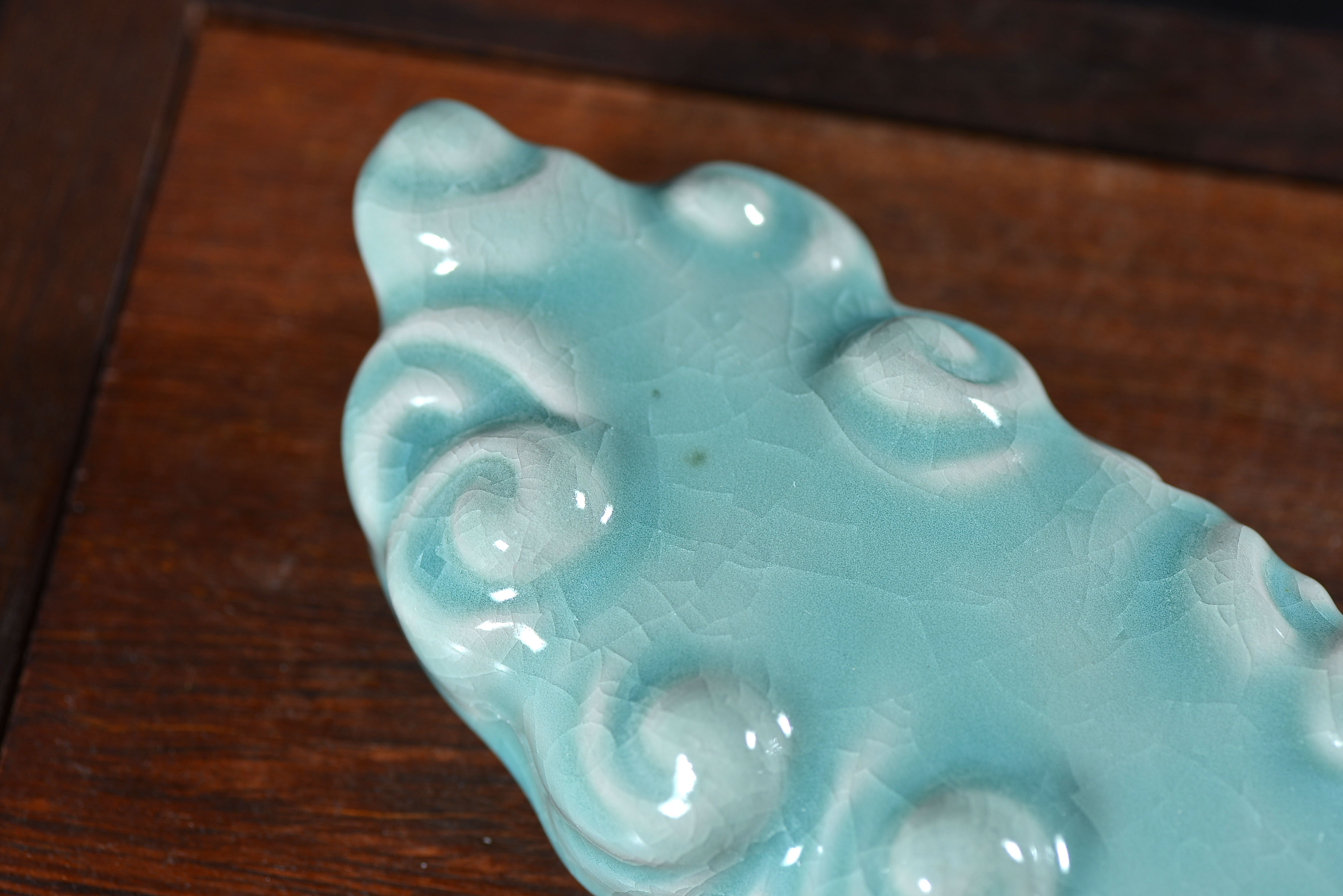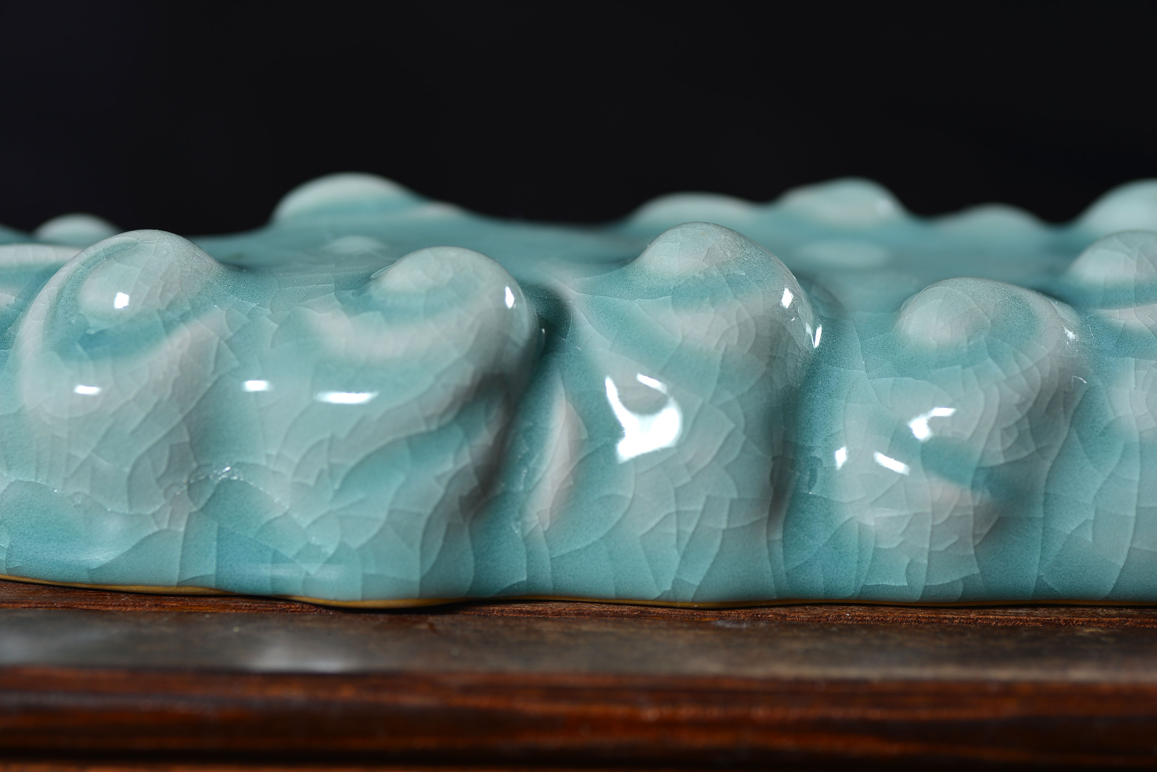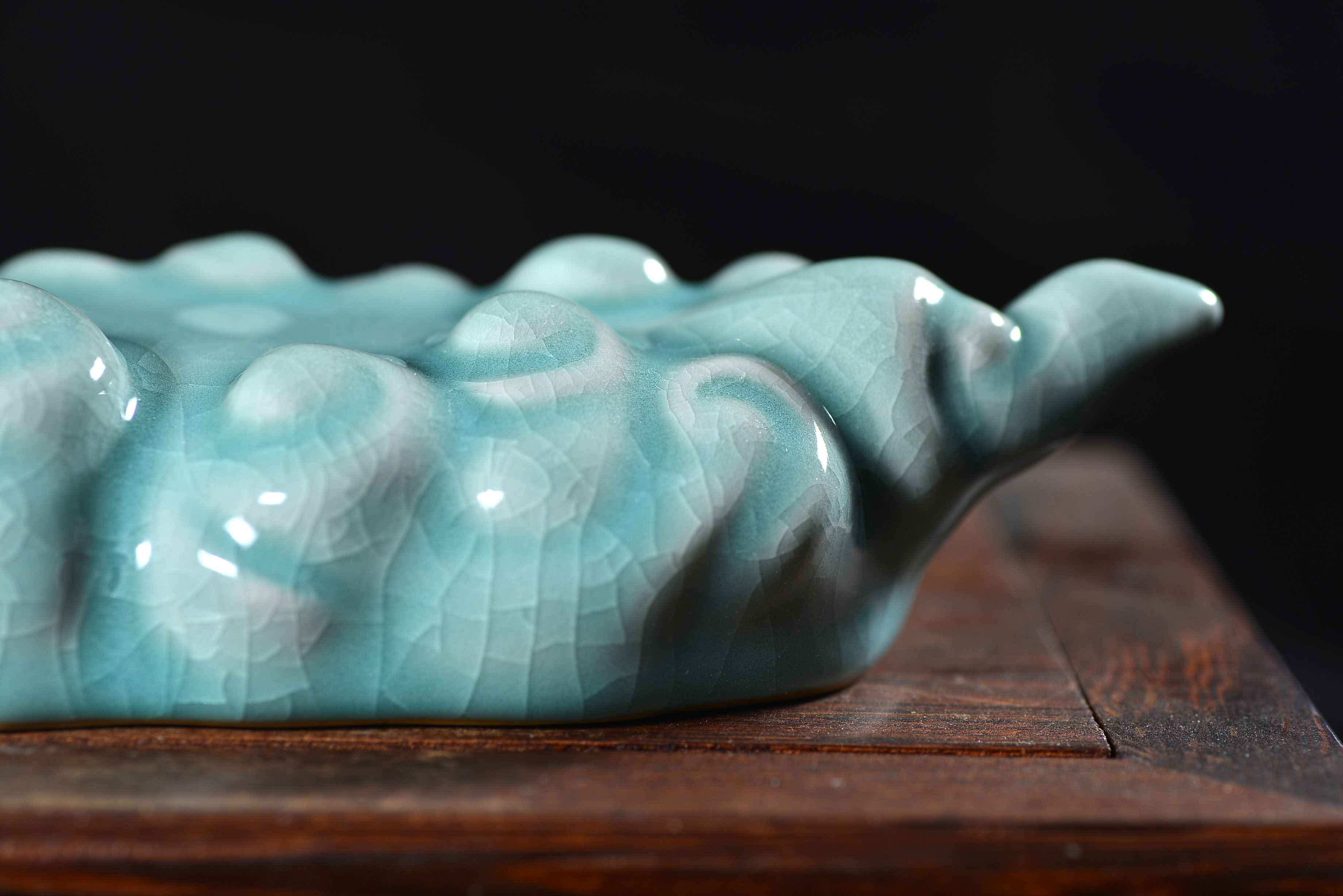 清凉寺仿古釉天青色 笔架 长23里面 宽7.5厘米 高4厘米。表面有轻微黑点,瑕疵品。全品无瑕疵 收藏使用佳品。 收藏使用佳品。清凉寺汝瓷是中国北宋时期的主要代表瓷之一,属于五大名窑之一。清凉寺汝瓷的历史可以追溯到北宋时期,当时的宋王朝为了满足宫廷的特殊需要,设立了汝官窑。这个窑场生产的汝瓷以其独特的美学风格和高*的制作工艺而闻名,被视为青瓷之典范。清凉寺汝官窑遗址是在上世纪被发现的,这一发现揭开了汝官窑消失的千古之谜。自1987年以来,河南省文物考古研究所对清凉寺汝窑遗址进行了多次发掘,发现了大量重要的烧造设施和汝窑瓷器标本。清凉寺汝瓷的艺术特色体现在其独特的制作工艺和美学风格上。它以其工艺精湛、造型秀美、釉面蕴润、高雅素净的丰韵而独具风采。汝瓷的制作工艺包括使用名贵玛瑙为釉,釉色独特,随光变幻,呈现出“雨过天晴云破处”“千峰碧波翠色来”的美妙效果。此外,汝瓷的胎体厚重,釉厚而声如磬。汝瓷的形状古朴大方,器表呈蝉翼纹细小开片,具有“梨皮、蟹爪、芝麻花”的特点。这些装饰手法使得汝瓷不仅美观而且富有变化,被世人称为“似玉、非玉、而胜玉”。