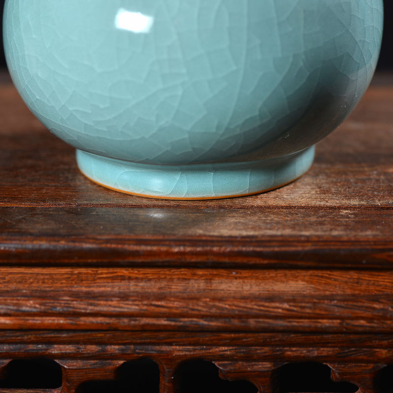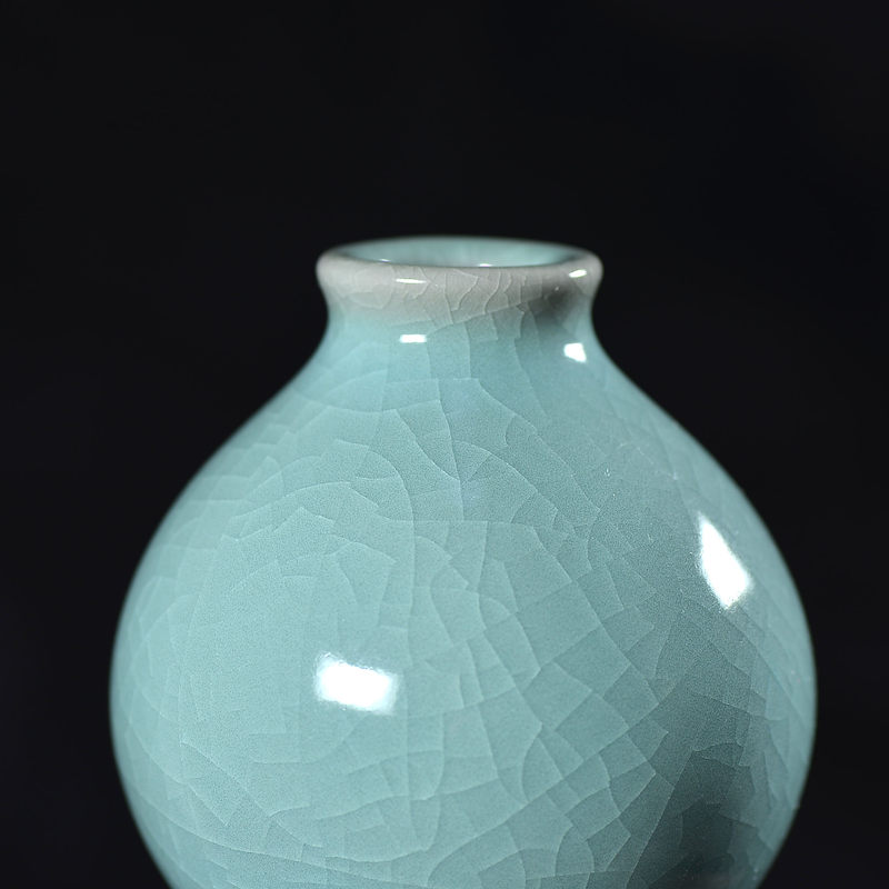 清凉寺仿古釉天青色 葫芦酒瓶 容量620毫升 口径3厘米 高27厘米 全品无瑕疵 收藏使用佳品。 收藏使用佳品。清凉寺汝瓷是中国北宋时期的主要代表瓷之一,属于五大名窑之一。清凉寺汝瓷的历史可以追溯到北宋时期,当时的宋王朝为了满足宫廷的特殊需要,设立了汝官窑。这个窑场生产的汝瓷以其独特的美学风格和高*的制作工艺而闻名,被视为青瓷之典范。清凉寺汝官窑遗址是在上世纪被发现的,这一发现揭开了汝官窑消失的千古之谜。自1987年以来,河南省文物考古研究所对清凉寺汝窑遗址进行了多次发掘,发现了大量重要的烧造设施和汝窑瓷器标本。清凉寺汝瓷的艺术特色体现在其独特的制作工艺和美学风格上。它以其工艺精湛、造型秀美、釉面蕴润、高雅素净的丰韵而独具风采。汝瓷的制作工艺包括使用名贵玛瑙为釉,釉色独特,随光变幻,呈现出“雨过天晴云破处”“千峰碧波翠色来”的美妙效果。此外,汝瓷的胎体厚重,釉厚而声如磬。汝瓷的形状古朴大方,器表呈蝉翼纹细小开片,具有“梨皮、蟹爪、芝麻花”的特点。这些装饰手法使得汝瓷不仅美观而且富有变化,被世人称为“似玉、非玉、而胜玉”。