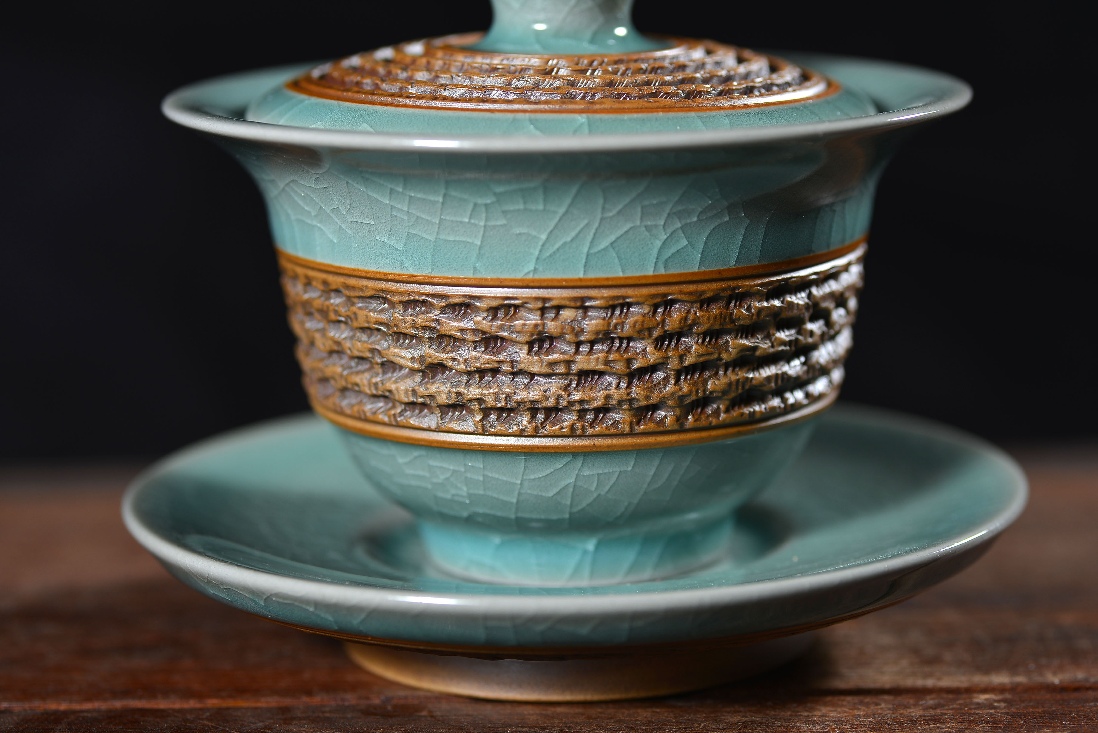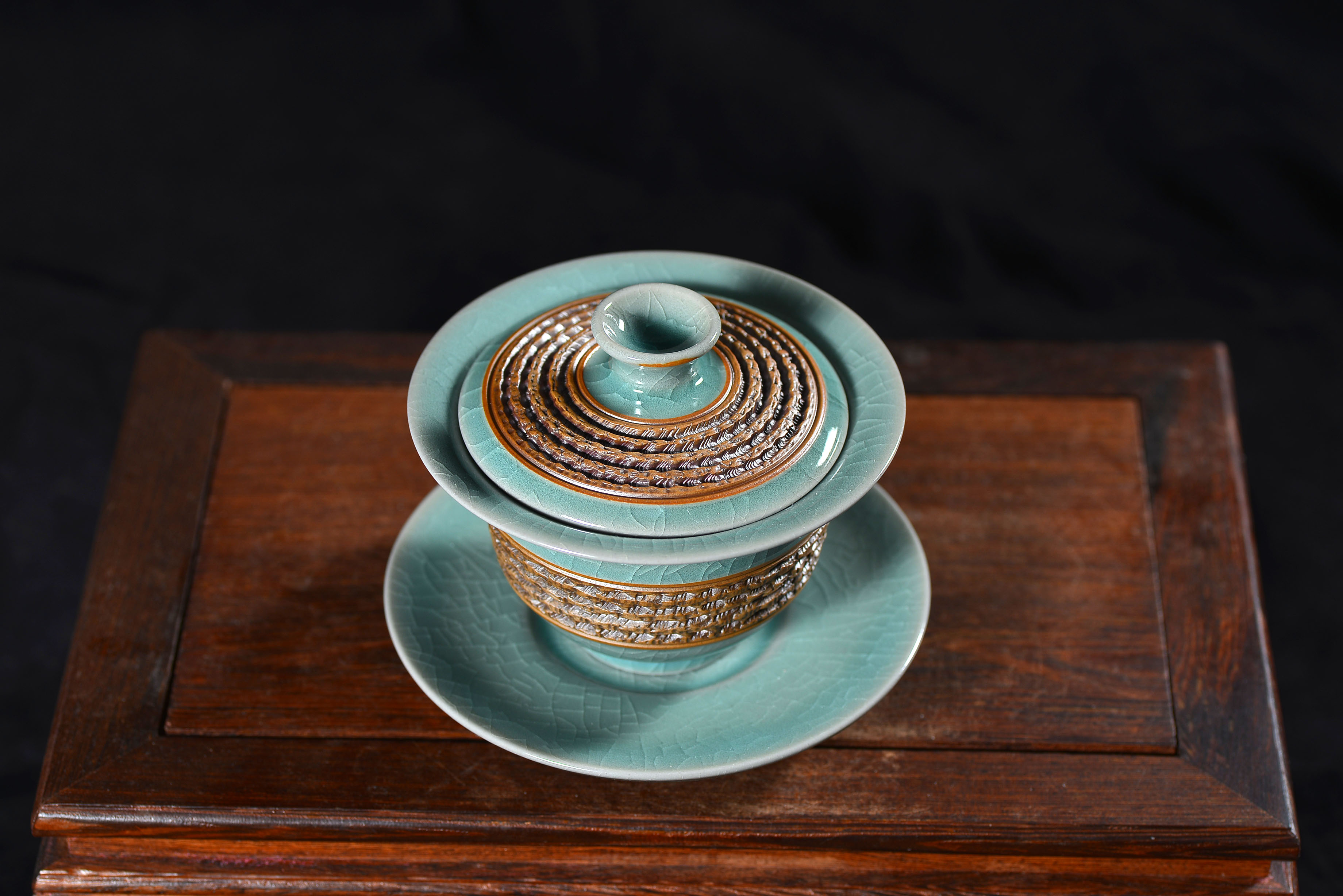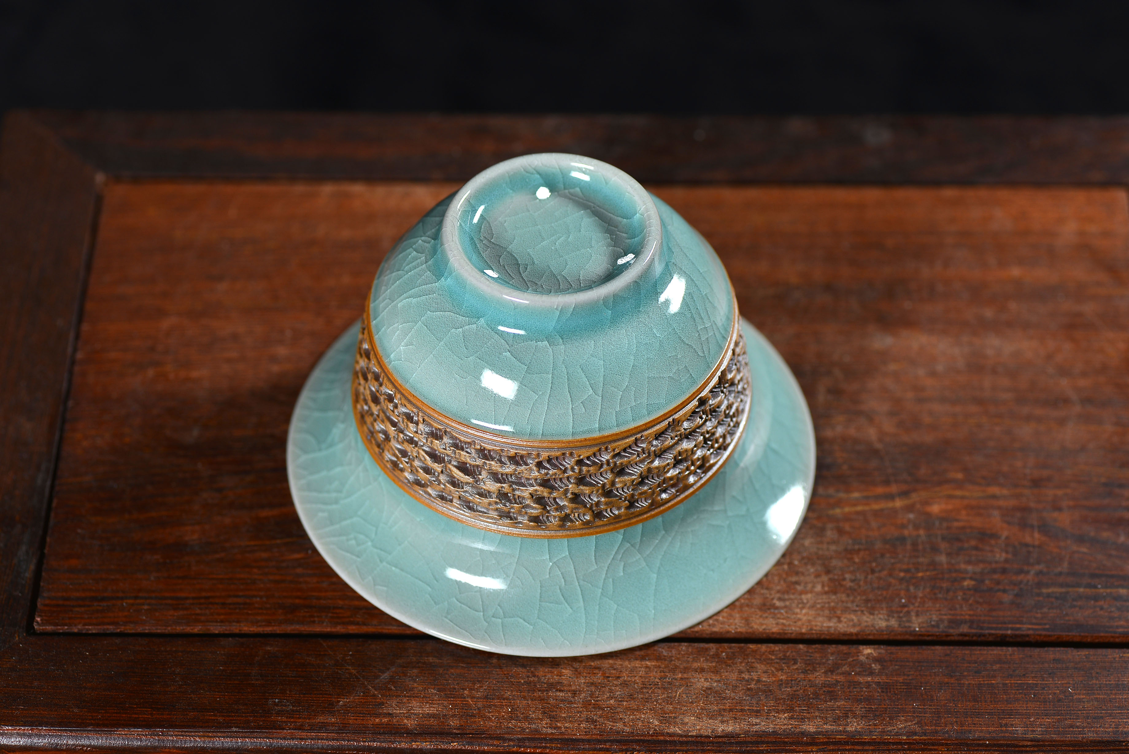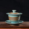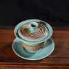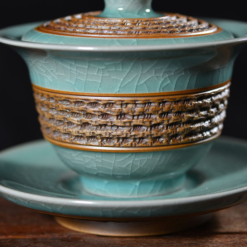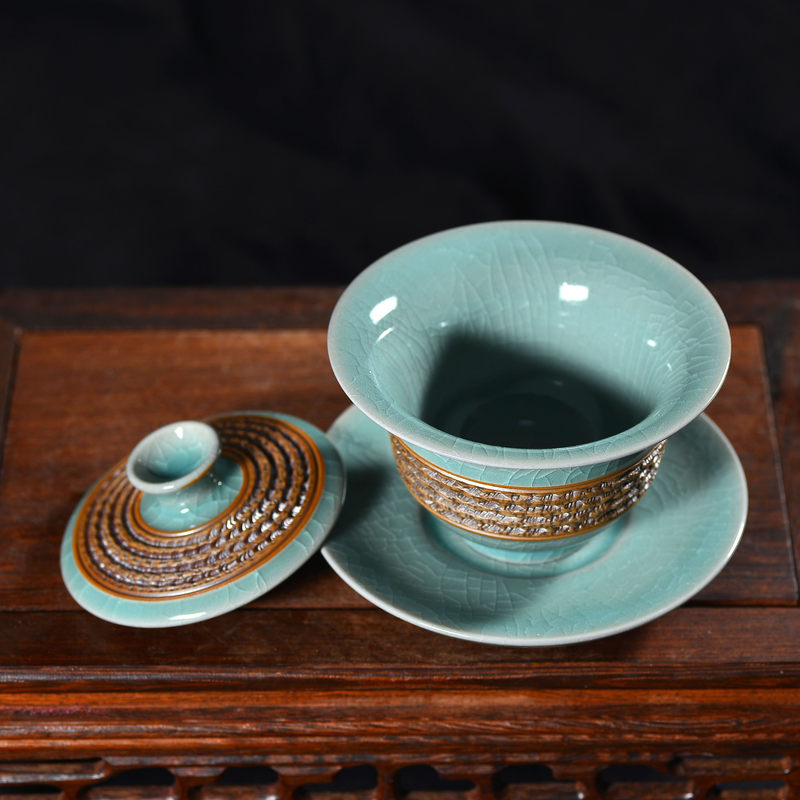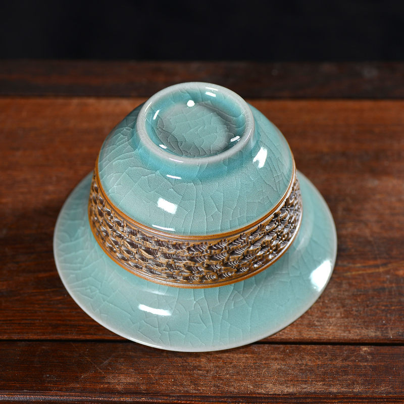 清凉寺仿古釉天青色 手工跳刀三才盖碗 直径12厘米 高10厘米 容量180毫升。采用清凉寺村附近山上的黏土,矿石,等多种天然材质,经过精心烧制而成。清凉寺汝瓷是中国北宋时期的主要代表瓷之一,属于五大名窑之一。清凉寺汝瓷的历史可以追溯到北宋时期,当时的宋王朝为了满足宫廷的特殊需要,设立了汝官窑。这个窑场生产的汝瓷以其独特的美学风格和高*的制作工艺而闻名,被视为青瓷之典范。清凉寺汝官窑遗址是在上世纪被发现的,这一发现揭开了汝官窑消失的千古之谜。自1987年以来,河南省文物考古研究所对清凉寺汝窑遗址进行了多次发掘,发现了大量重要的烧造设施和汝窑瓷器标本。清凉寺汝瓷的艺术特色体现在其独特的制作工艺和美学风格上。它以其工艺精湛、造型秀美、釉面蕴润、高雅素净的丰韵而独具风采。汝瓷的制作工艺包括使用名贵玛瑙为釉,釉色独特,随光变幻,呈现出“雨过天晴云破处”“千峰碧波翠色来”的美妙效果。此外,汝瓷的胎体厚重,釉厚而声如磬。汝瓷的形状古朴大方,器表呈蝉翼纹细小开片,具有“梨皮、蟹爪、芝麻花”的特点。这些装饰手法使得汝瓷不仅美观而且富有变化,被世人称为“似玉、非玉、而胜玉”。