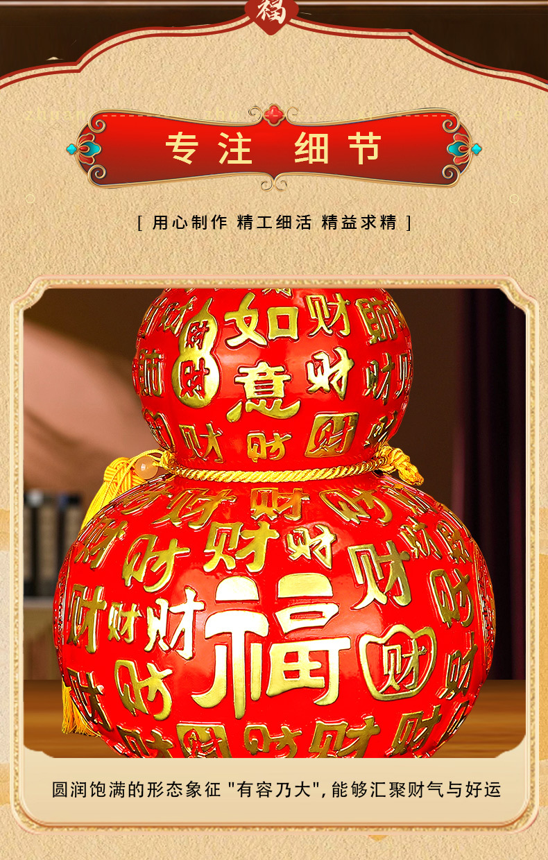 百财葫芦摆件通常用于家居装饰或作为礼品,葫芦‌:谐音“福禄”,象征着福气与禄位,寓意福禄双全、生活美满,“百财”,代表财源广进、富贵吉祥,寓意“福禄百财”,寄托了人们对福气、禄运与财富的美好期盼,细节刻画生动细腻, 纹理清晰、形态饱满,‌家居装饰‌:可摆放于客厅电视柜、玄关、书房桌面或酒柜等处,提升空间的艺术品味与吉祥氛围。办公场所‌:置于办公桌或书架,寓意事业顺利、财源广进。