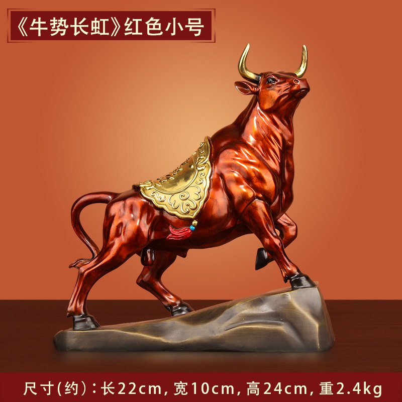 《牛势长虹》。奋发图强牛气冲天-牛是财富和力量的象征,牛擅长耕种任劳任怨是勤劳的代表,所以牛寓意大获丰收、五谷丰登,风调雨顺牛也象征证券市场行情可以“牛势”发展,牛角是力量的象征奋勇前进,不屈不挠,线条流畅,灵动有力背部招福图案,寓意旺运旺市,旺市如虹,国家标准黄铜材质制作,千锤百炼手工打磨,高温热着色技术,呈现丰富色彩亮丽,匠心设计,感受传统艺术文化魅力手工锻造。