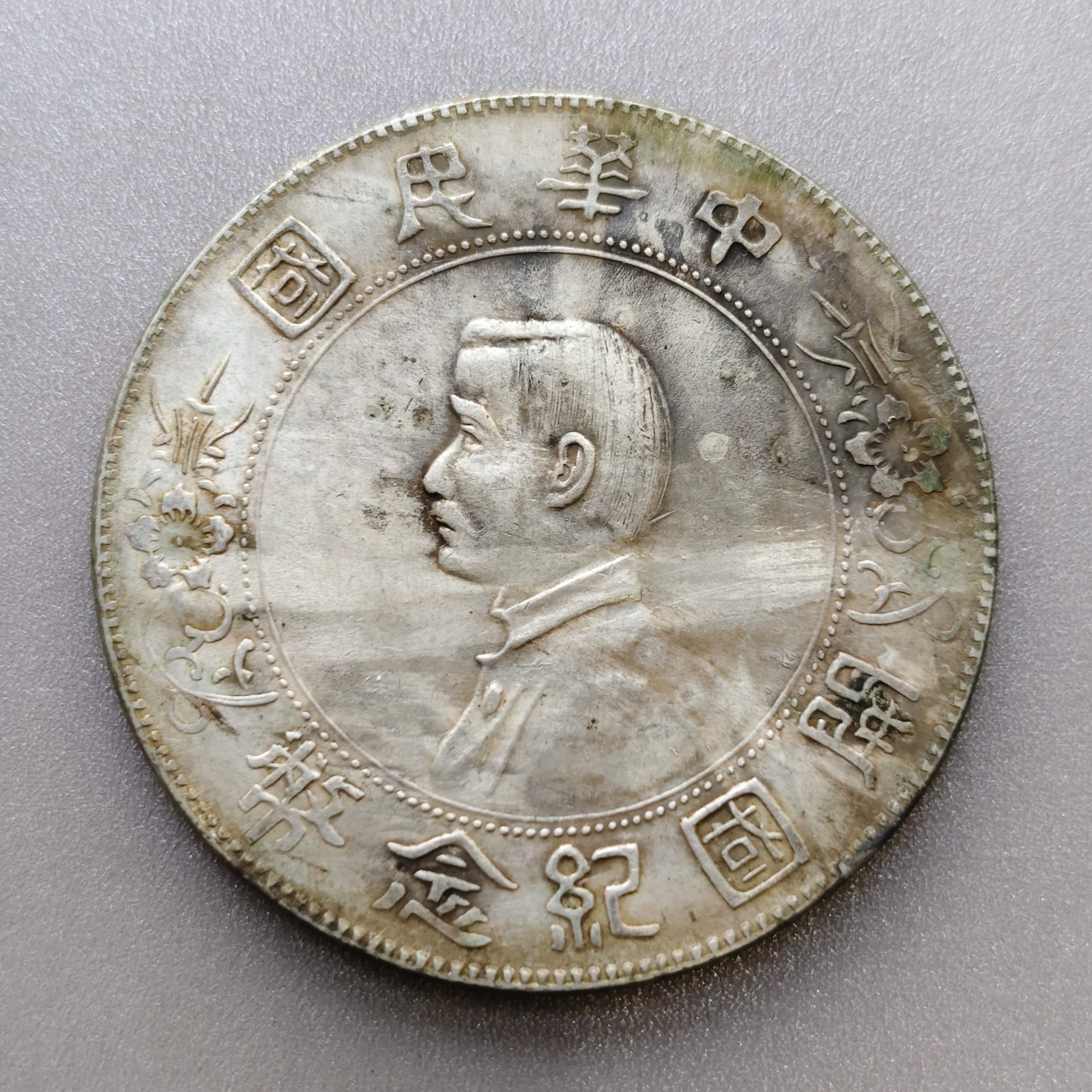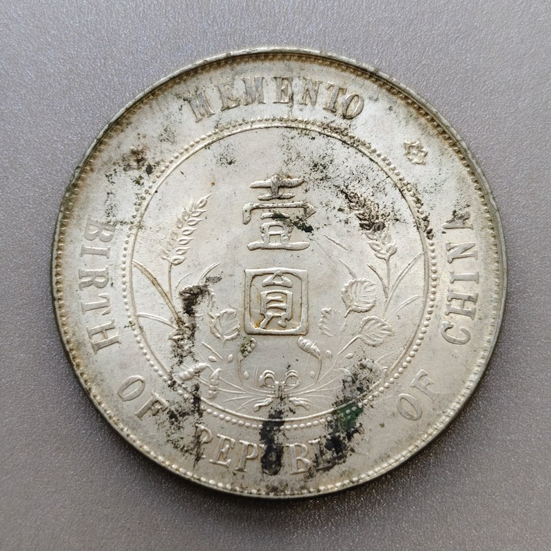 图录号017 中华民国孙中山开国纪念壹圆银币 质地:银 质量:26.8g 尺寸:38.8x38.8x2.7mm 中华民国孙中山开国纪念银币,银色纯正,正面传世压箱底水润包浆,背面带光,品相状态完美。百年历史,值得收藏。银价上升,潜力巨大。