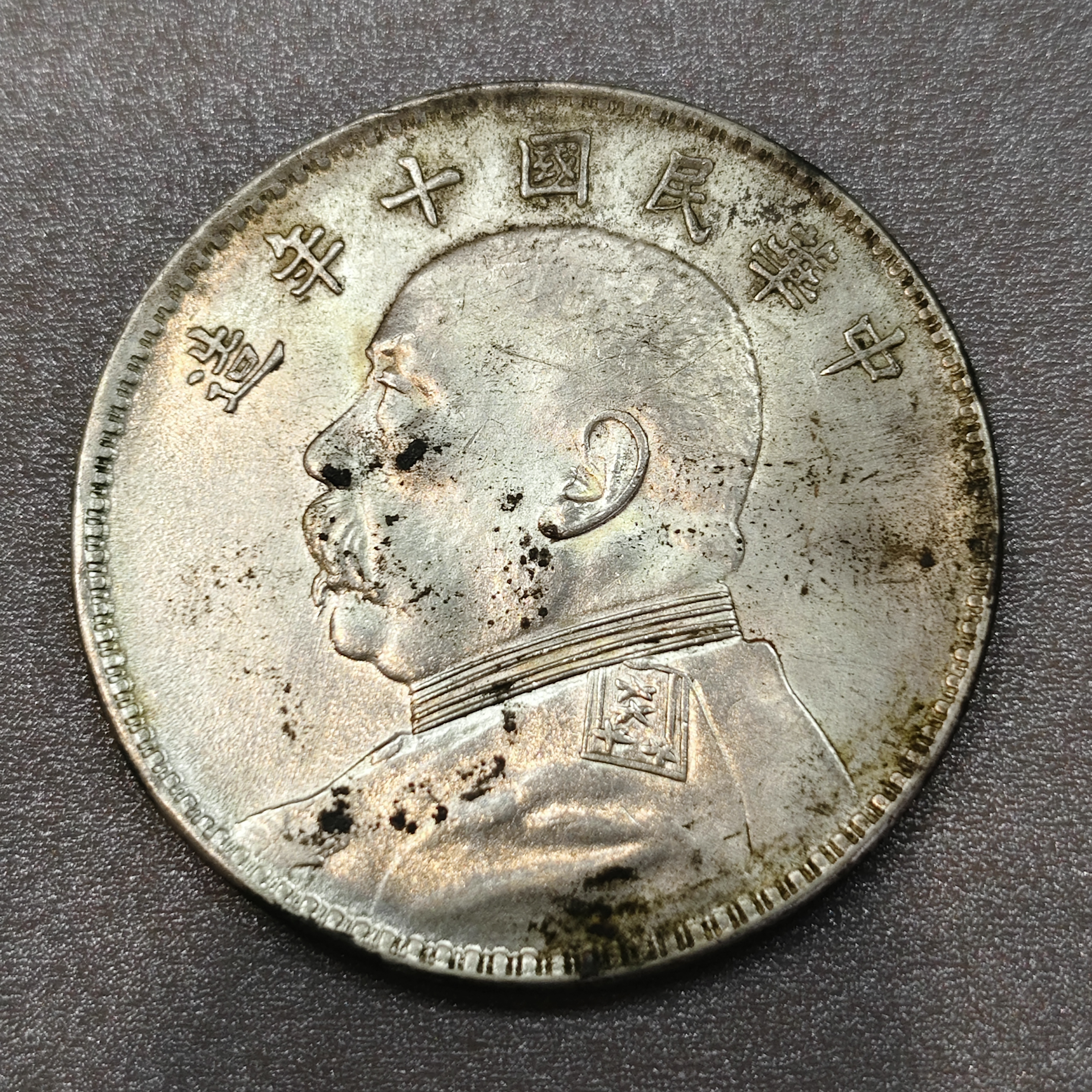 图录号018 民国十年袁世凯壹圆银币 质地:银 质量:27.0g 尺寸:38.9x38.9x2.6mm 民国十年袁世凯银币,银色纯正,压力足,几乎未磨损状态,带车轮光极美品,热门品种,潜力巨大。