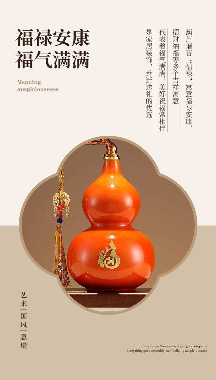 在中国传统文化中,葫芦一直被视为吉祥的象征。从上古神话中的"葫芦生人"传说,到八仙之一铁拐李的法器,再到民间"悬壶济世"的美谈,葫芦承载着中华民族对美好生活的向往,葫芦谐音"福禄",自古以来就被视为招财纳福的宝物,又承载着对美好生活的永恒祝愿。自古以来便是吉祥的象征,形态圆润饱满,两球相接,寓意着和谐美满、团团圆圆。