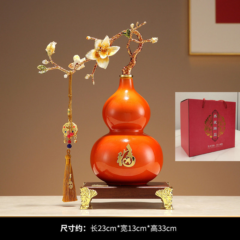 兰花橙色葫芦摆件