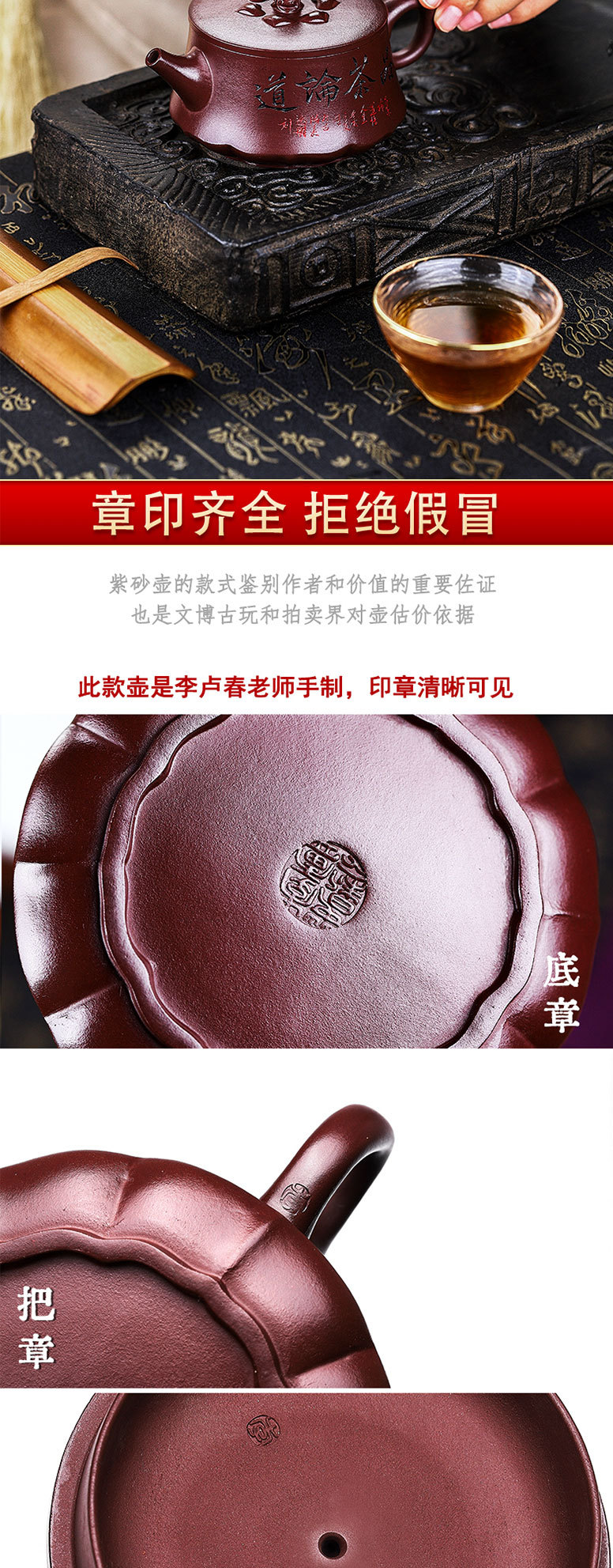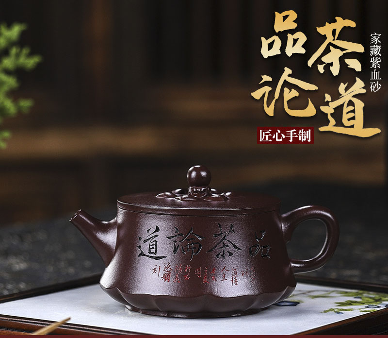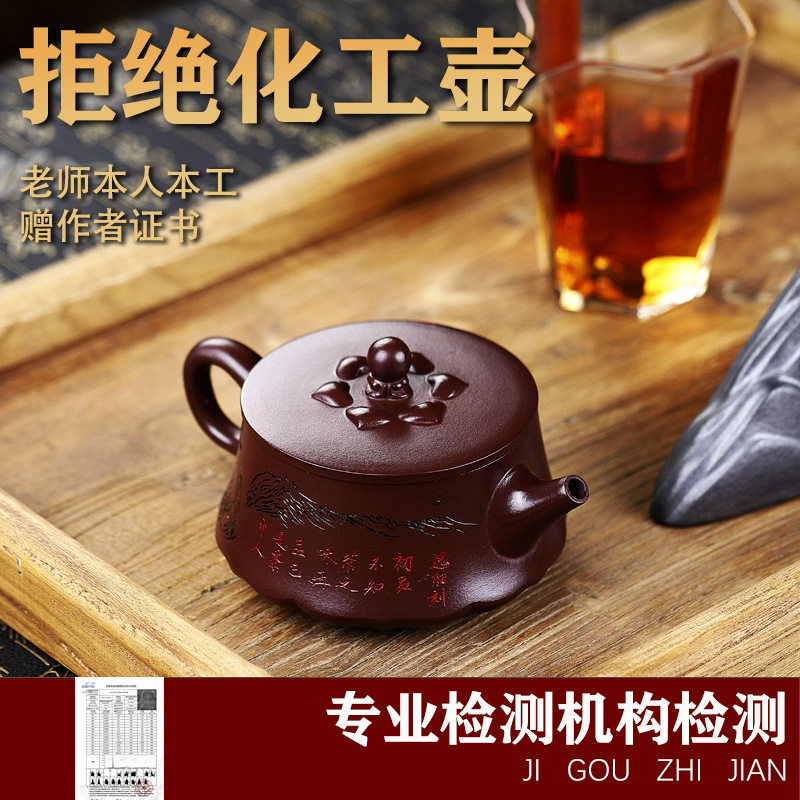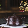 宜兴手工紫砂壶,家藏紫血砂泡茶更香,好泥料 透气好 易泡养,一壶百搭 适茶广泛,宽口扁腹,使用佳器。背面手工精刻人物表情细腻丰富,生动形象刀法自然流畅,功力之深,可见一斑,壶扭考究工艺,壶扭为点晴之笔传统莲花工艺,过渡自然,凸显气质,紫砂陶刻,以刀代笔,将中国传统书画与紫砂融为一体神韵怡然,很少有人肯费功夫做这么一个壶扭了。值得收藏的紫砂壶。