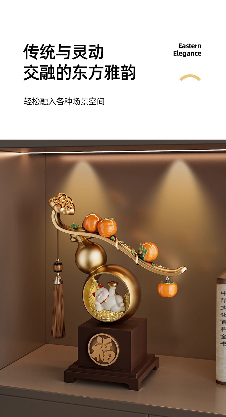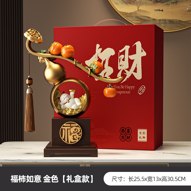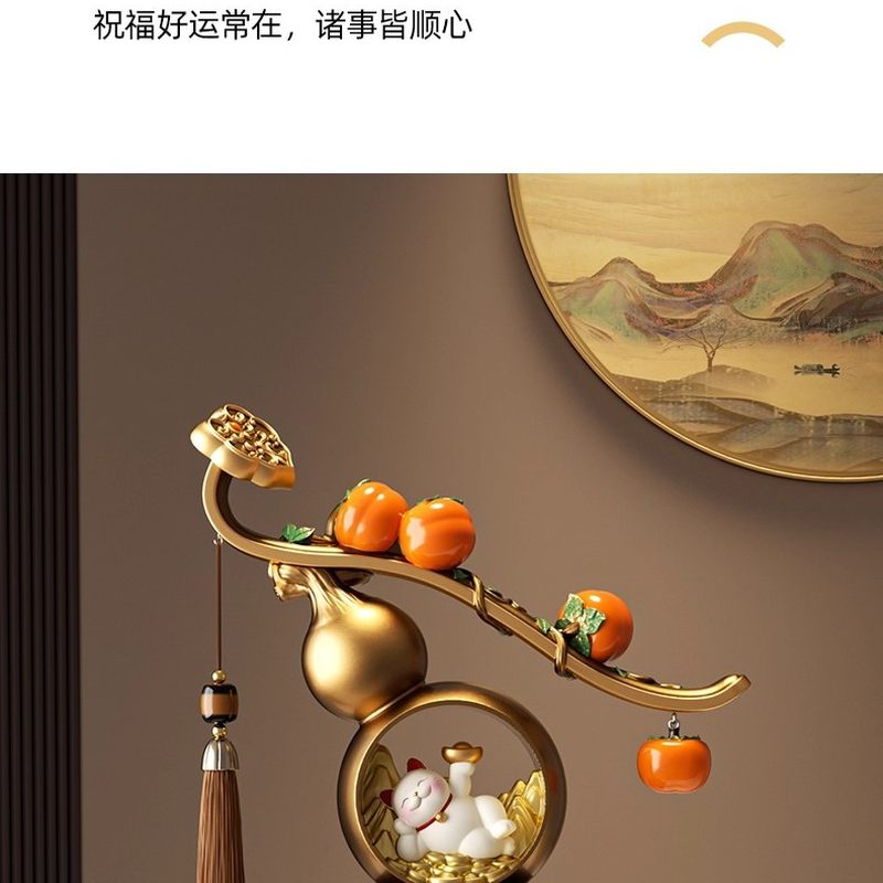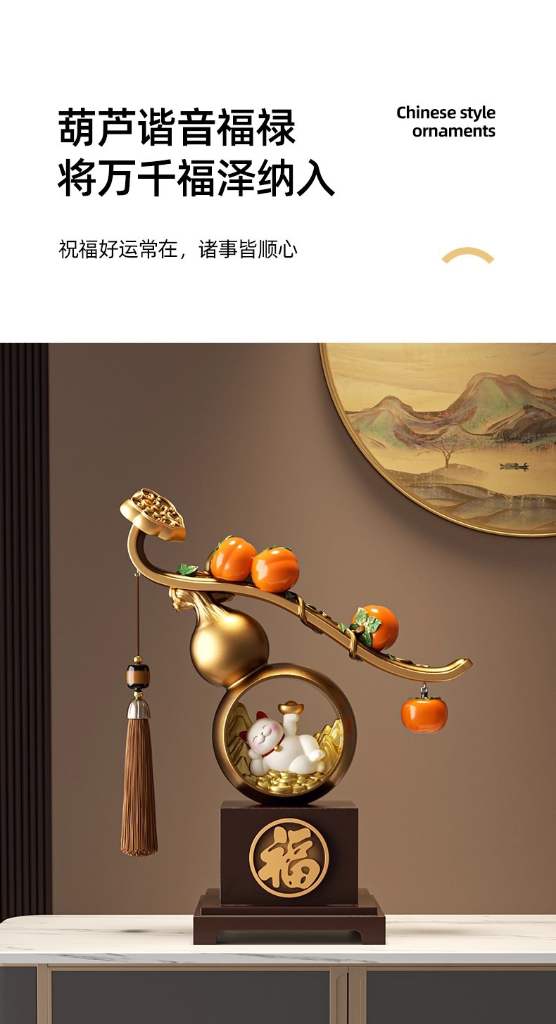 新中式招财猫柿柿如意葫芦摆件,葫芦谐音福禄将万千福泽纳入,祝福好运常在,诸事皆顺心,葫芦谐音福禄将万千福泽纳入,祝福好运常在,诸事皆顺心,传统与灵动交融的东方雅韵,轻松融入各种场景空间,福猫守安康金山永辉煌,福猫背靠金山,寓意福猫守安康,金山伴夕阳,环保树脂材质,手工上色,细节满满,乔迁/开业送礼,送挚友、送亲友,非常推荐。