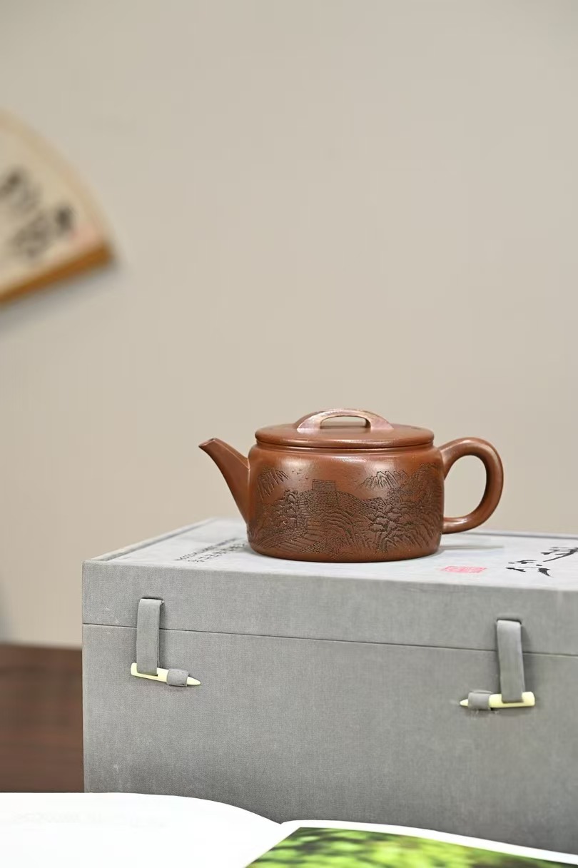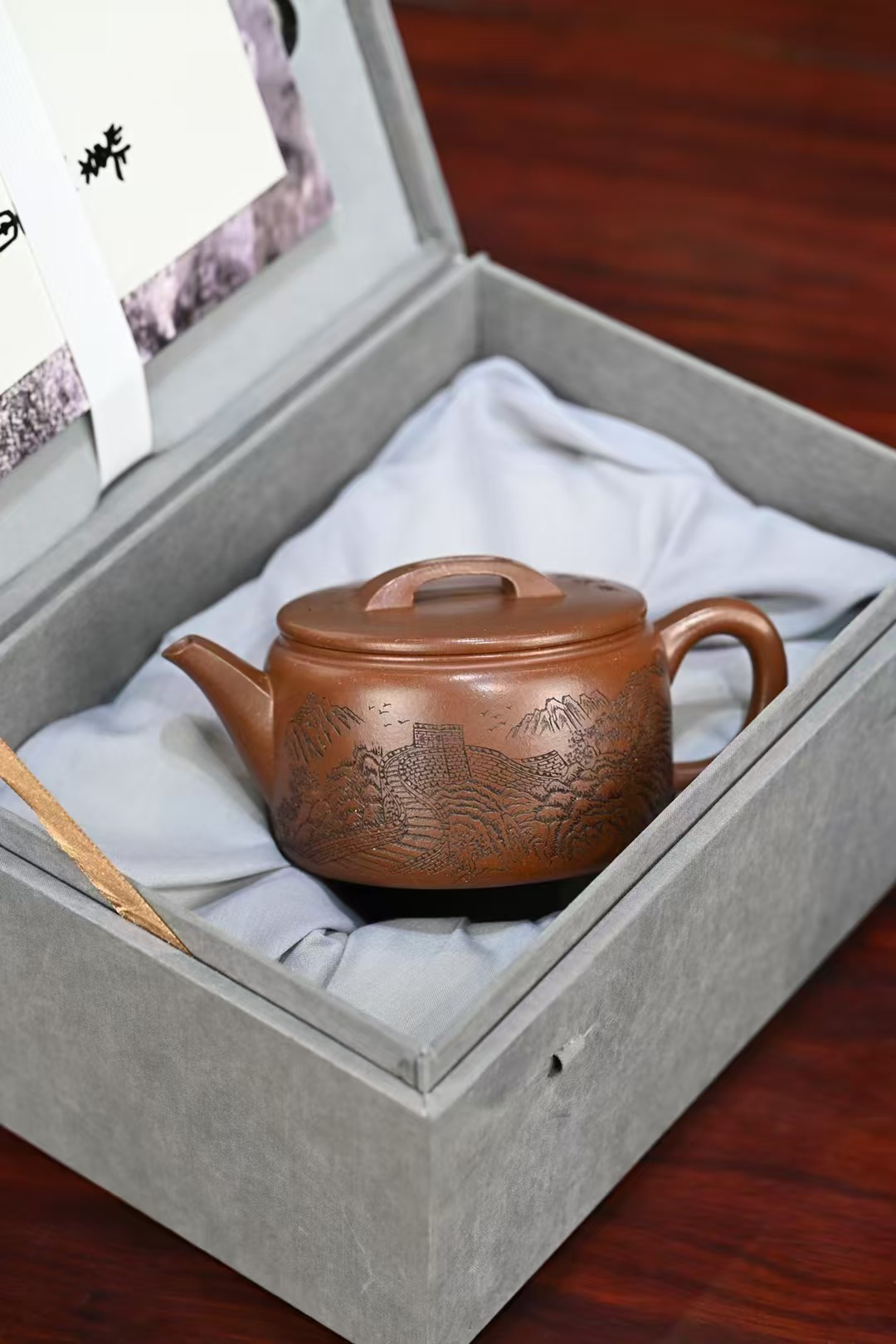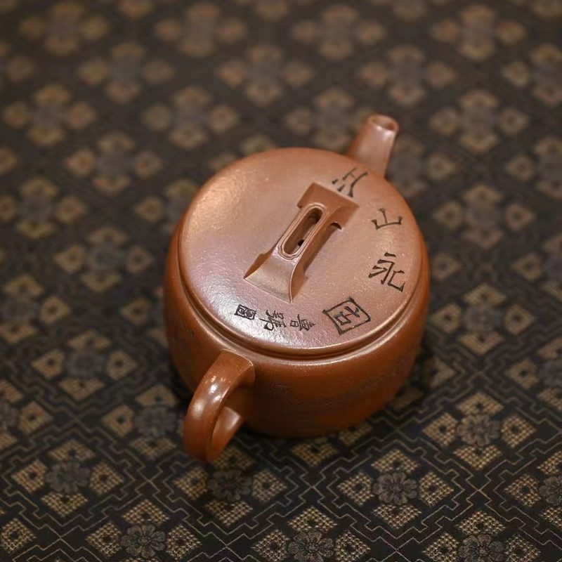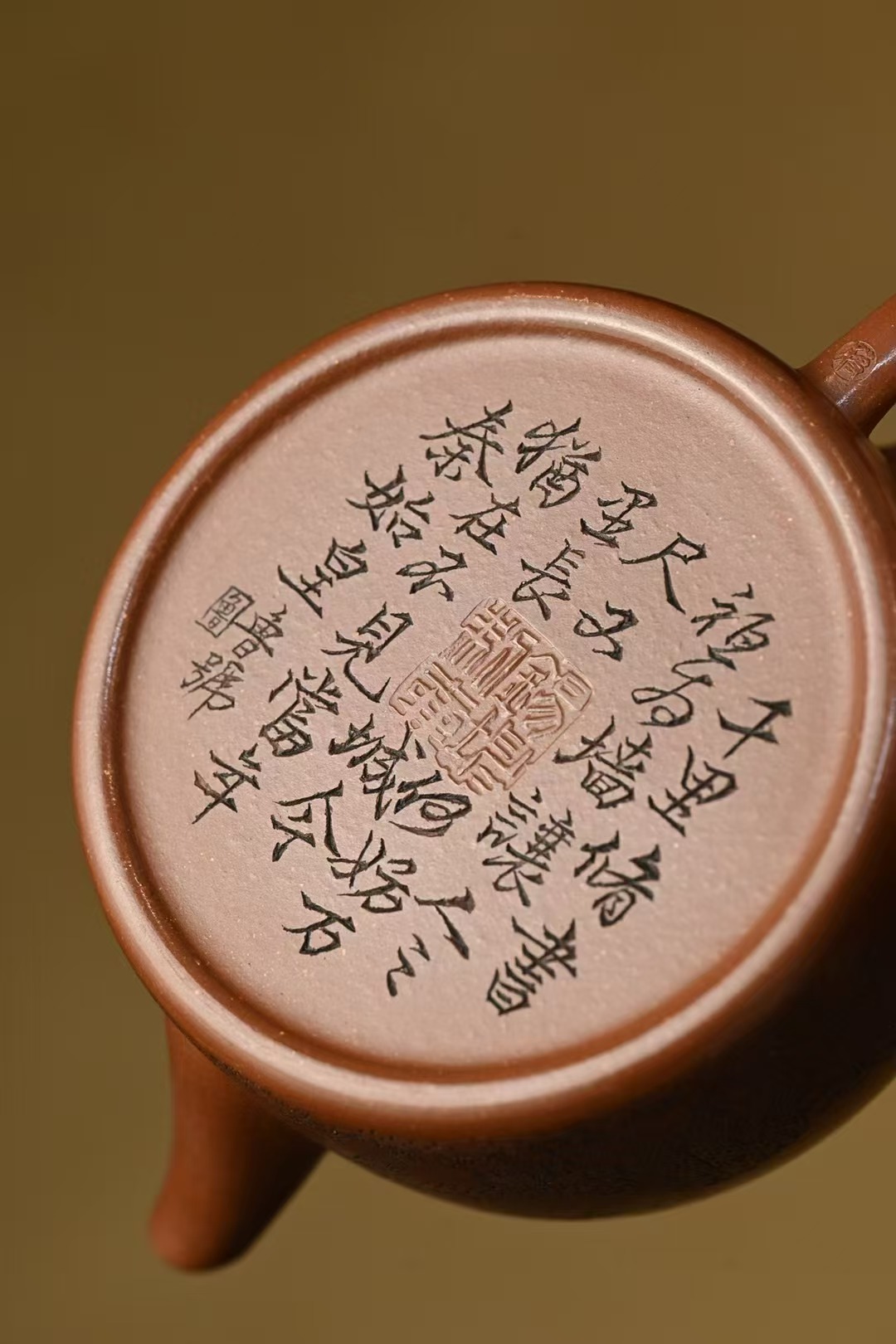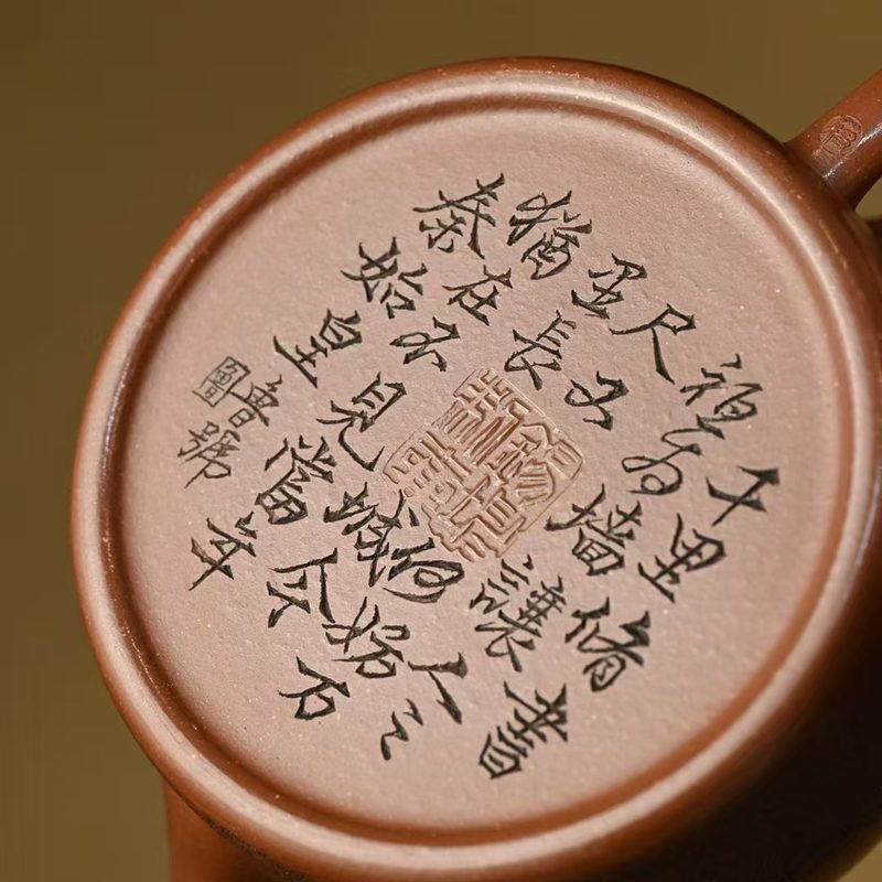 汉瓦 手工制作, 容量300cc ,原矿底槽清泥料, 高级工艺师 蒋锡坤 作品 以‮典经‬汉瓦为原型,辅‮精以‬妙的设计,少了一分笨拙,多了一分简练雅致,在紫砂壶上呈现顶级的小楷刻字艺术,把‬丰富的‮史历‬文化凝聚在‮壶小‬之上,高级大气。