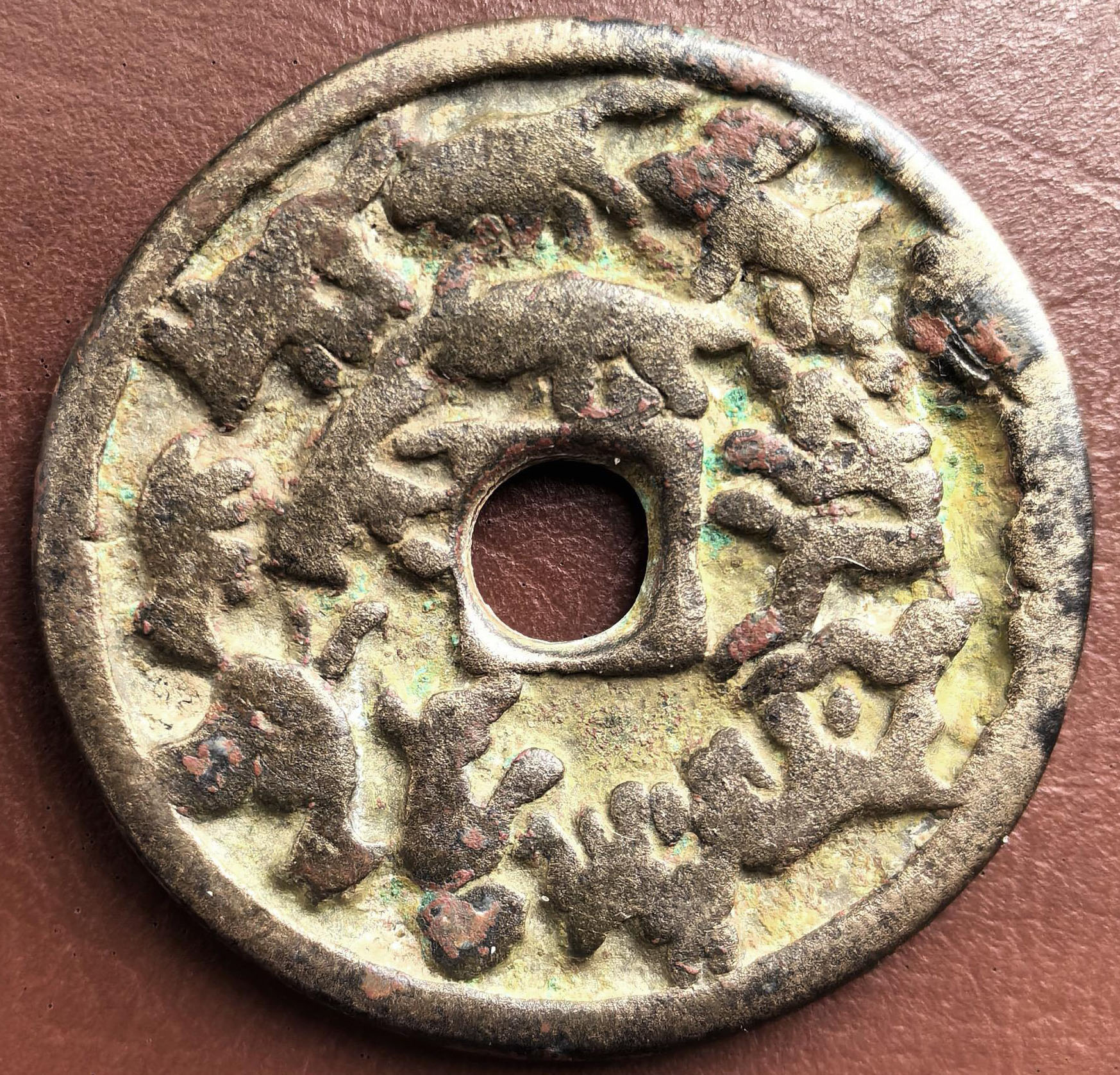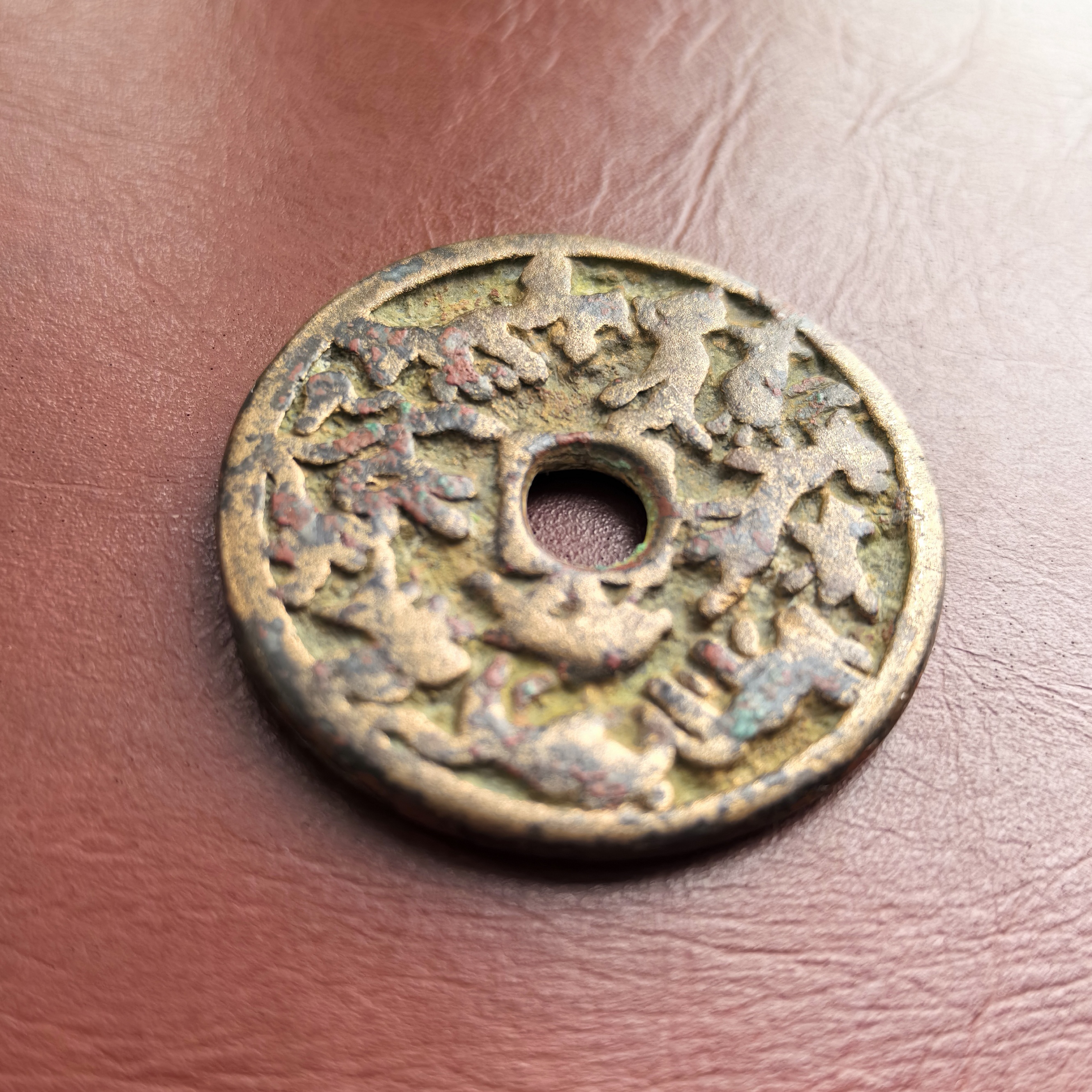 备注:此枚花钱由业内知名藏家收藏,已入盒,(盒子已开),包浆自然浑厚,风格特征明显、品相如图所示,承辽之气,推荐收藏;