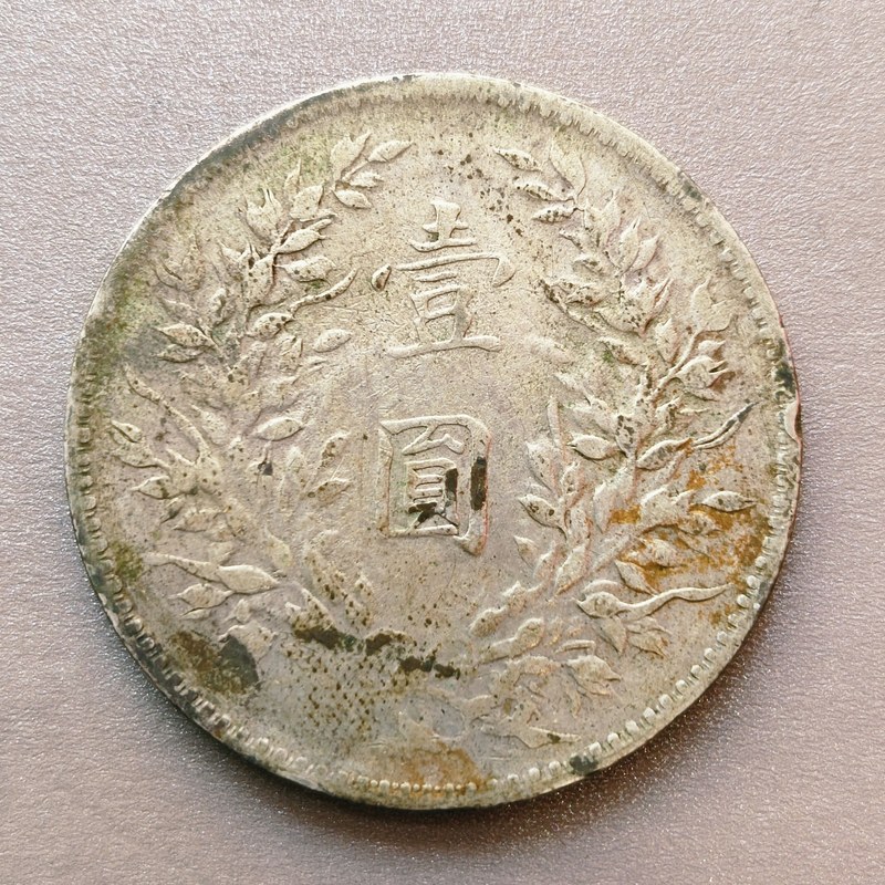 图录号018 民国十年袁世凯壹圆银币(八年背) 质地:银 质量:27.0g 尺寸:38.9x38.9x2.6mm 民国十年袁世凯银币,银色纯正,压力足,包浆传世温润,版别是八年袁世凯背面,空心叶,下五珠,存世数量少见,比普通十年少很多,难得品种,值得收藏。