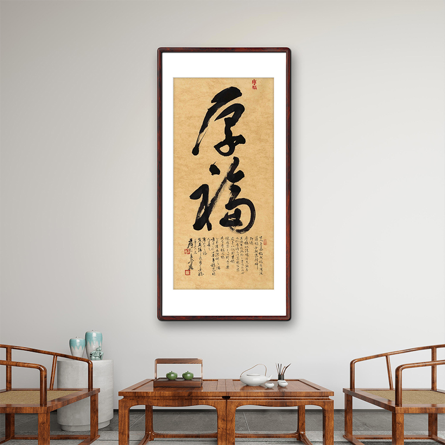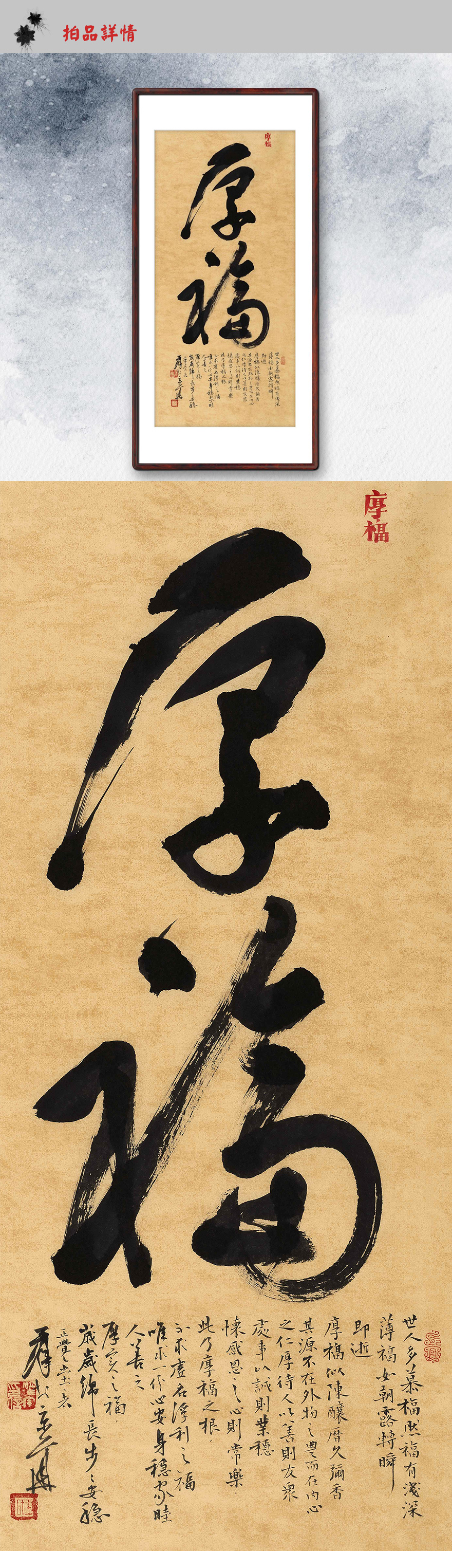 纸本水墨作品 《厚福》尺寸约:100x48cm (未装裱) ,作者是国家一级美术是王泽宇,著名艺术家石齐弟子。其绘画风格清新自然,笔法娴熟,运笔游刃有余,作品题材寓意好,绘画水准高,深受书画收藏爱好者欢迎,附装裱效果图供藏者参考;作品适合置于家中客厅、茶室、书房,或办公室,别有一番品味和格调,增添空间的文化气息与吉祥生机之气韵,适合收藏、送礼、挂置;
