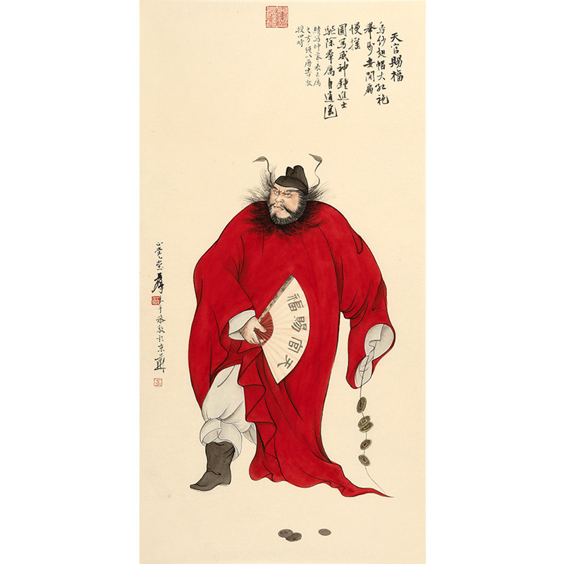 纸本水墨作品 《天官赐福》尺寸约:100x50cm (未装裱) ,作者是国家一级美术是王泽宇,著名艺术家石齐弟子。其绘画风格清新自然,笔法娴熟,运笔游刃有余,作品题材寓意好,绘画水准高,深受书画收藏爱好者欢迎,附装裱效果图供藏者参考;作品适合置于家中客厅、茶室、书房,或办公室,别有一番品味和格调,增添空间的文化气息与吉祥生机之气韵,适合收藏、送礼、挂置;