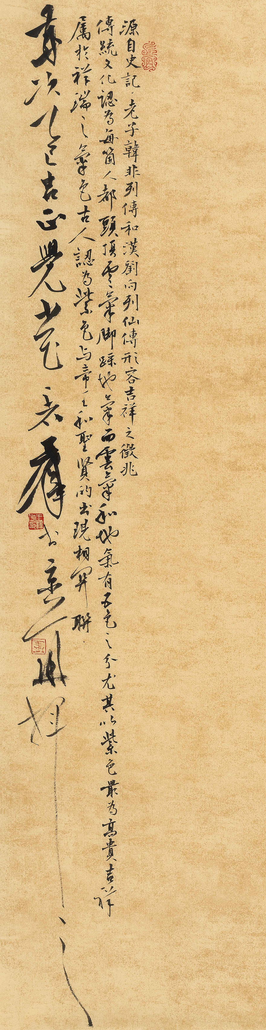 纸本水墨作品 《紫气东来》尺寸约:100x48cm(未装裱) ,作者是国家一级美术是王泽宇,著名艺术家石齐弟子。其绘画风格清新自然,笔法娴熟,运笔游刃有余,作品题材寓意好,绘画水准高,深受书画收藏爱好者欢迎,附装裱效果图供藏者参考;作品适合置于家中客厅、茶室、书房,或办公室,别有一番品味和格调,增添空间的文化气息与吉祥生机之气韵,适合收藏、送礼、挂置;