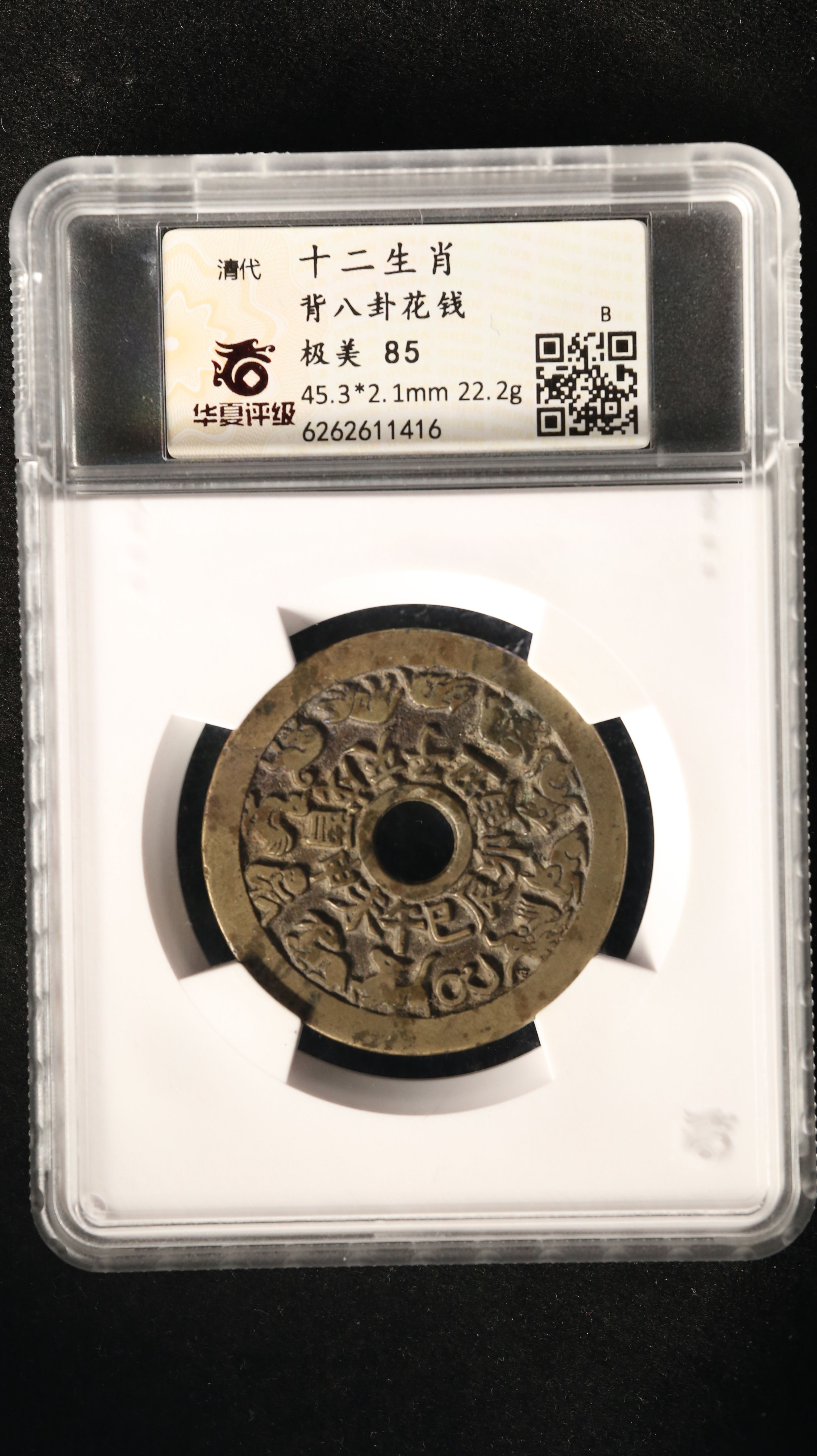 备注:此枚花钱由资深藏家收藏,已入盒,包浆自然老辣,风格特征明显、品相、评级如图所示,推荐收藏;