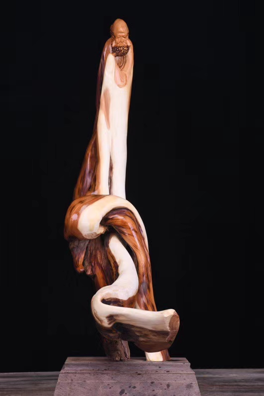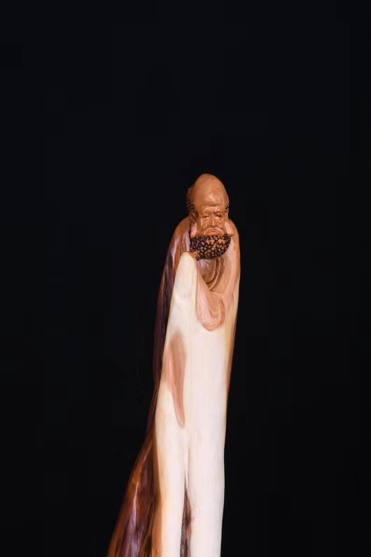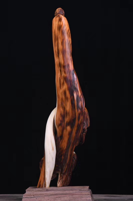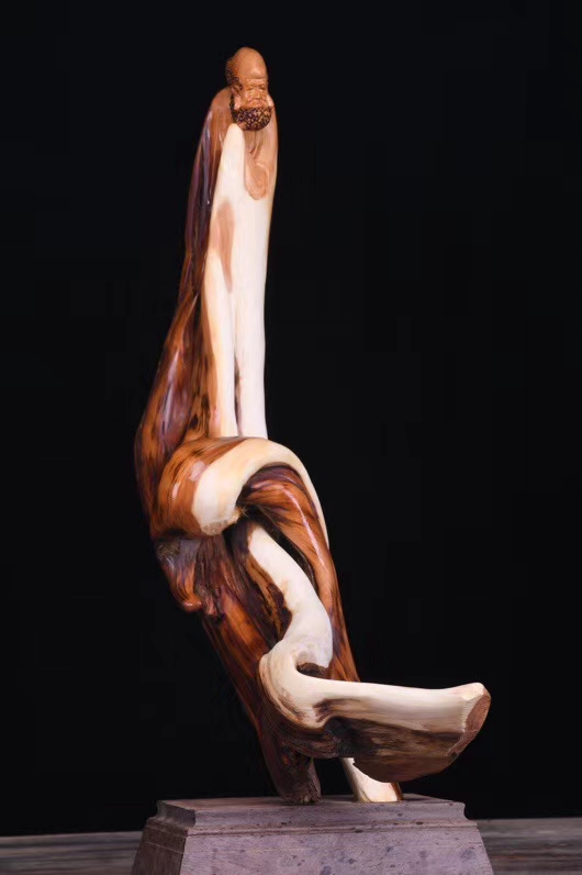 【达摩】太行崖柏陈化双色坨料;尺寸:高47长18宽29重5斤;千年孕一木,一木传干年,镂空设计,全手工雕刻,奶香浓味,不可多得,天然造型稍加雕刻而成,雕工精细,细节处可见,收藏佳品!