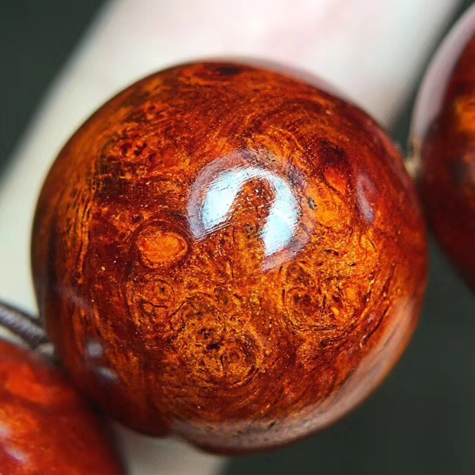 【君檀】印度小叶紫檀1.8瘤疤+葡萄缨子瘤疤+轻微夹层+不影响盘玩及美观+纹理清晰绚丽+料质细腻温润+*易包浆,直径1.8厘米。